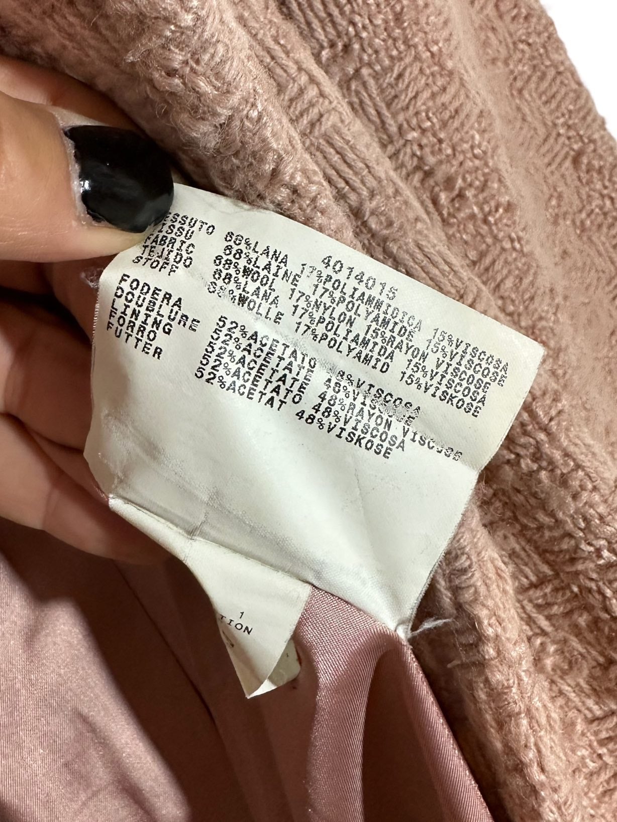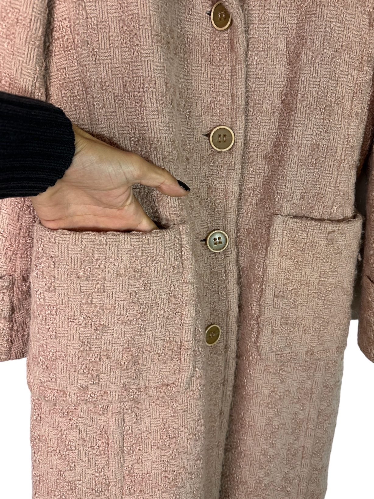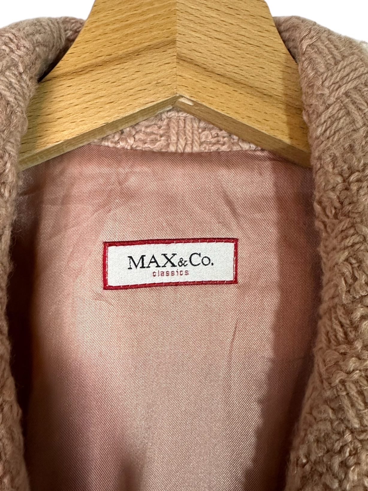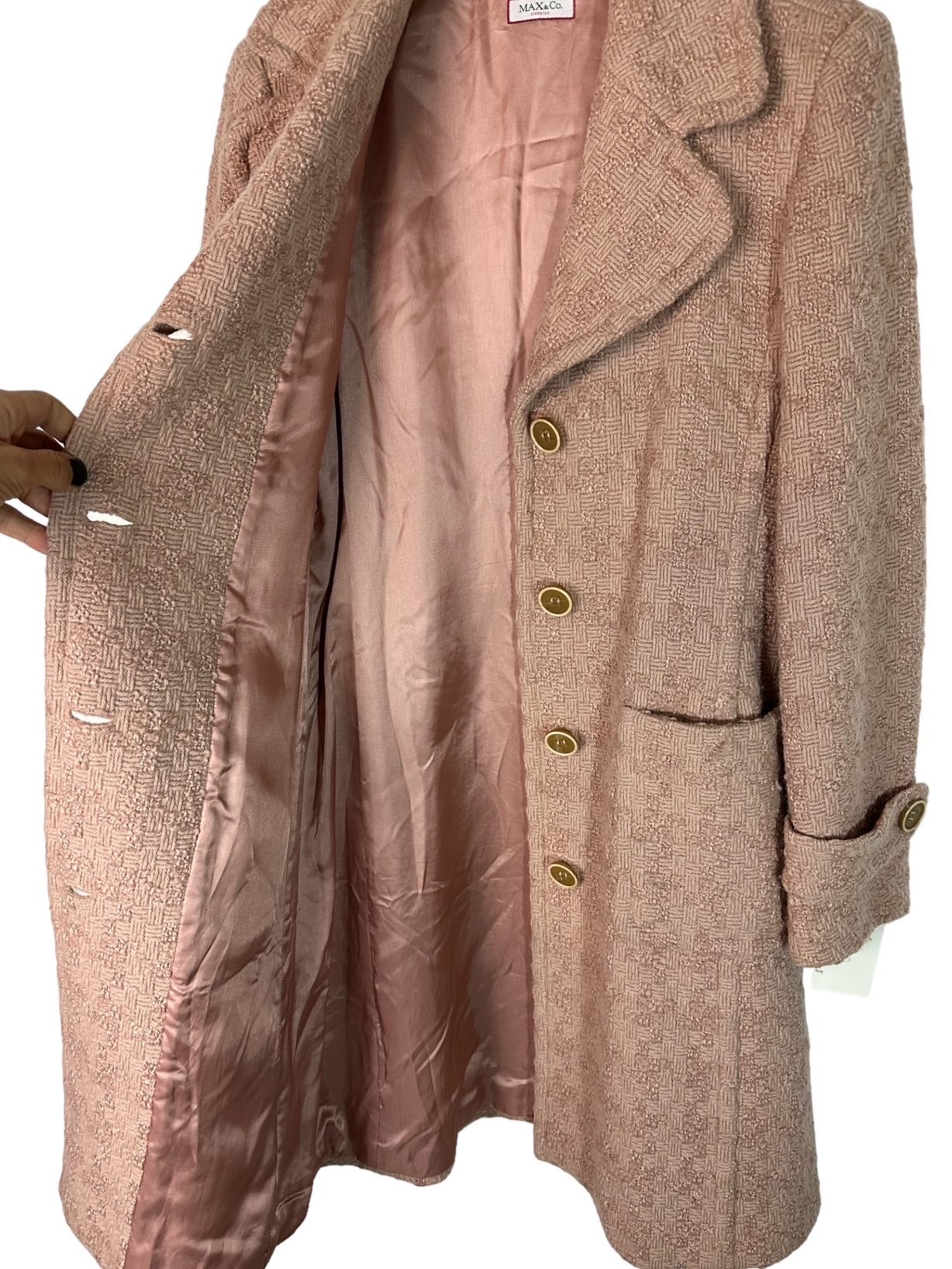 Max&Co cappotto vintage in lana lavorata color cipria a maniche lunghe e tasche laterali con chiusura a bottoni e cintura in vita, tasche laterali applicate. Tg. S