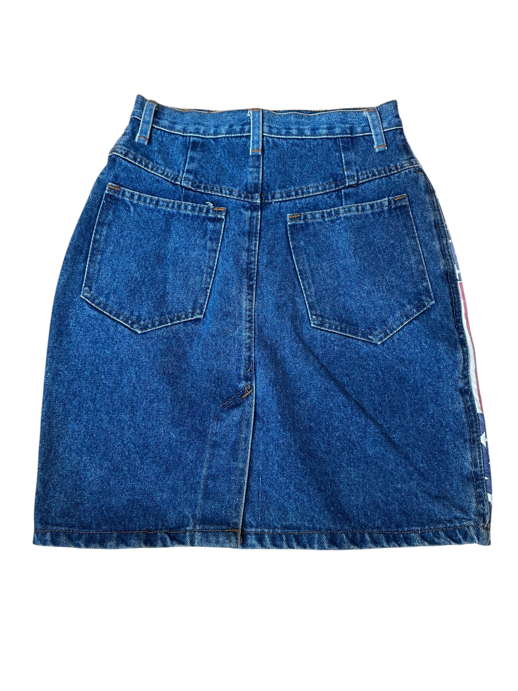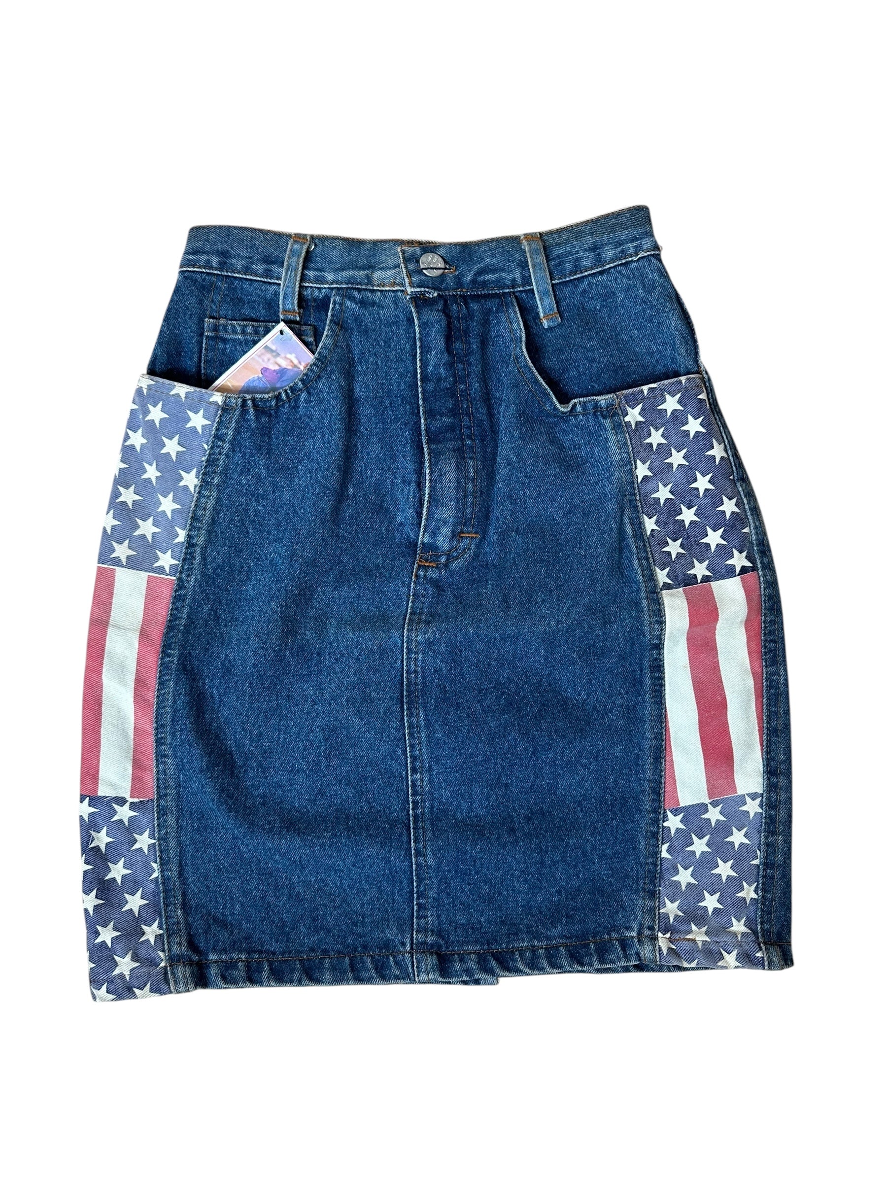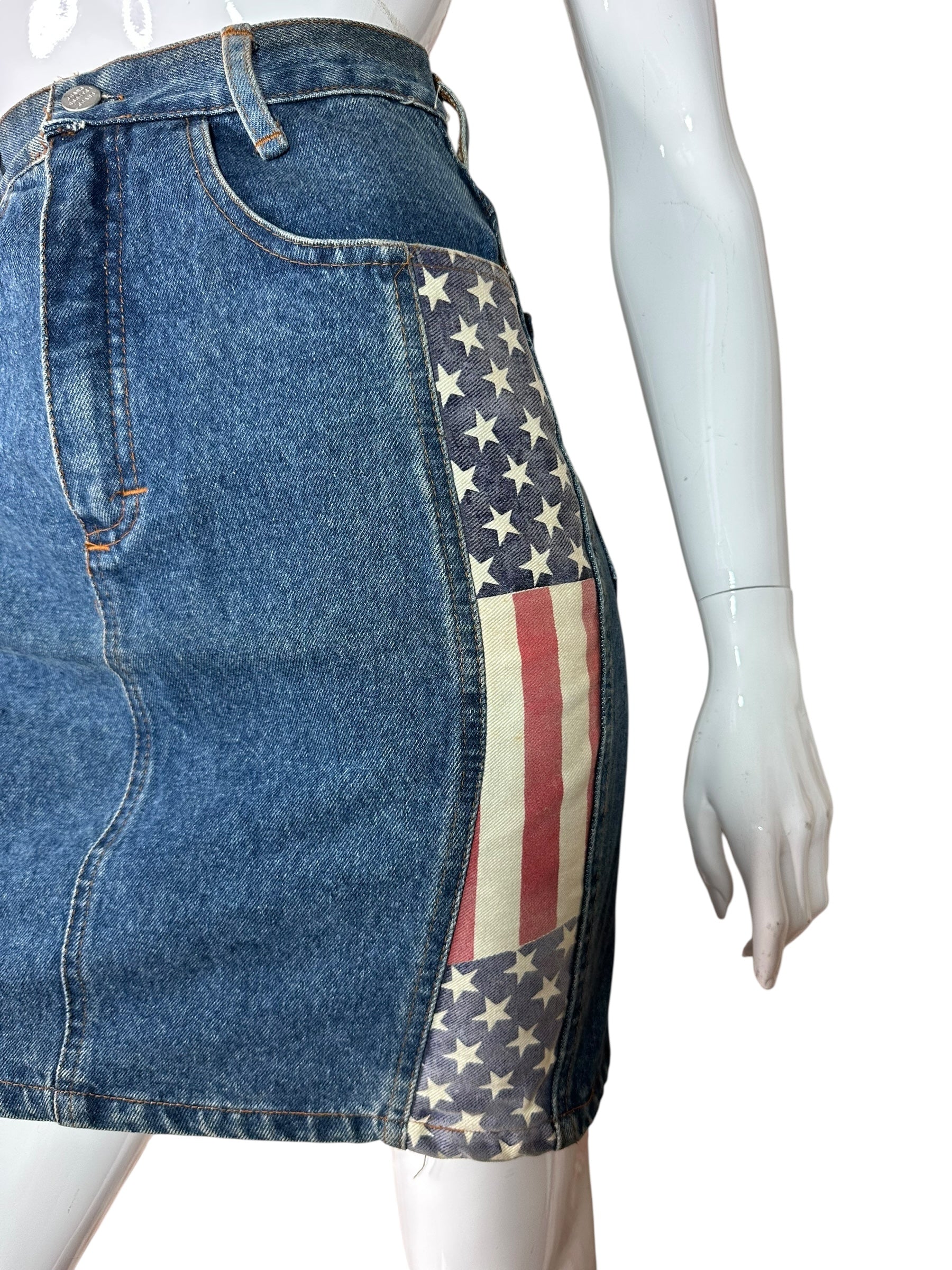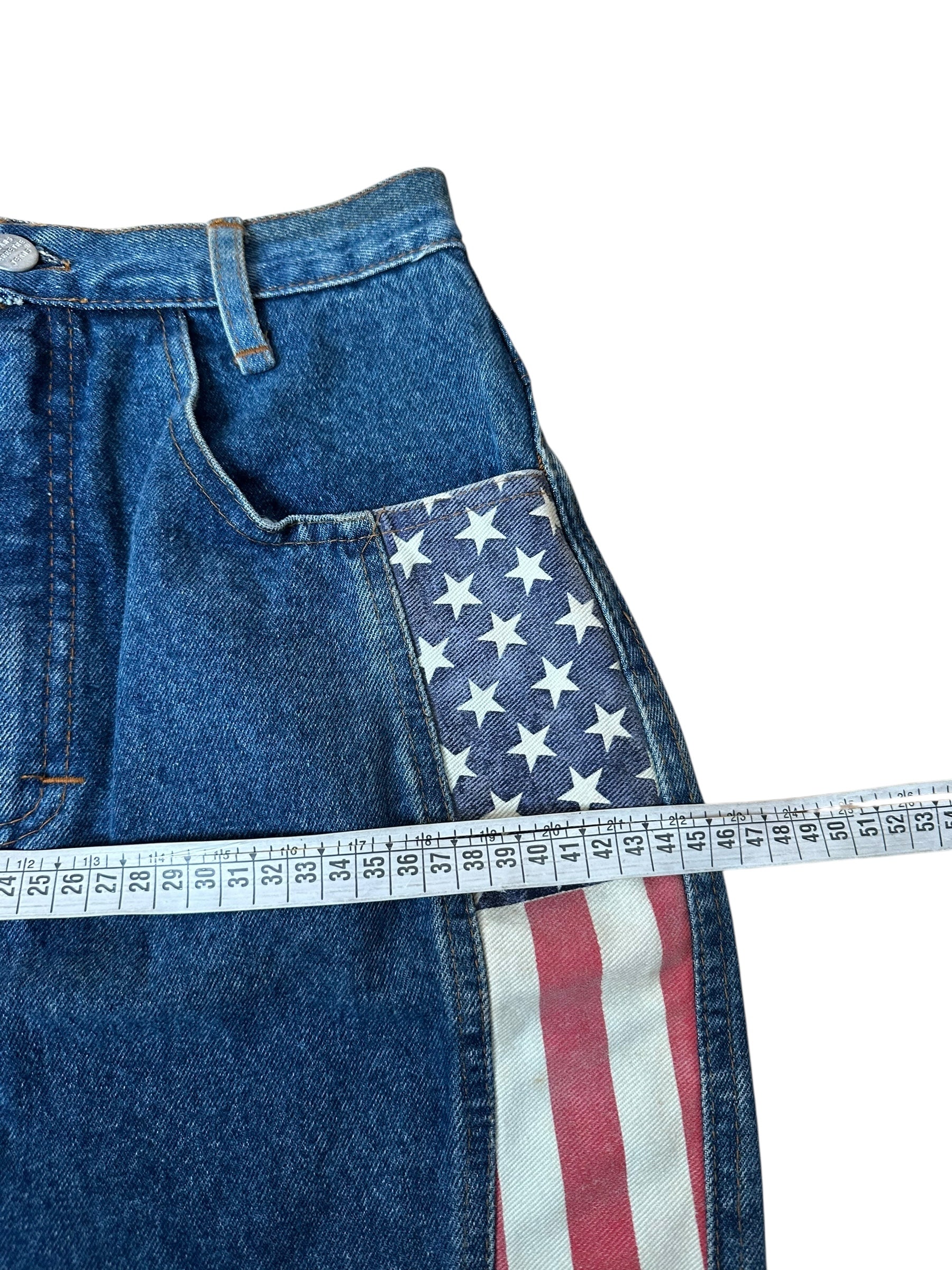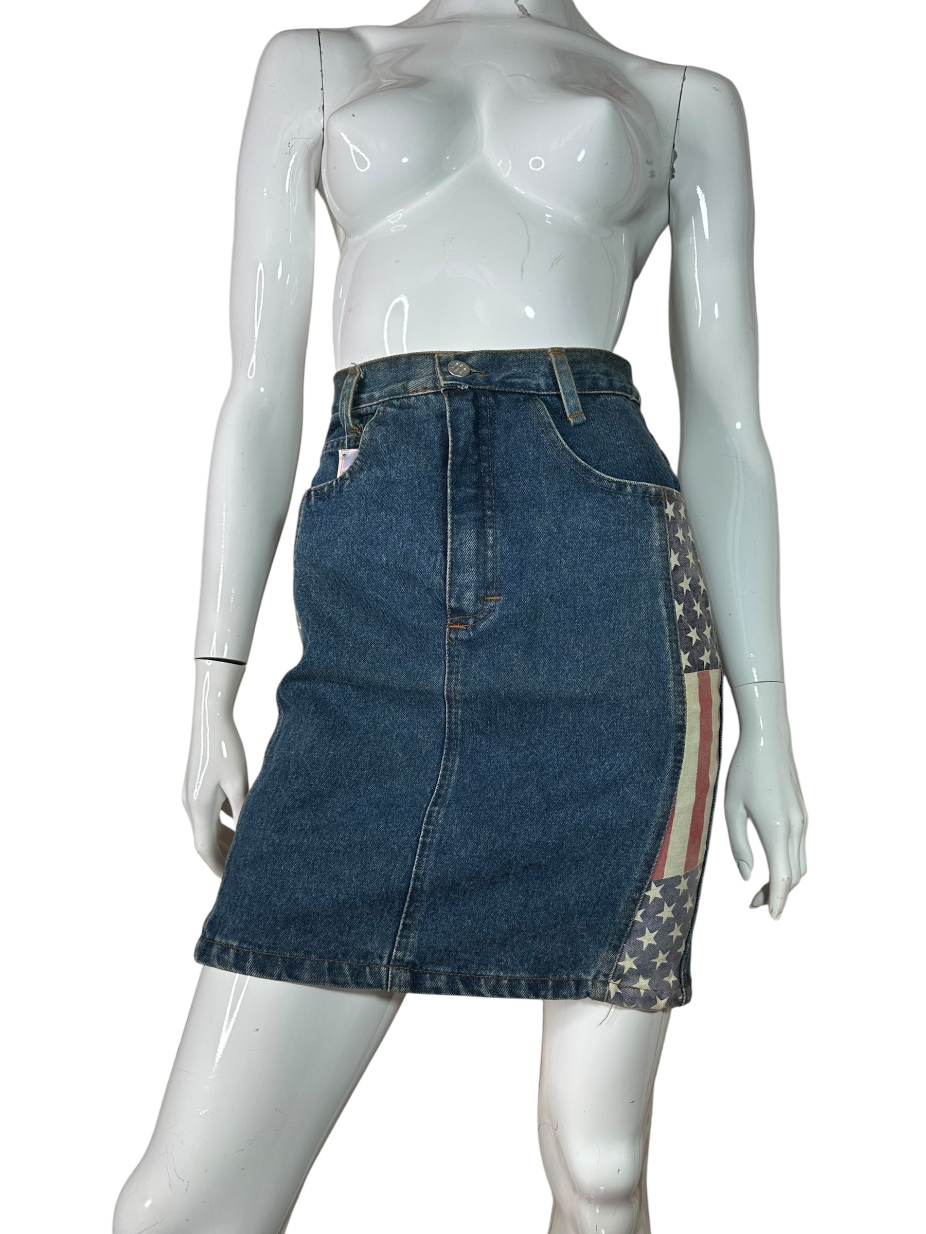 Gonna vintage in denim con inserti bandiera americana – taglia 44 (IT) Veste una taglia 42