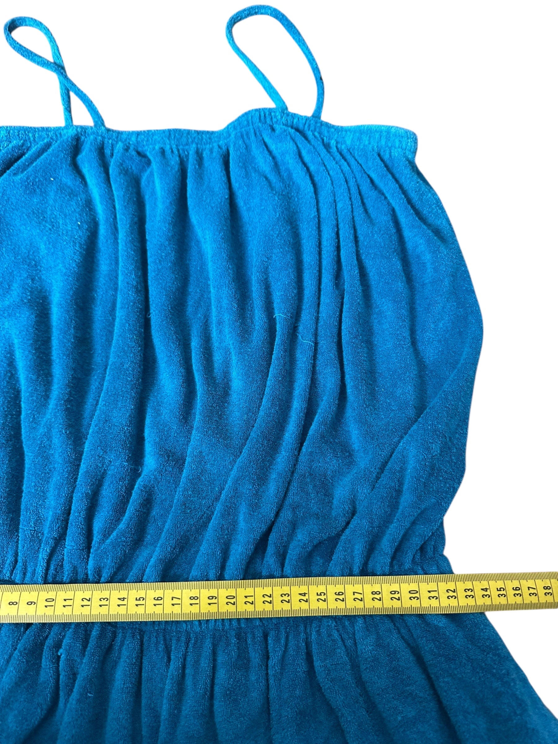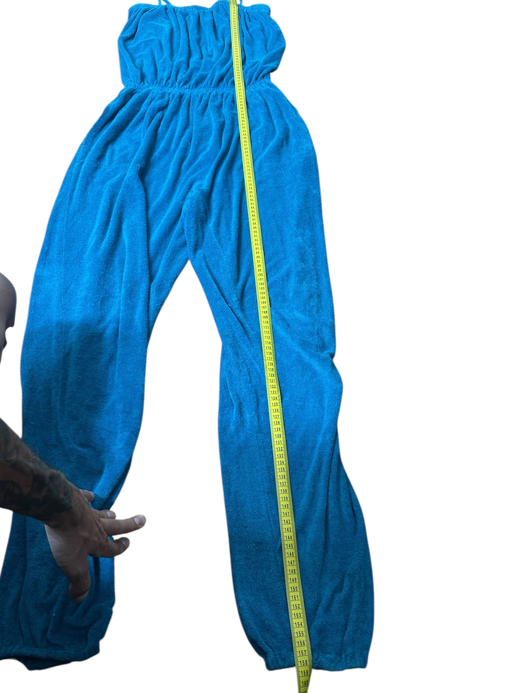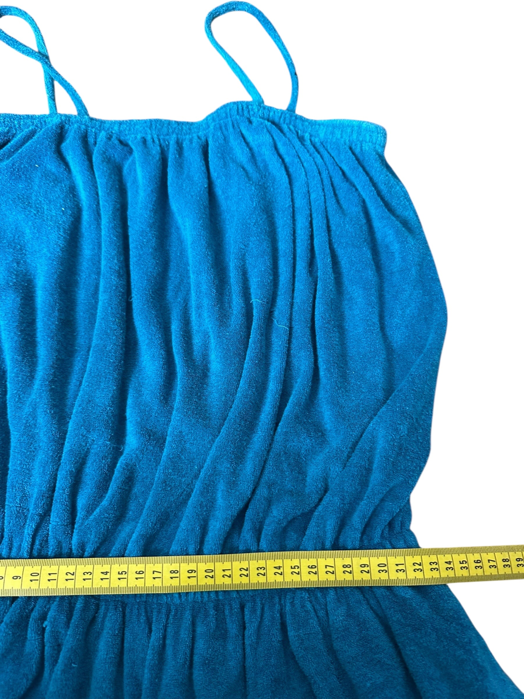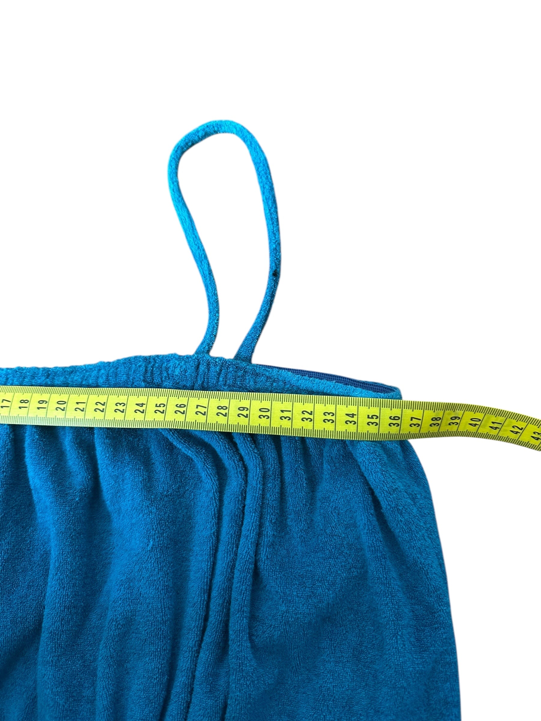 Tuta lunga vintage firmata Missoni, realizzata in morbido cotone effetto spugna stretch, dal tipico stile rilassato e fluido. Il capo presenta una linea comoda con corpino blusante, spalline sottili, elastico in vita e pantalone morbido con fondo leggermente arricciato. Il colore, un intenso verde-petrolio, dona profondità e carattere a un capo perfetto per l’estate o il tempo libero.