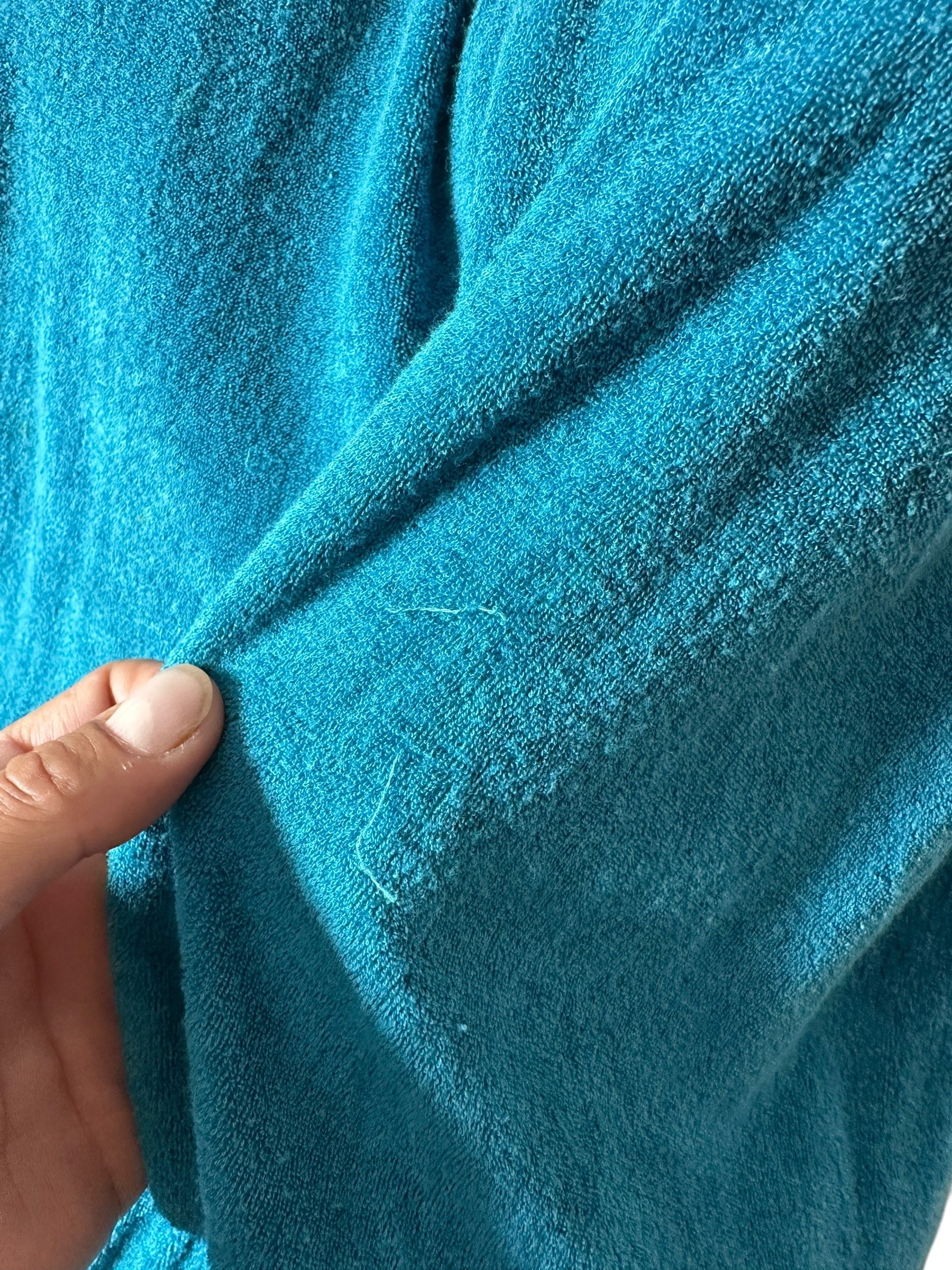 Condizioni: Buone condizioni vintage. Sono presenti due piccoli fili tirati sul tessuto, visibili in foto, che non compromettono l’integrità o la portabilità del capo.