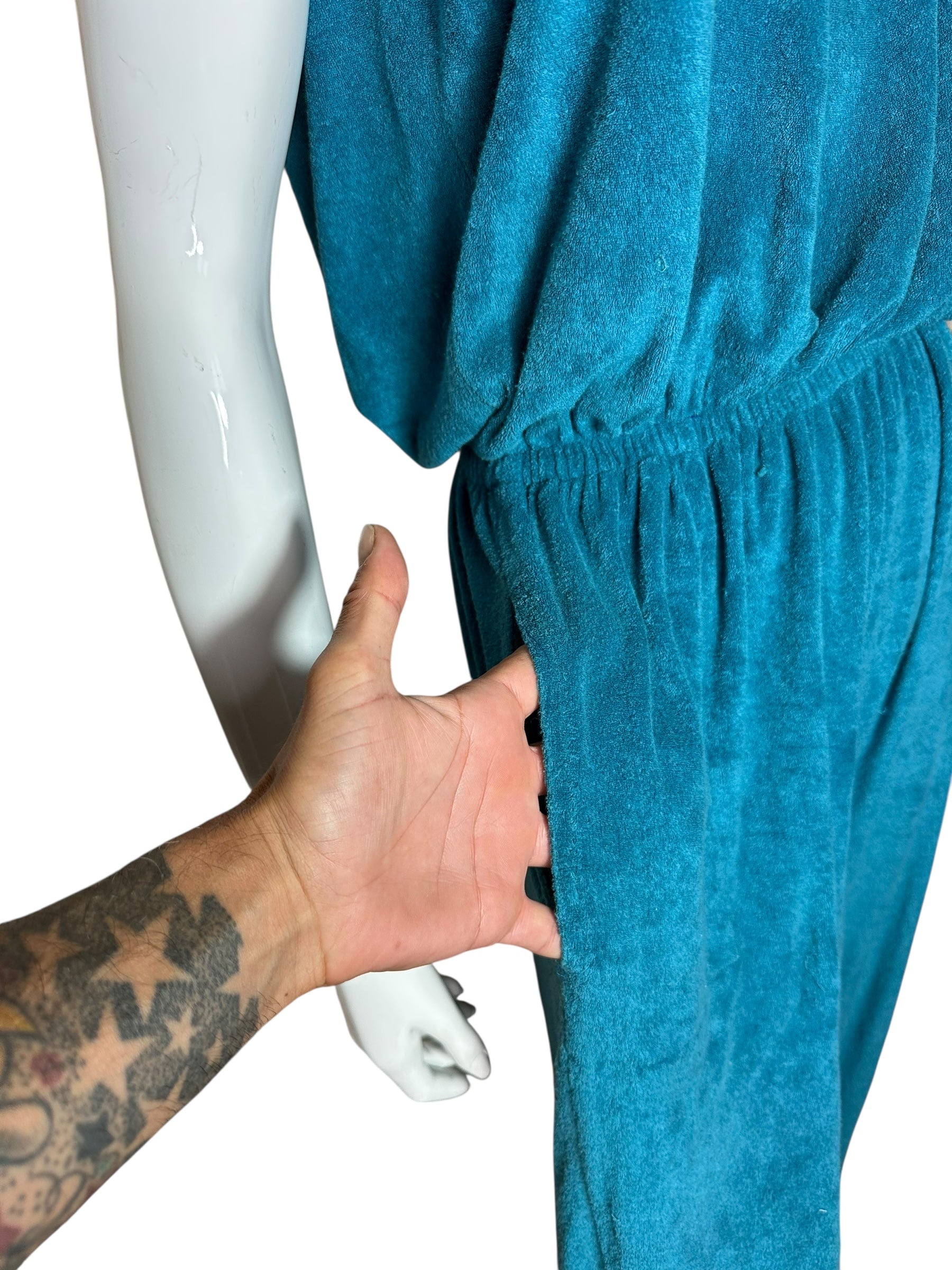 Tuta lunga vintage Missoni in spugna stretch verde-petrolio – Taglia M