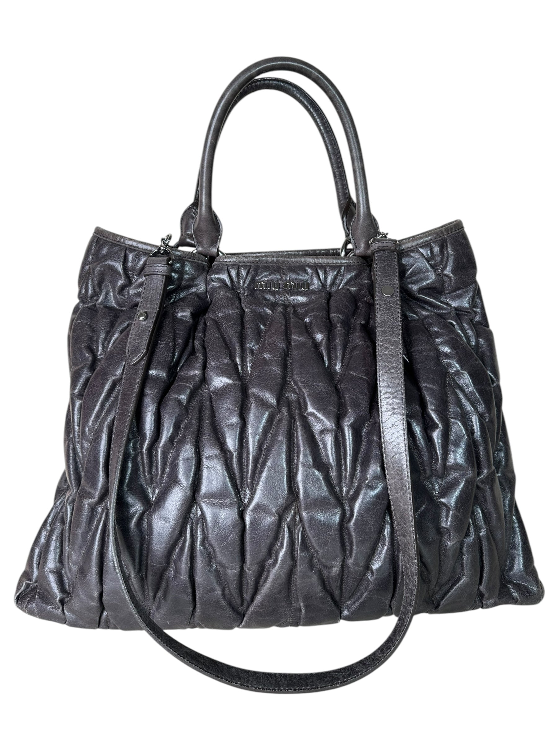 Borsa Miu Miu Vintage in Pelle Matelassé grigio fumo