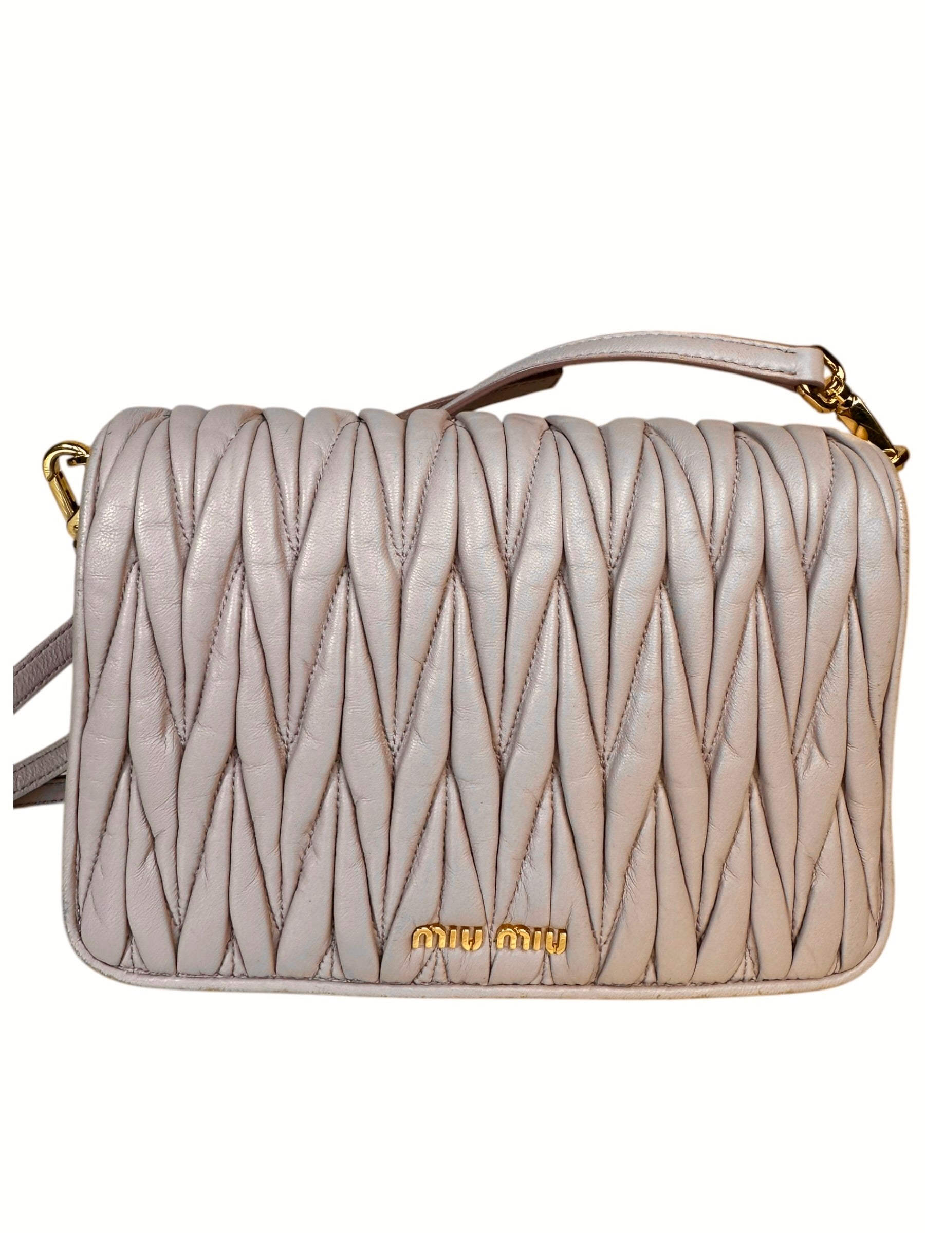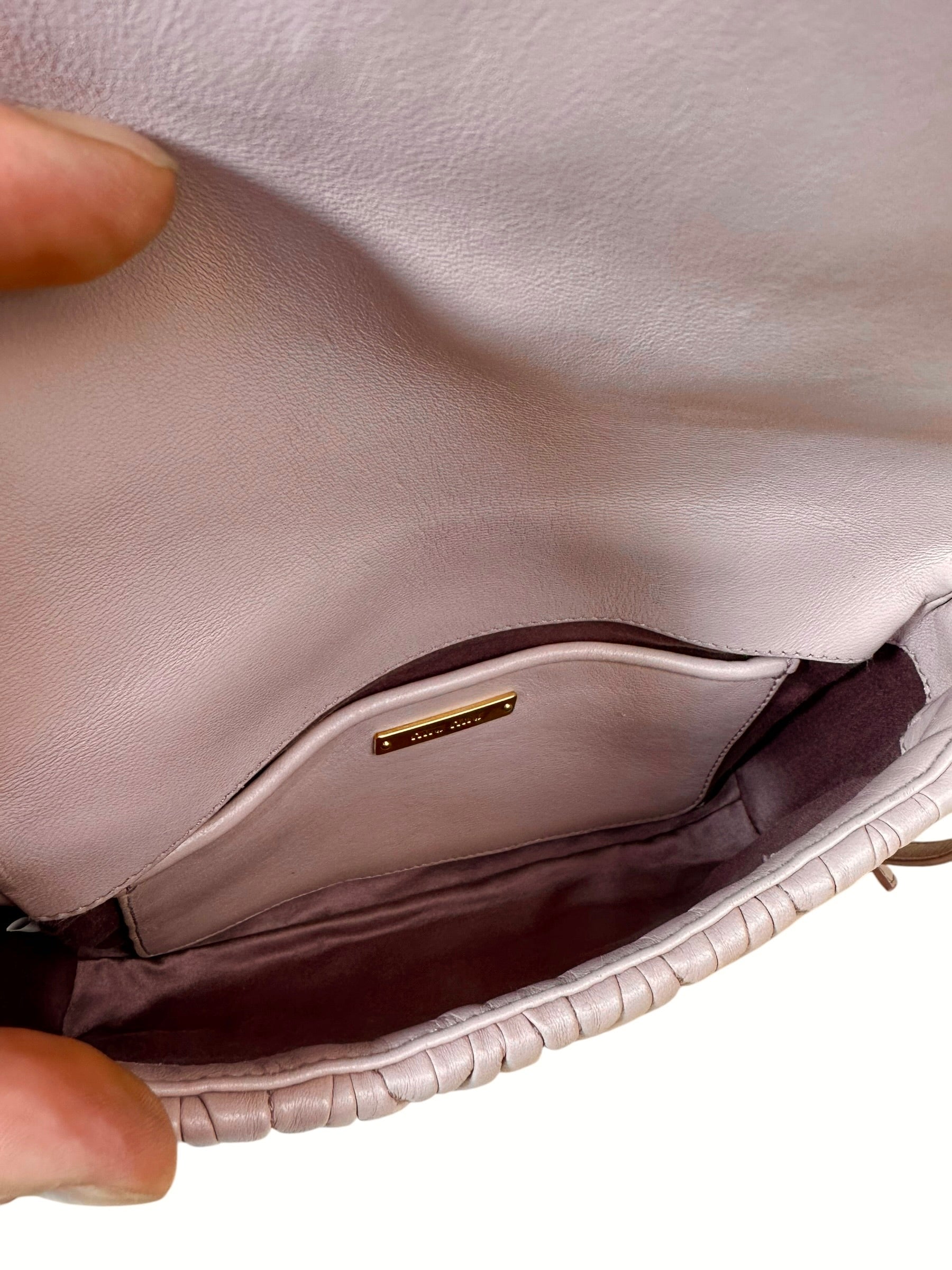 • Materiale: Pelle matelassé (morbida e trapuntata), tipica delle collezioni Miu Miu, che dona un aspetto sofisticato e raffinato.