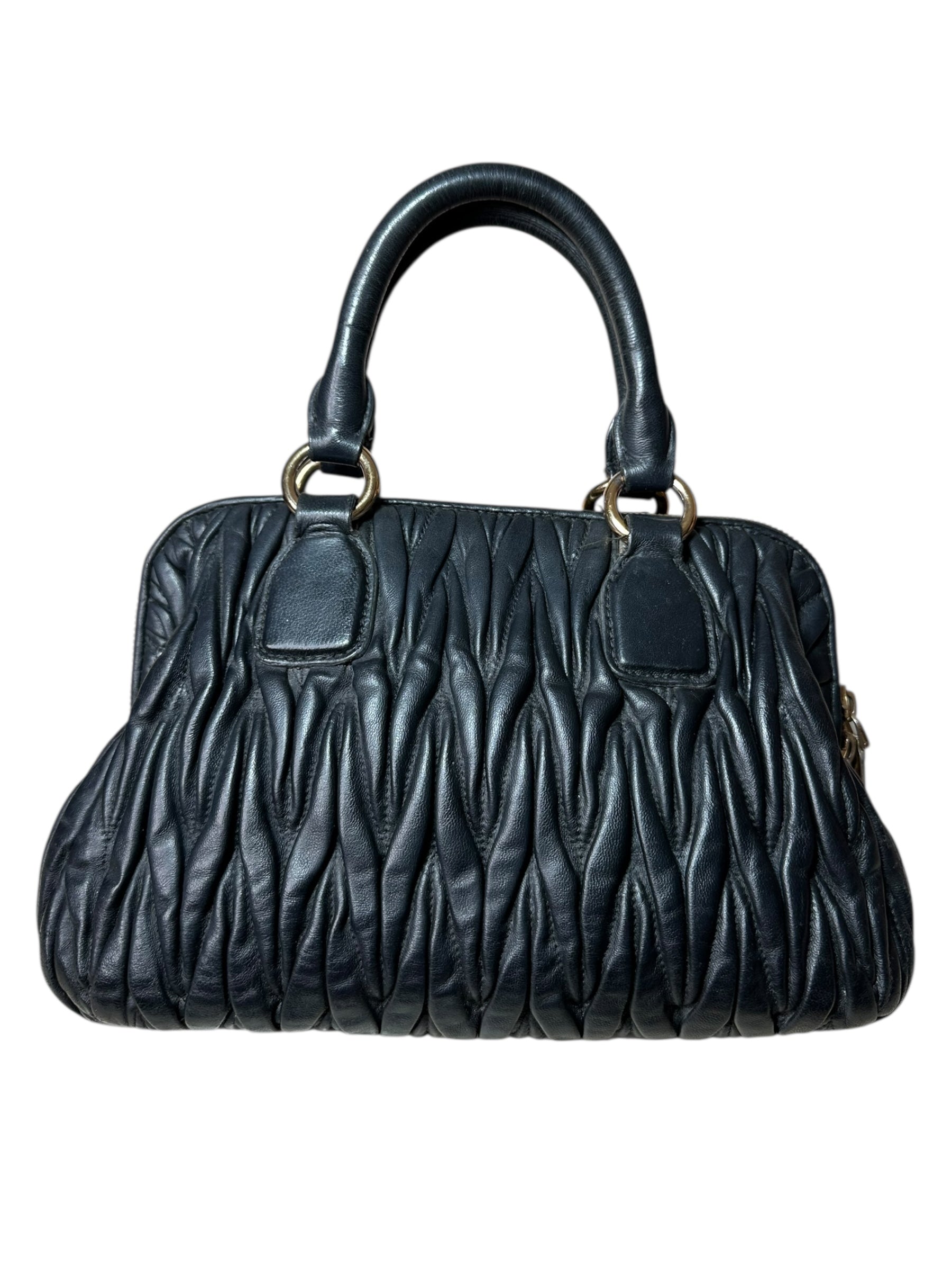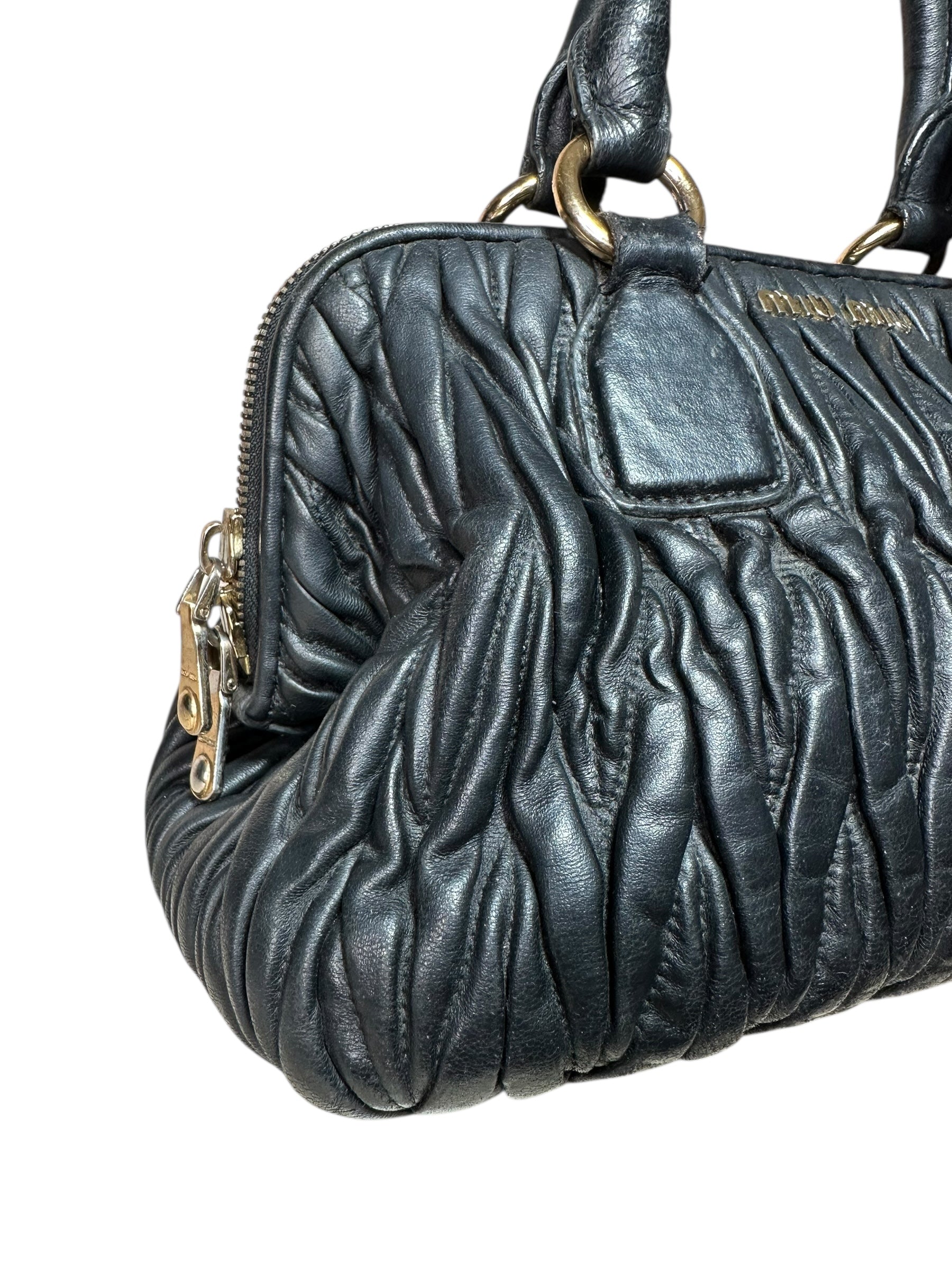 Borsa a mano vintage Miu Miu in pelle nera matelassé