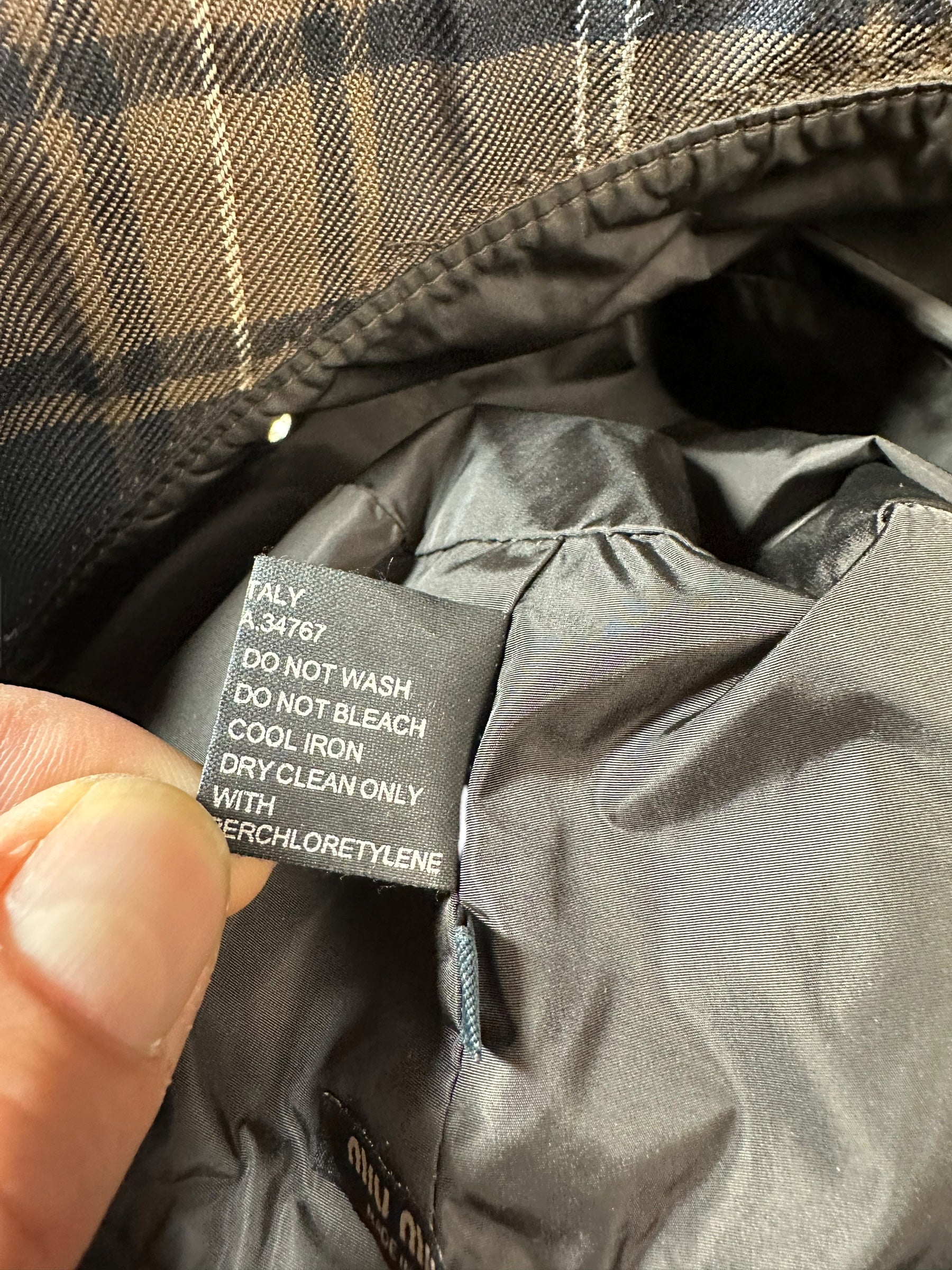 Questo cappello bucket vintage firmato Miu Miu è un accessorio dallo stile ricercato, che unisce un’estetica retrò a dettagli sofisticati. Realizzato in 100% lana, presenta un motivo check tartan nelle tonalità del blu, marrone e beige, perfetto per aggiungere un tocco di carattere a qualsiasi look. La fodera interna in nylon assicura una vestibilità confortevole e una protezione ottimale dal freddo.