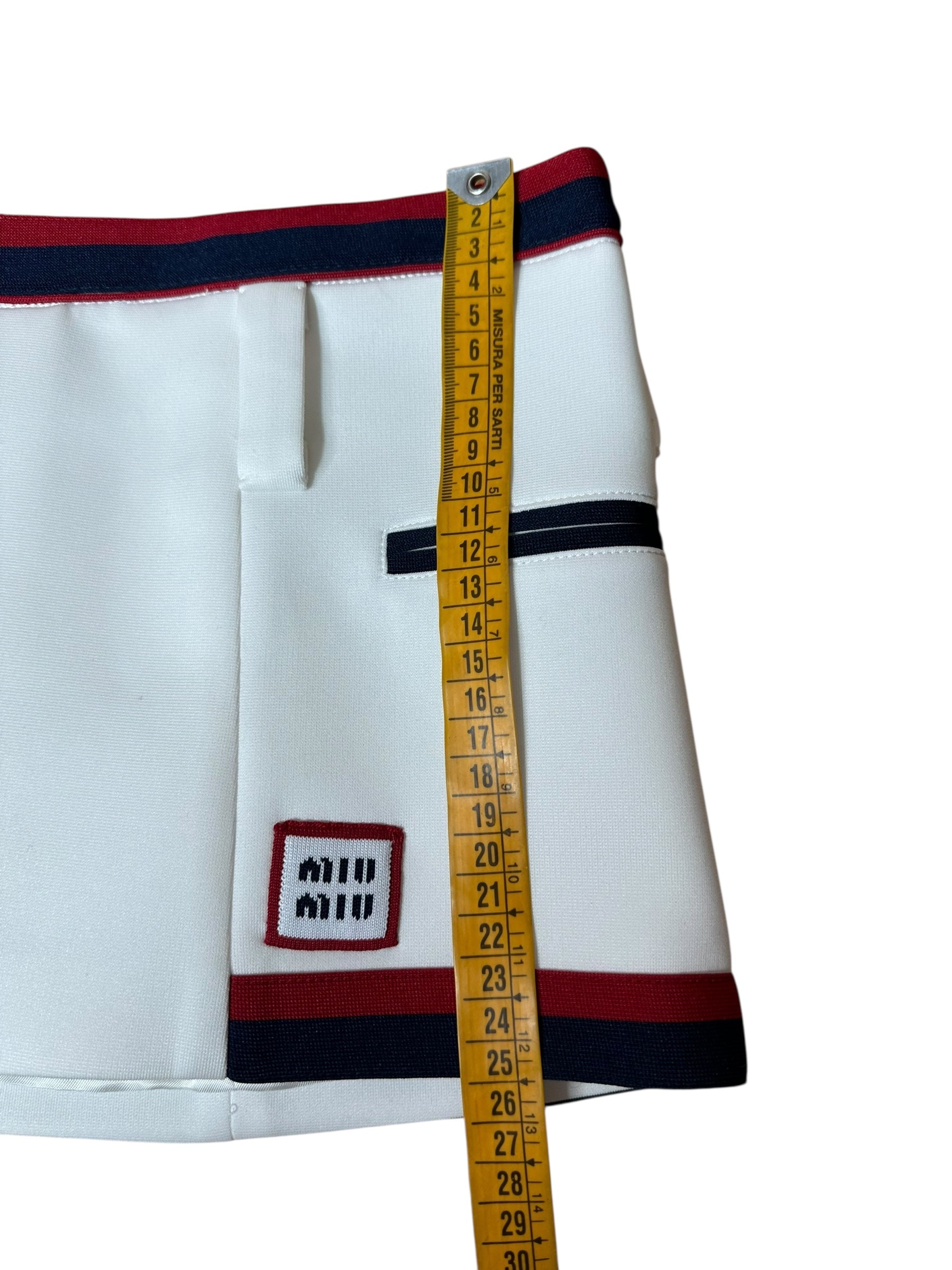 Minigonna Miu Miu in stile tennis con profili a contrasto