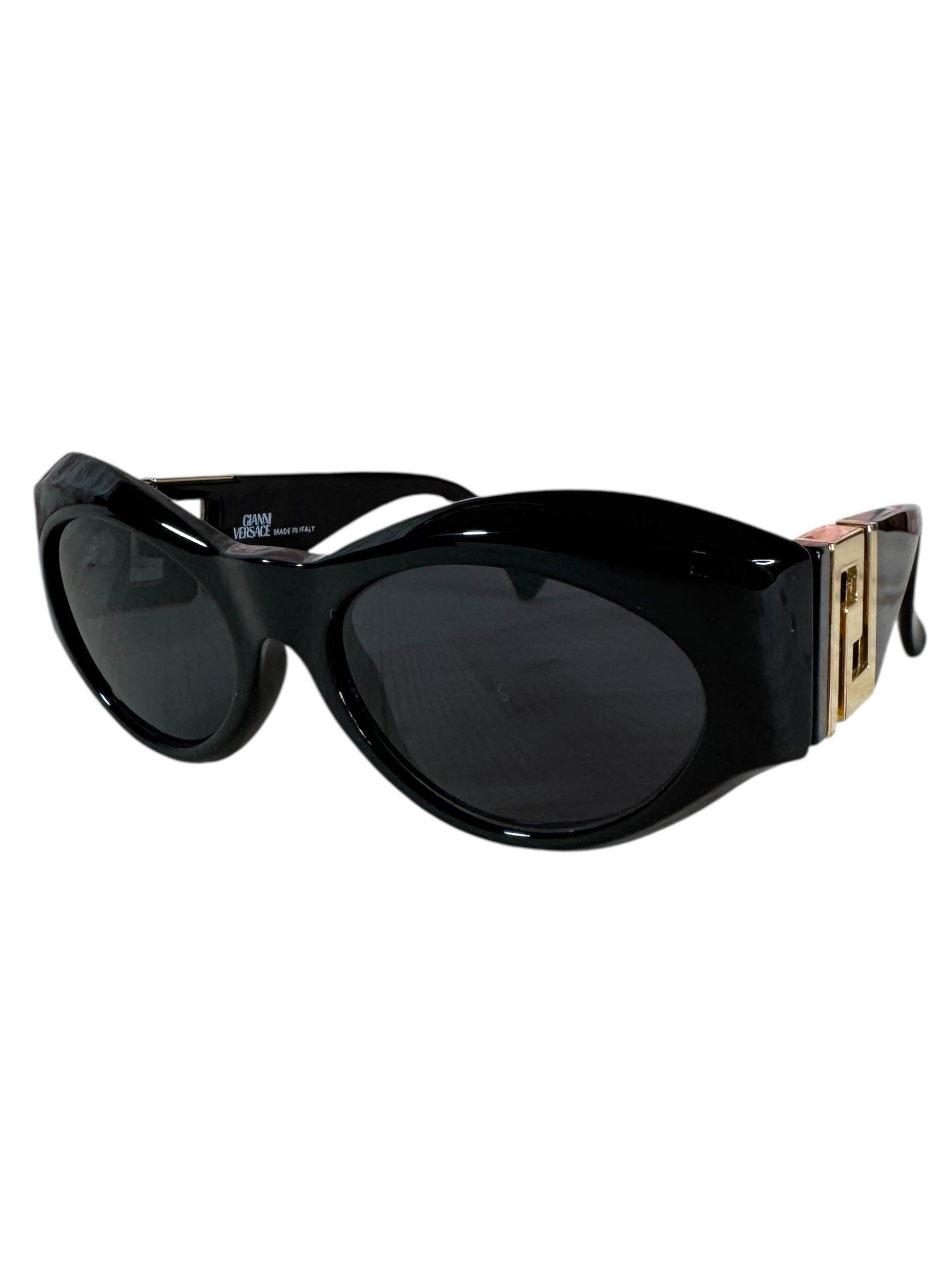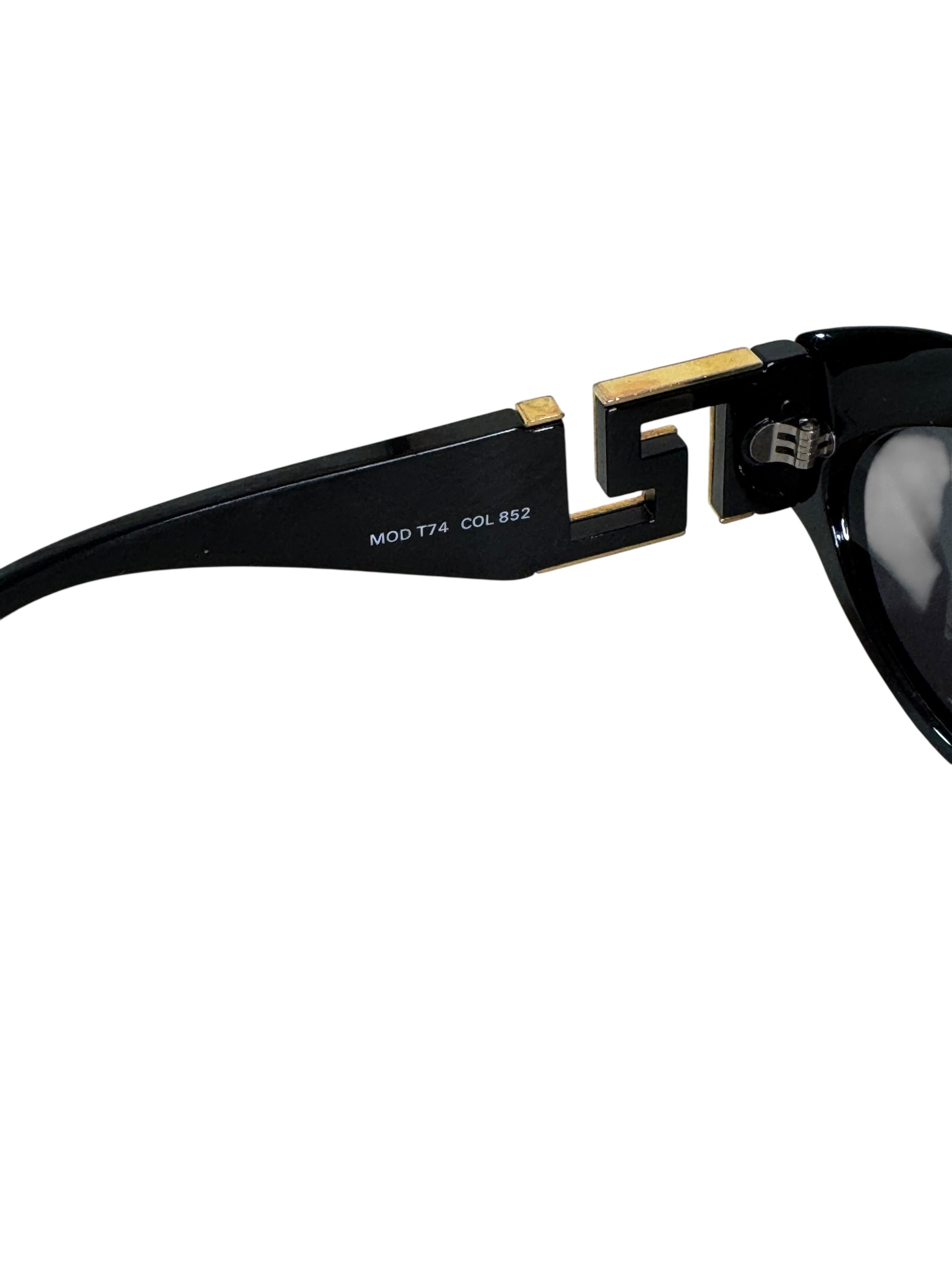 Occhiali da sole vintage Gianni Versace anni ’90 nero con logo Greca dorato