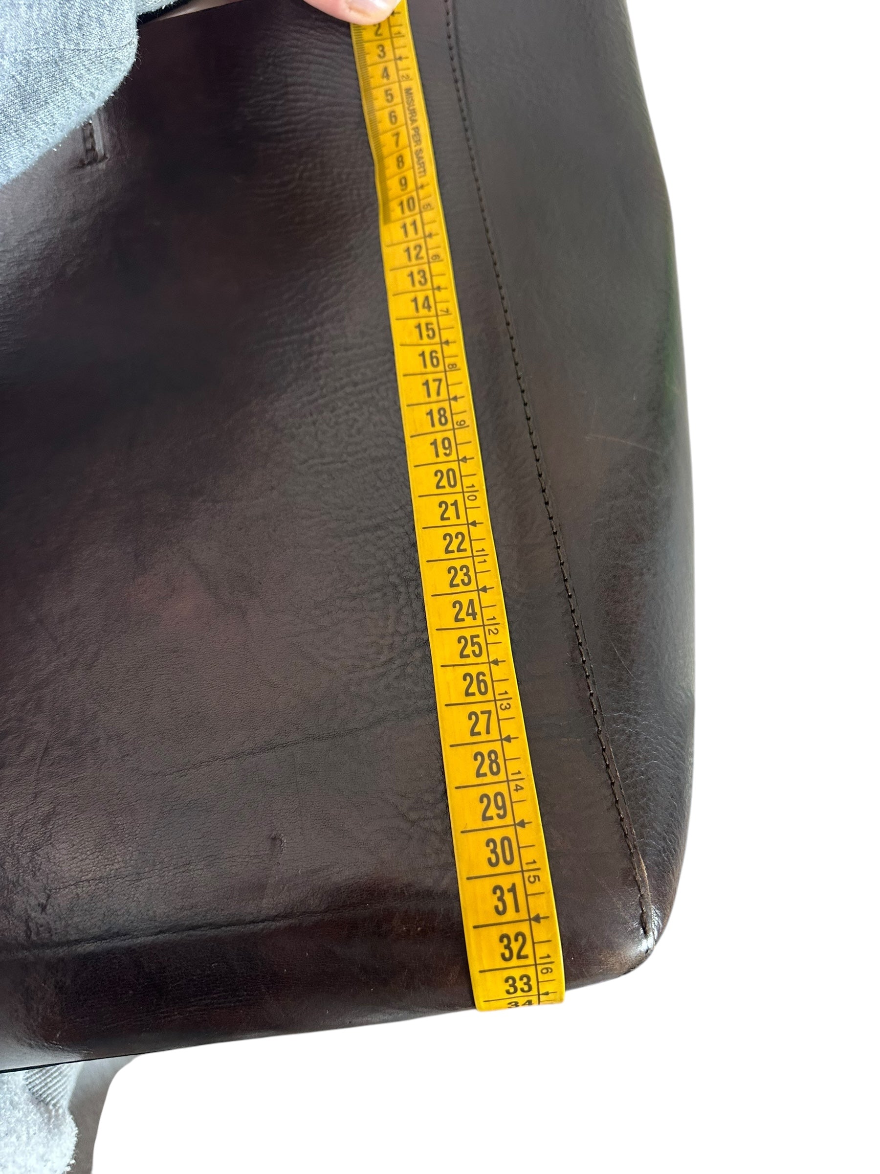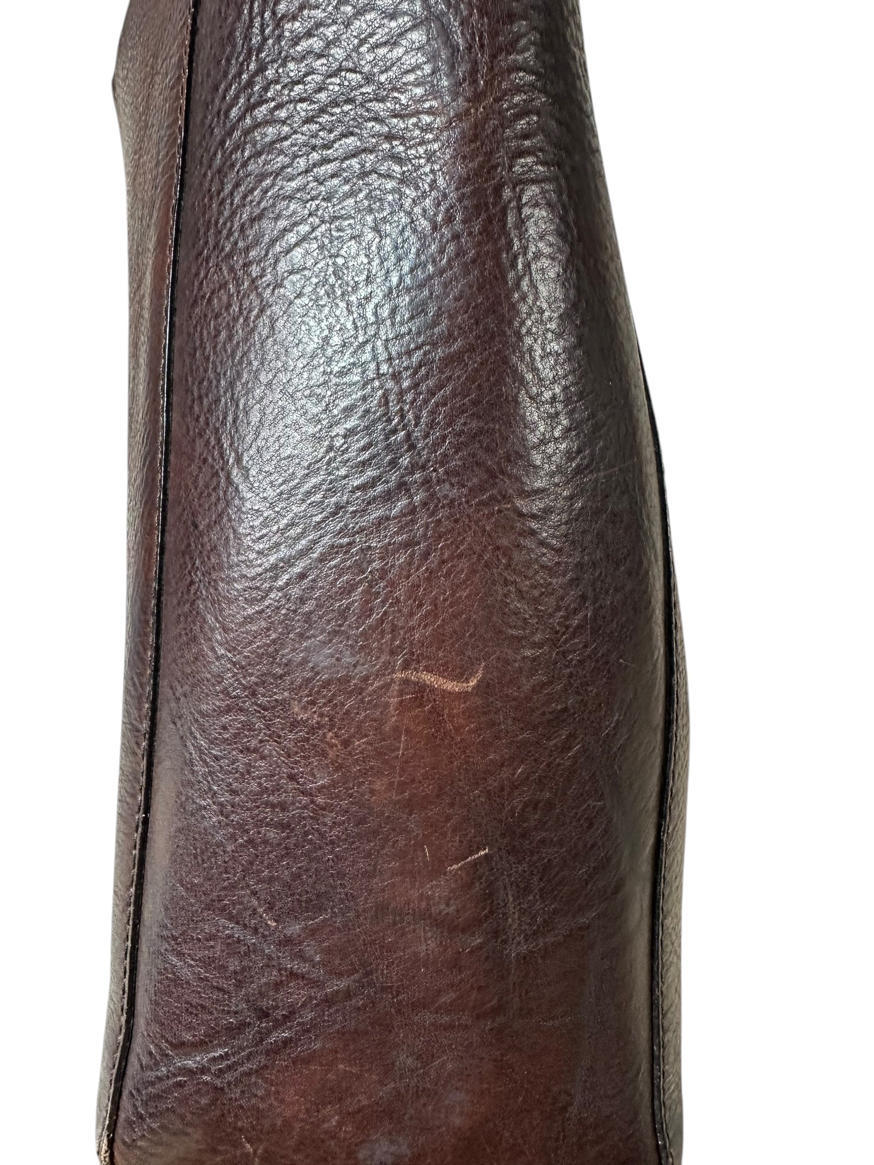 La borsa si presenta in buone condizioni generali. Sono visibili lievissimi graffi superficiali in alcuni punti, come mostrato nelle foto, e lievi segni di usura sugli angoli. Tuttavia, questi difetti sono poco evidenti e non compromettono la funzionalità o l’estetica complessiva. Rimane una borsa perfettamente indossabile, dallo stile artigianale e sobrio, ideale per l’uso quotidiano o professionale.