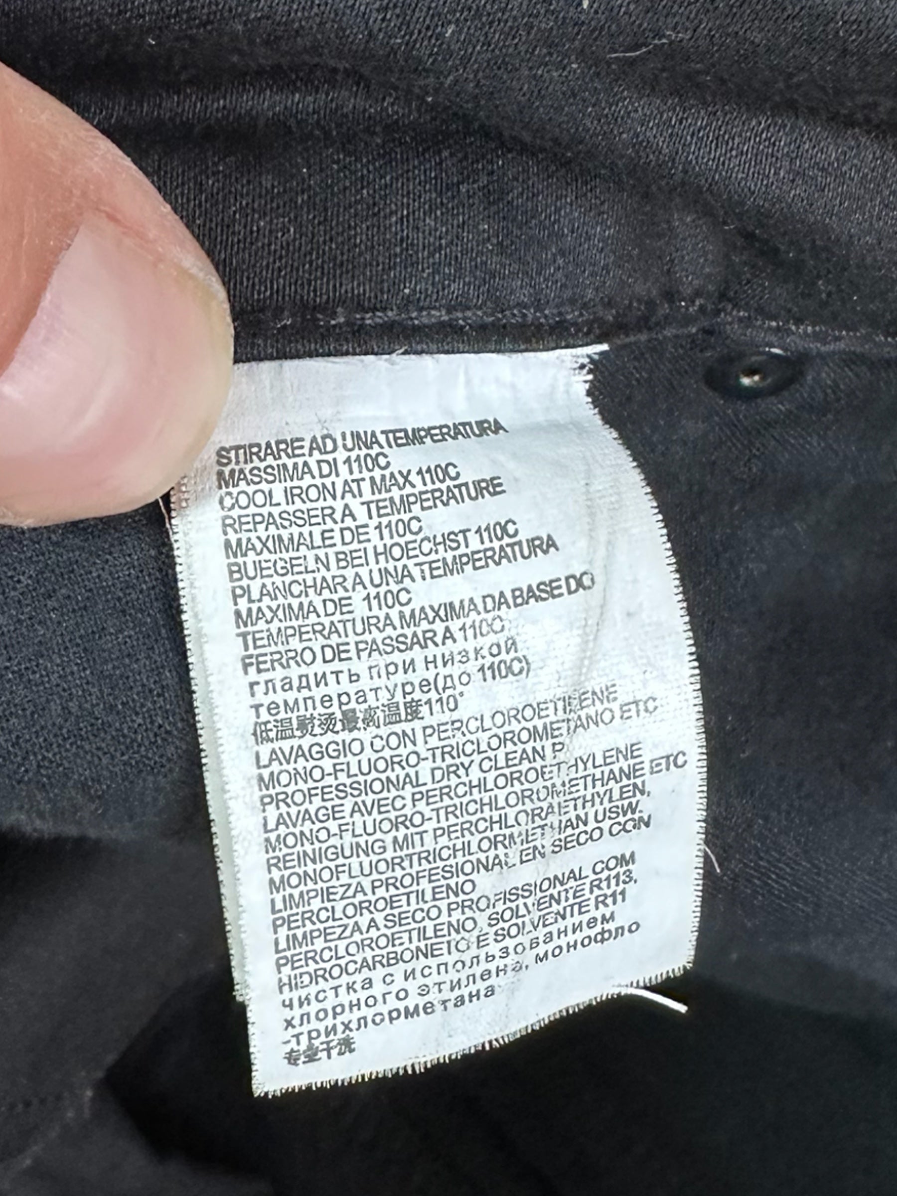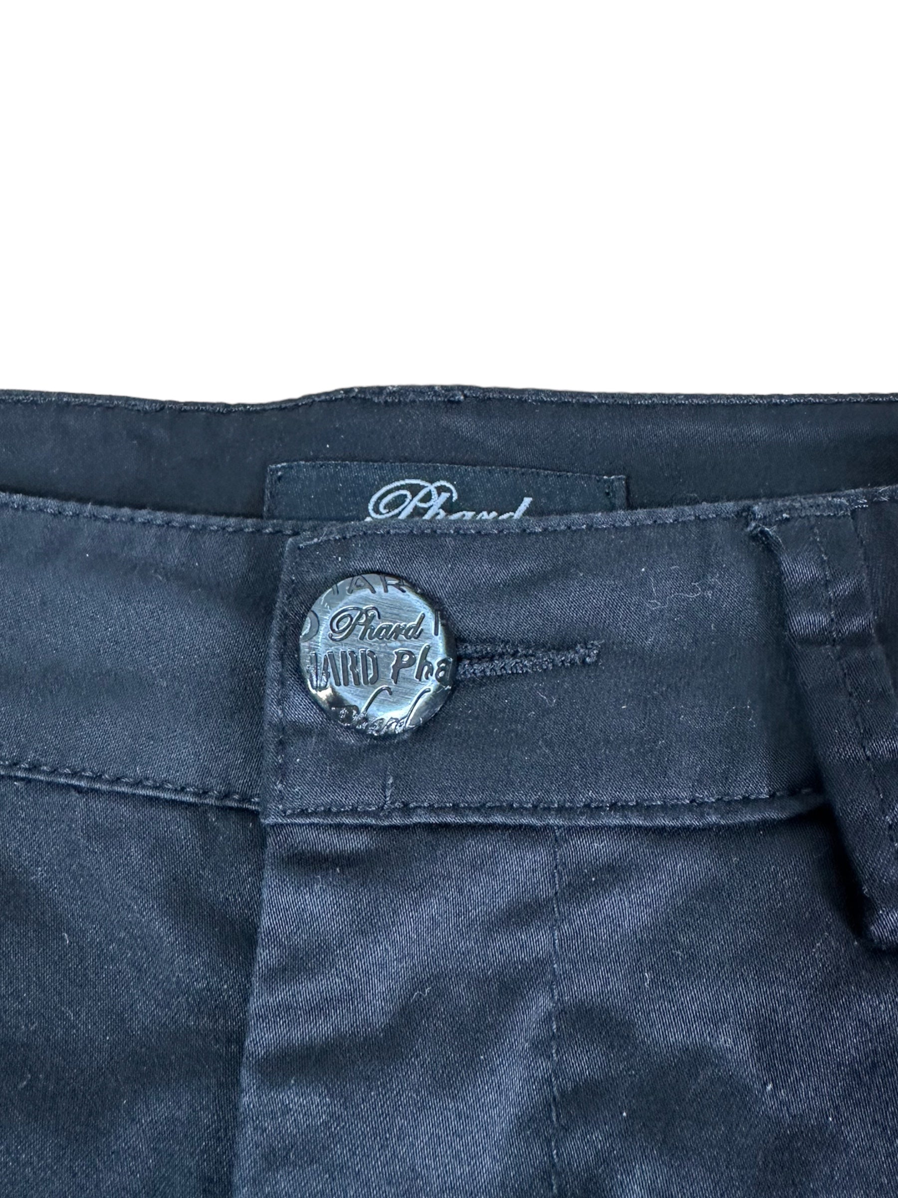 Phard mini gonna a vita bassa in cotone nero con tasche laterali e chiusura con bottone in metallo logato. Non riportata la taglia ma veste una 44.