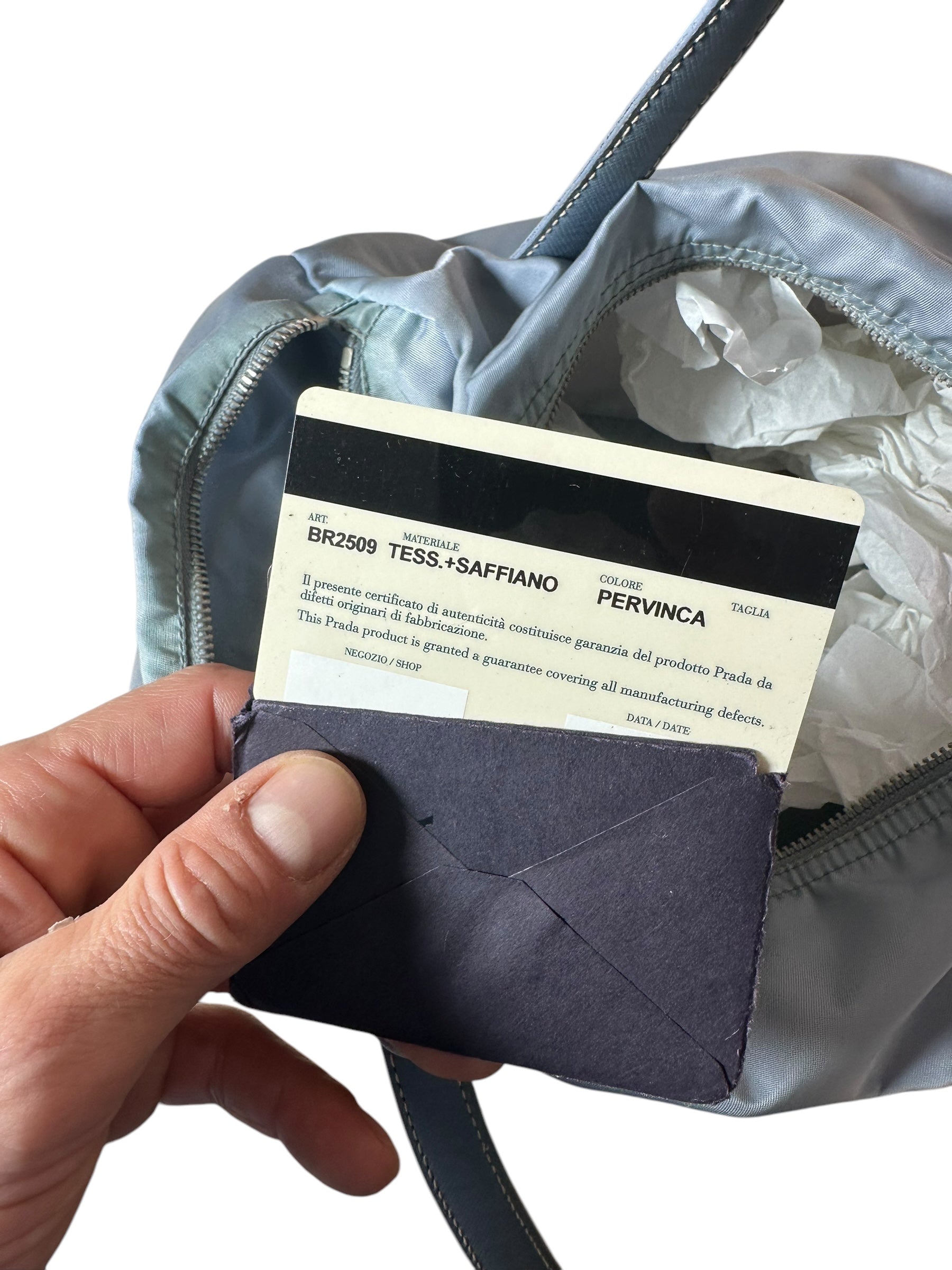Prada – Borsa Vintage a mano in Nylon Celeste