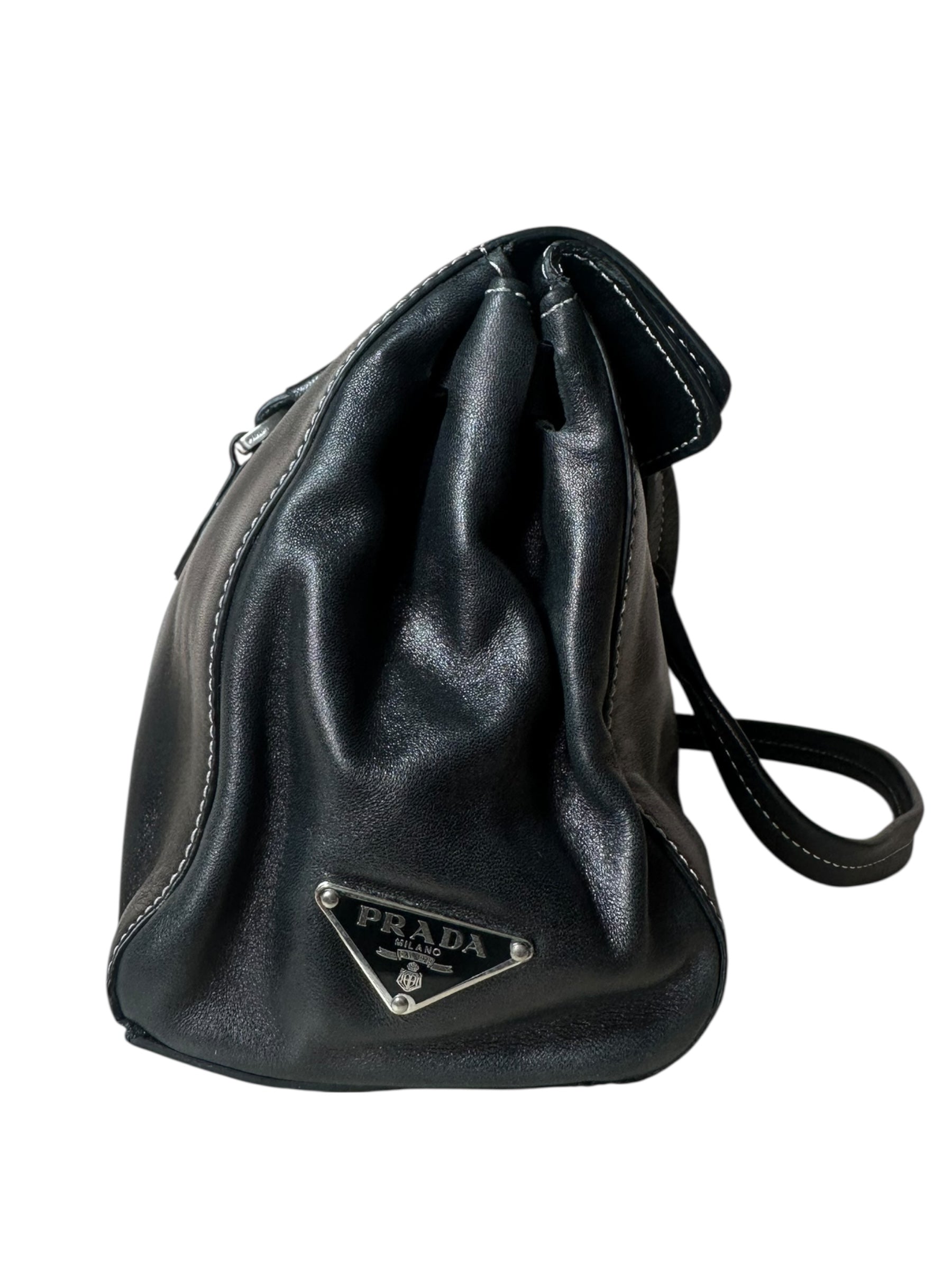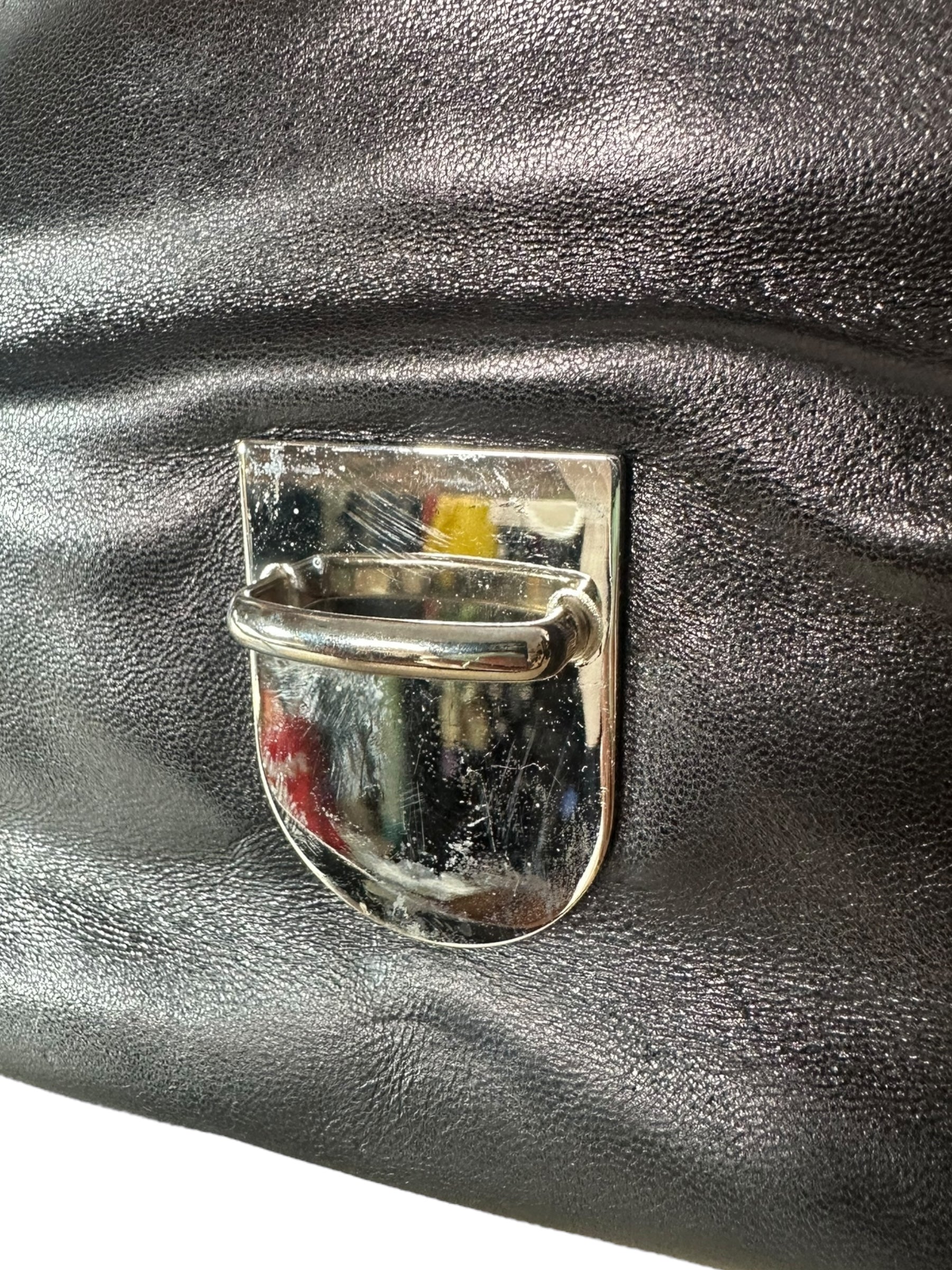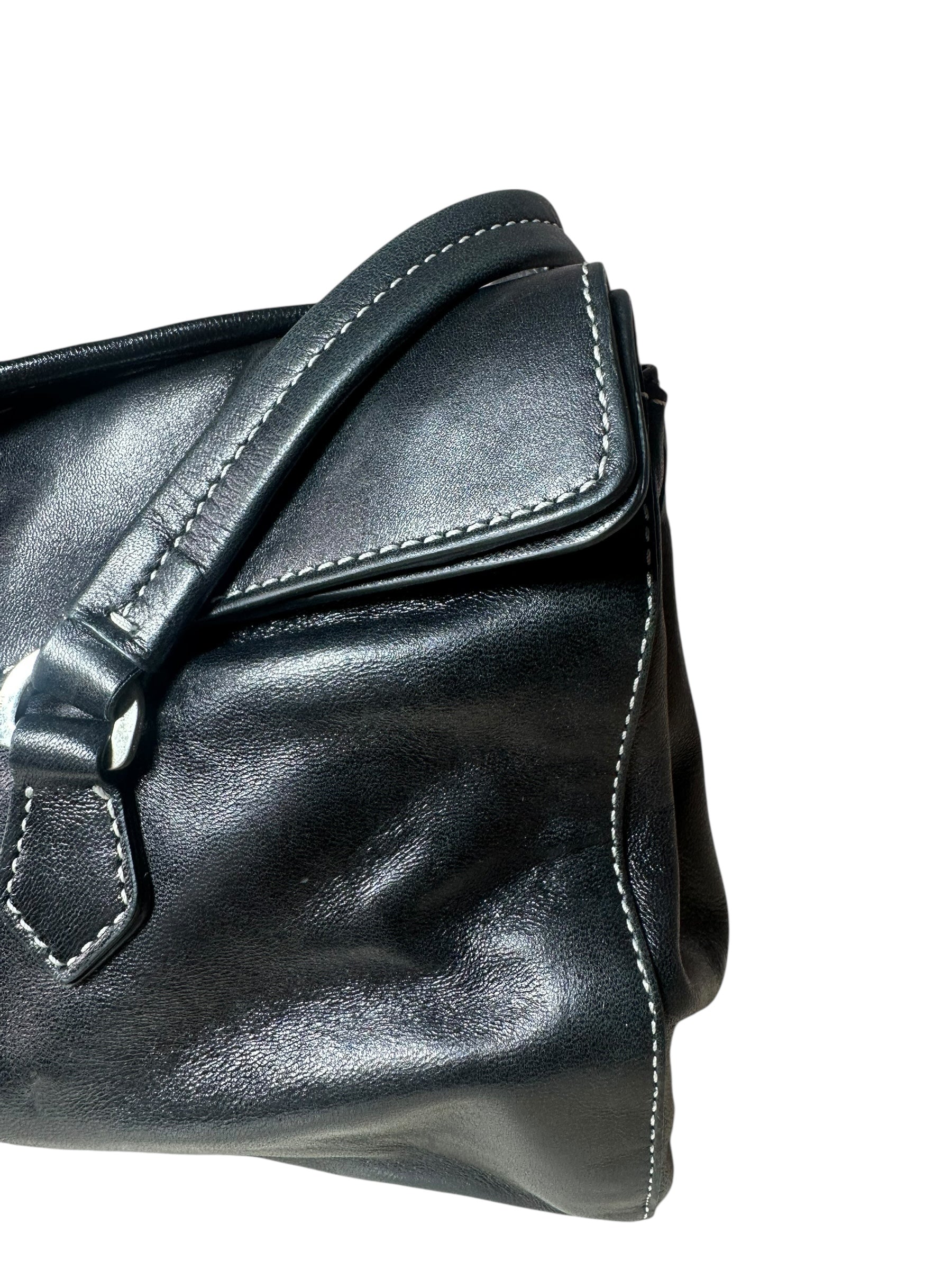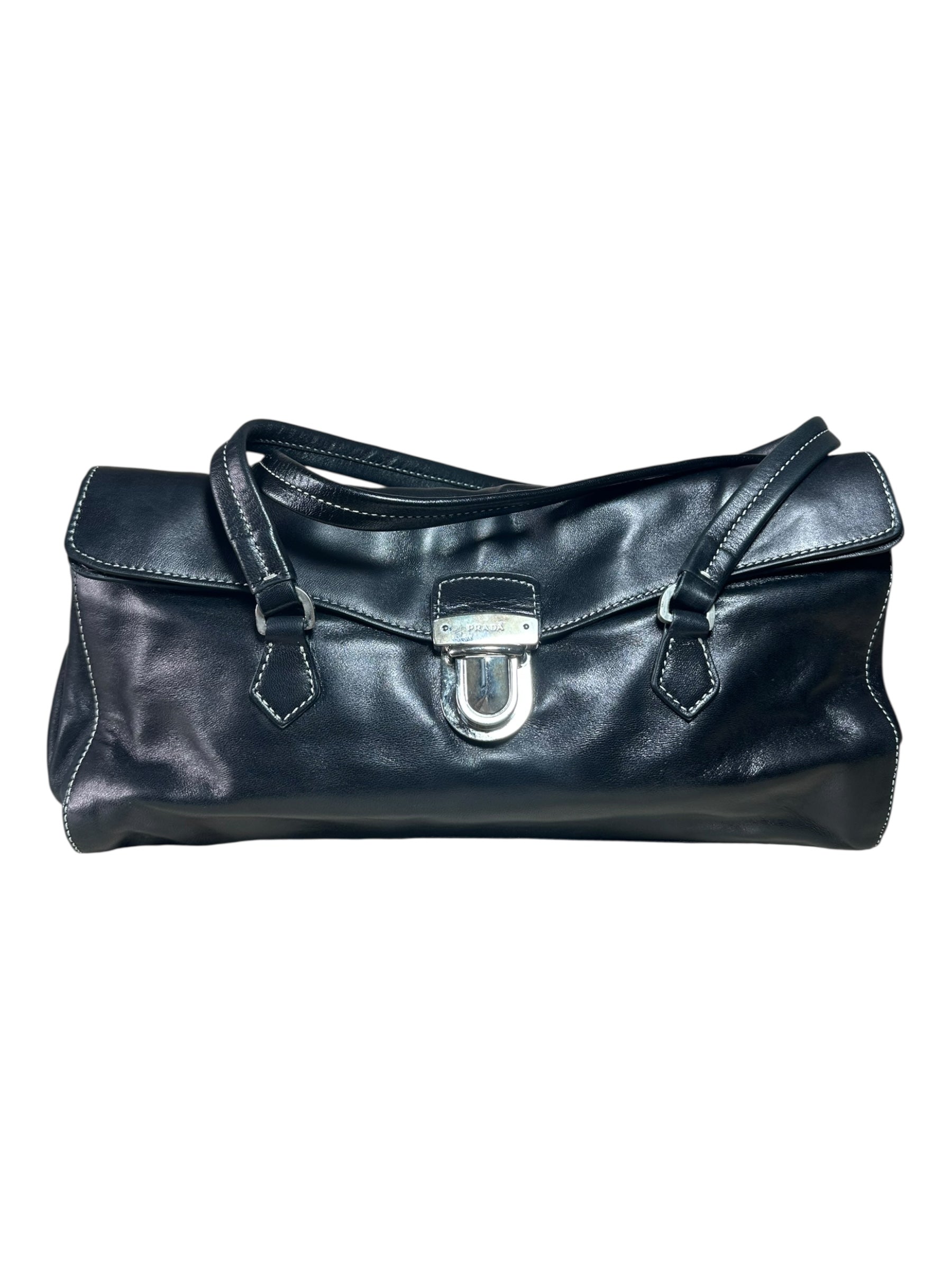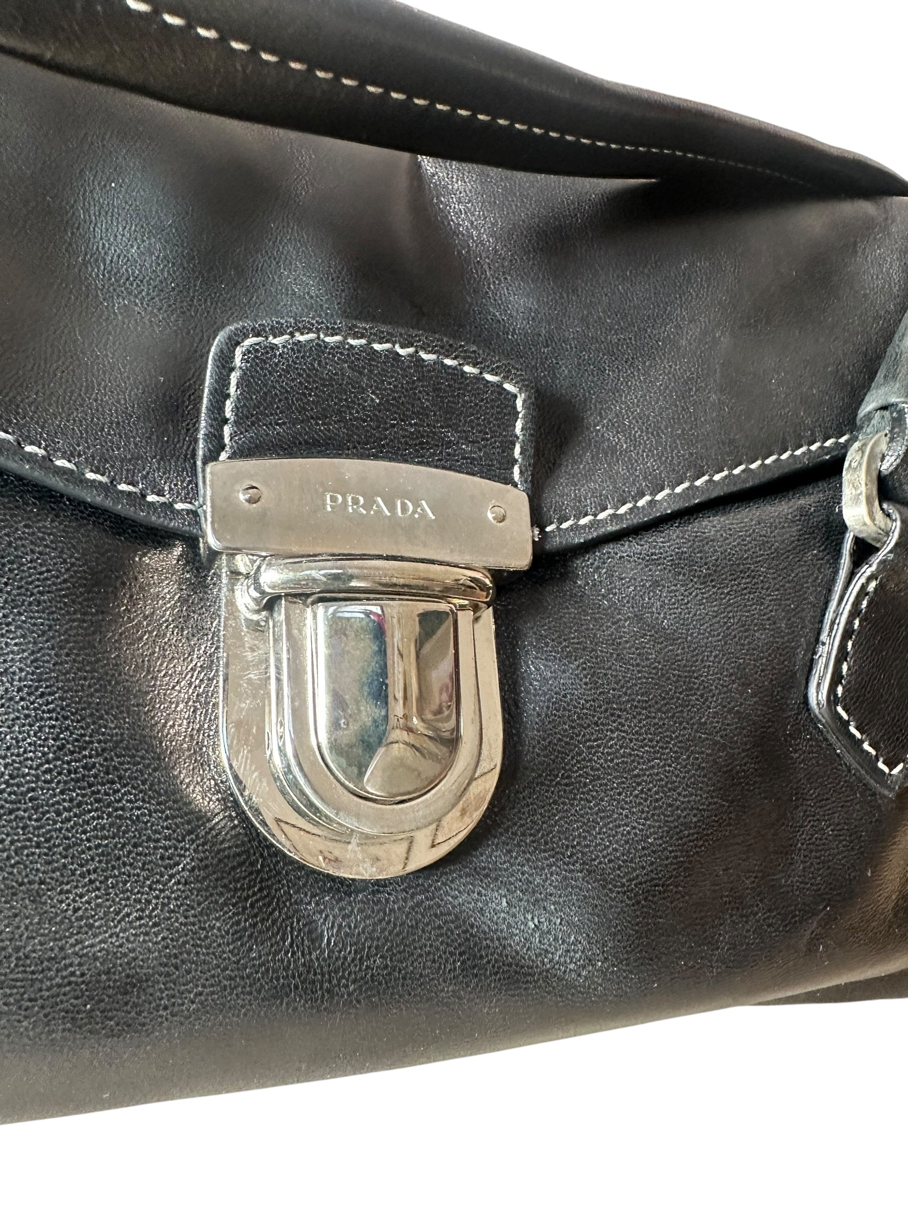 Borsa vintage Prada in pelle nera con chiusura metallica