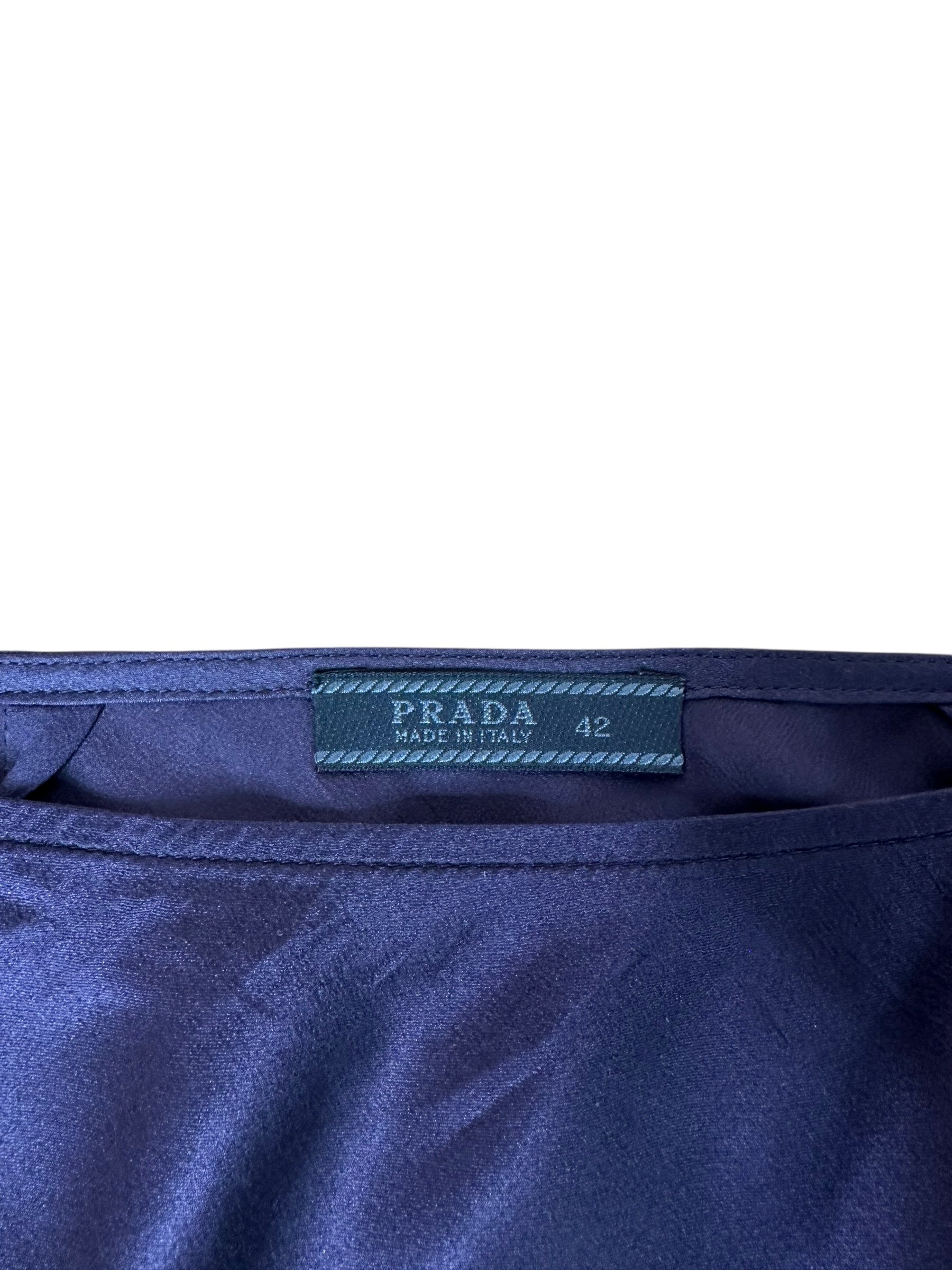 Gonna midi vintage Prada in pura seta blu navy