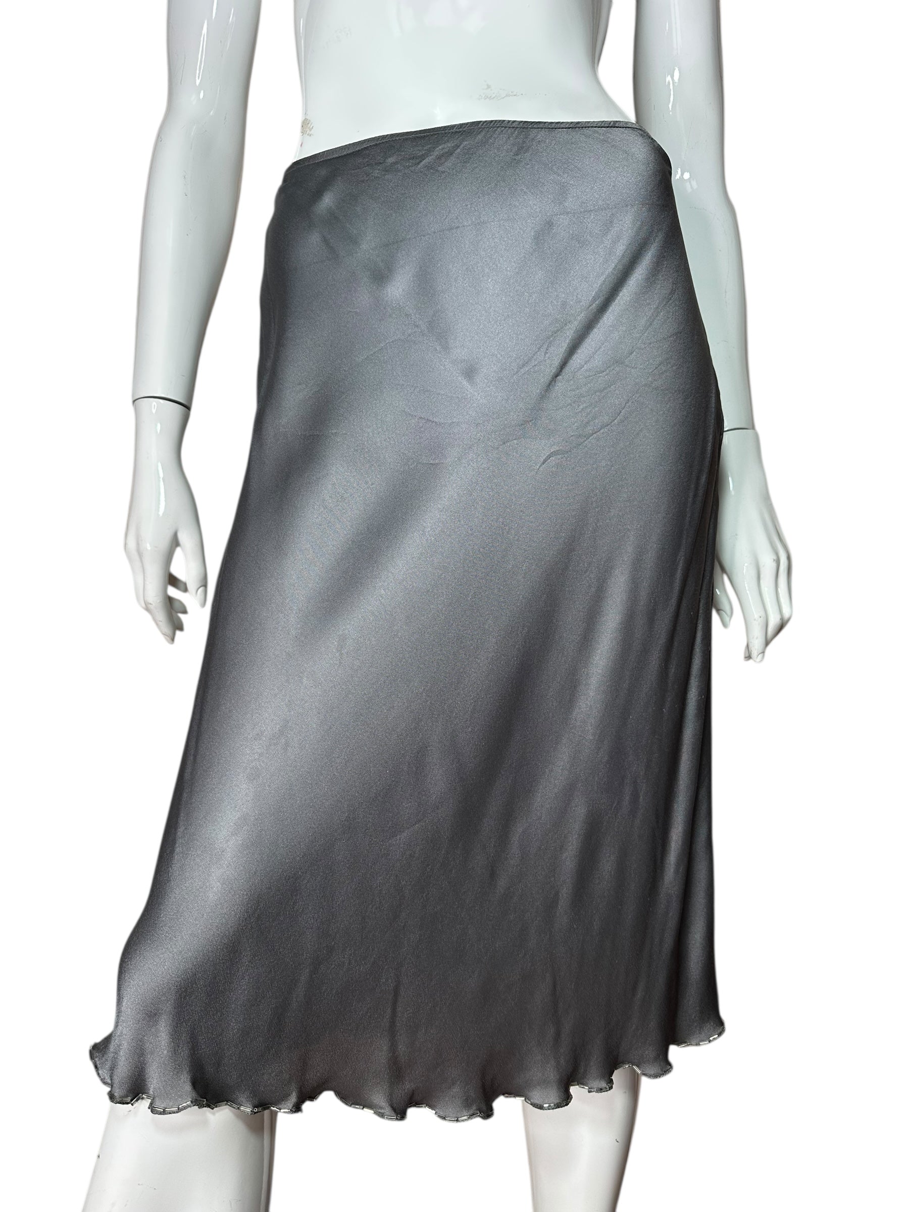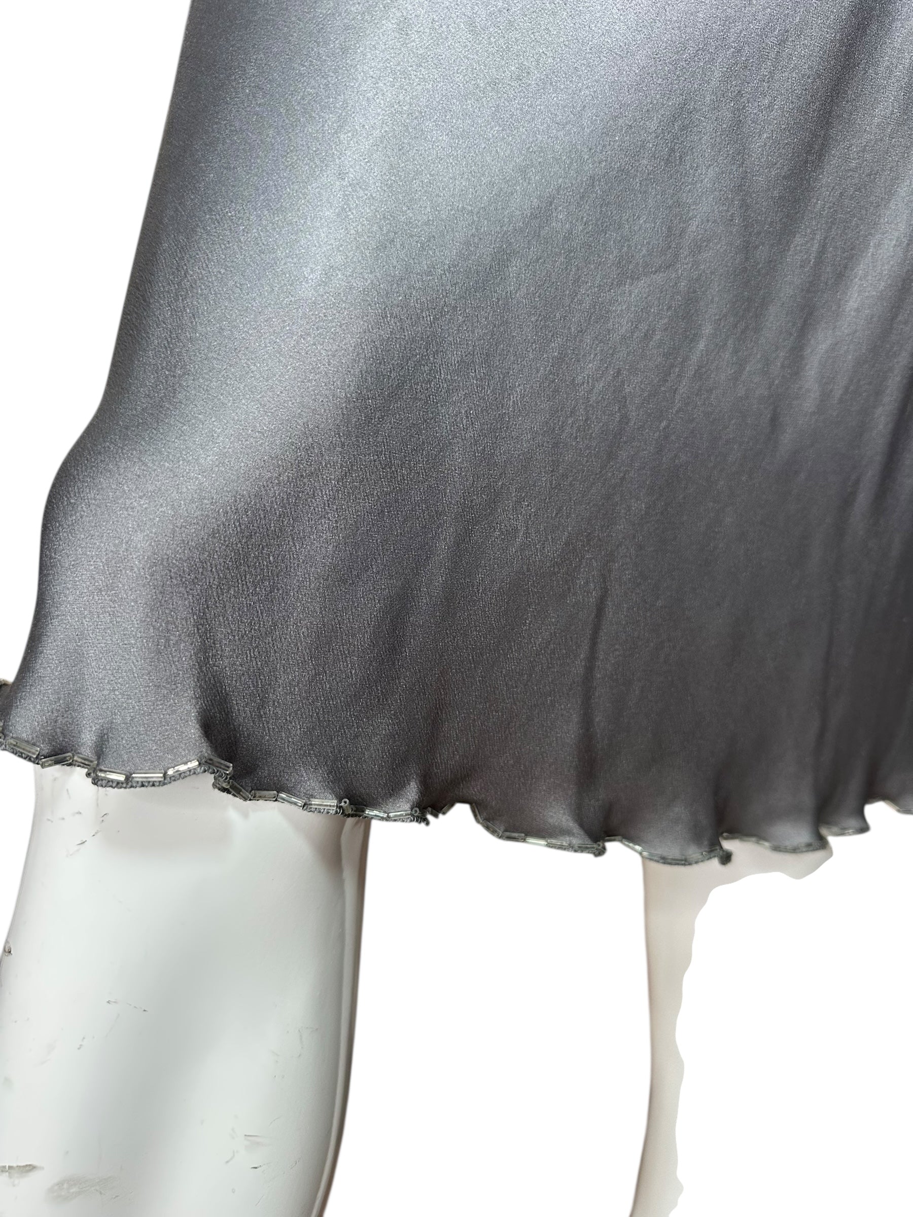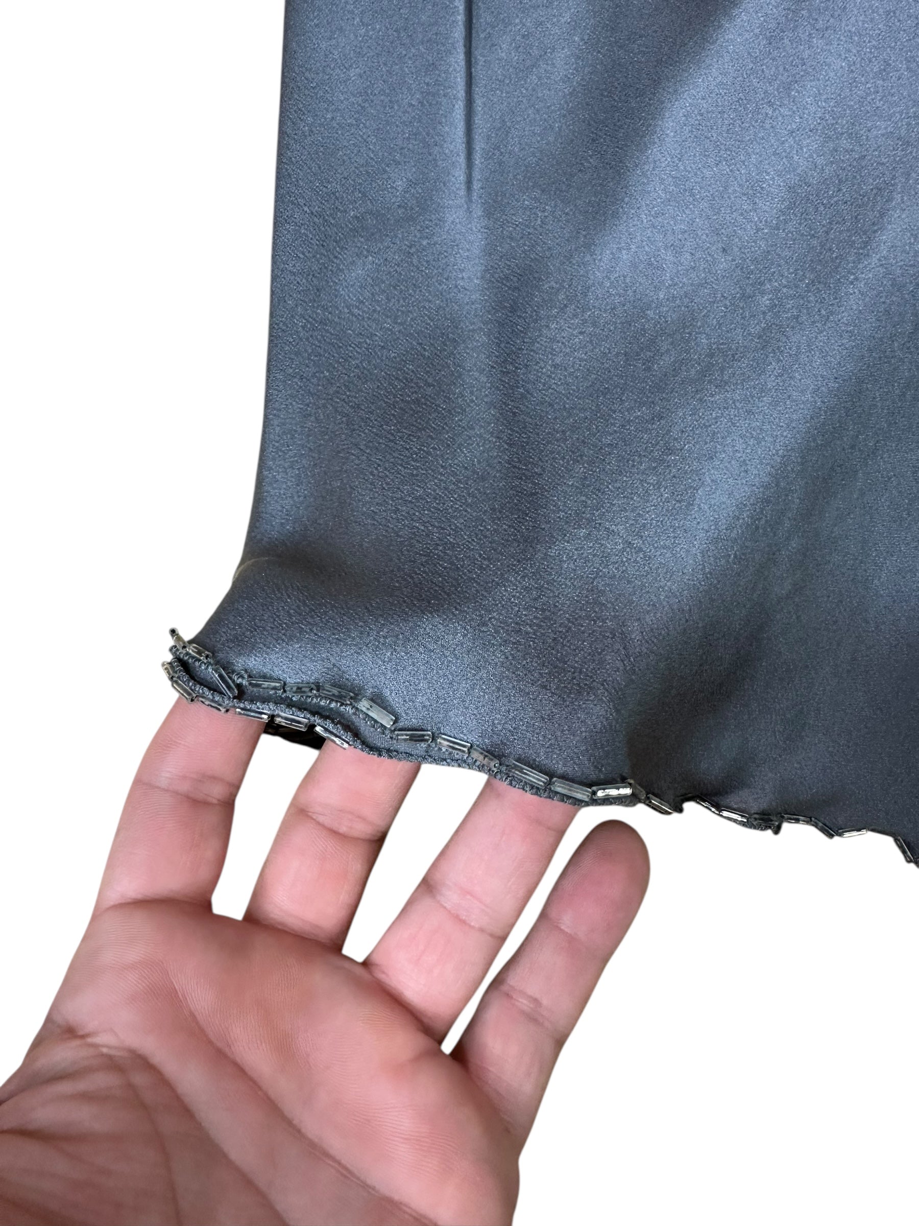 Gonna midi vintage Prada in seta grigio perlato con perline