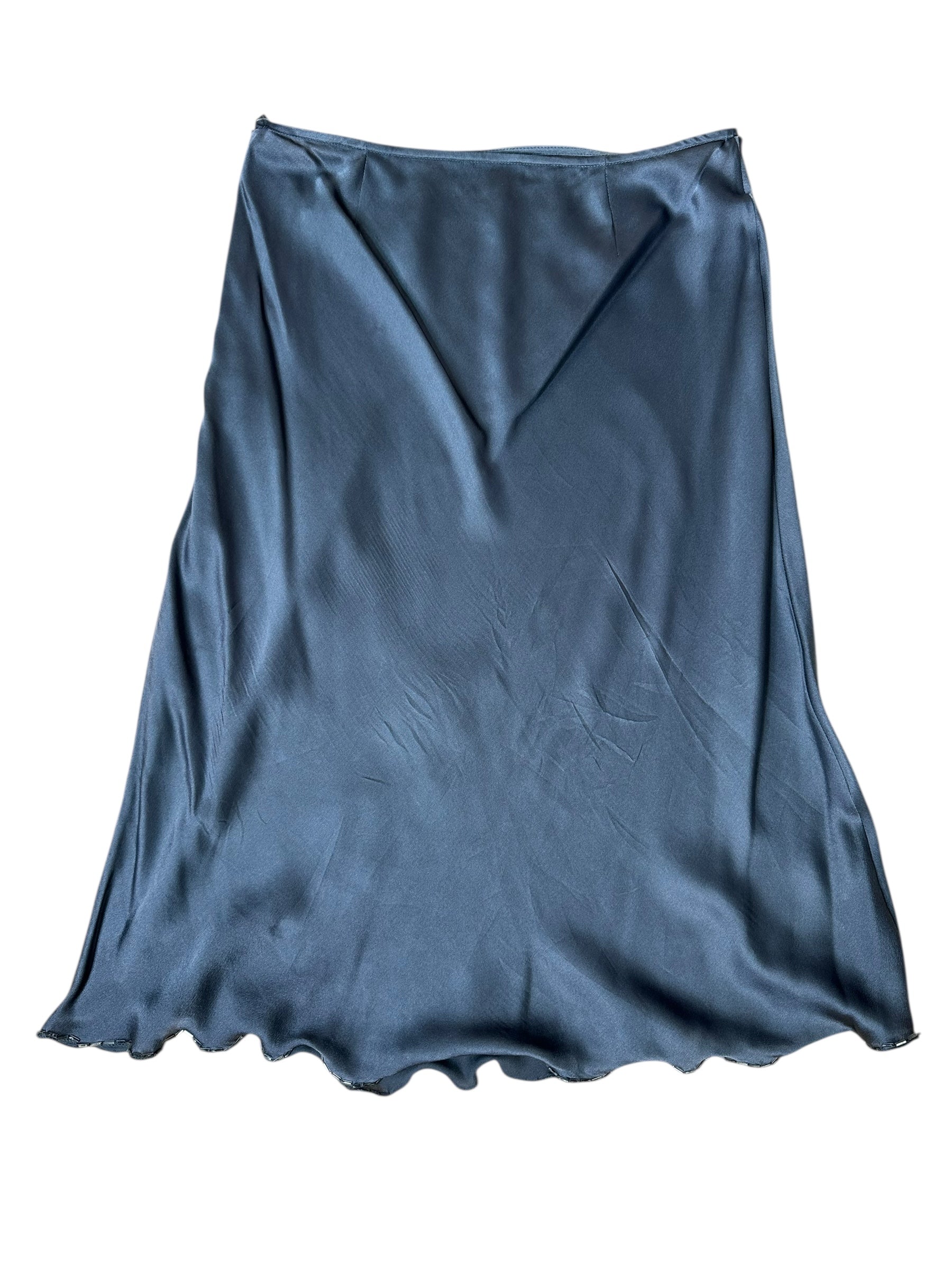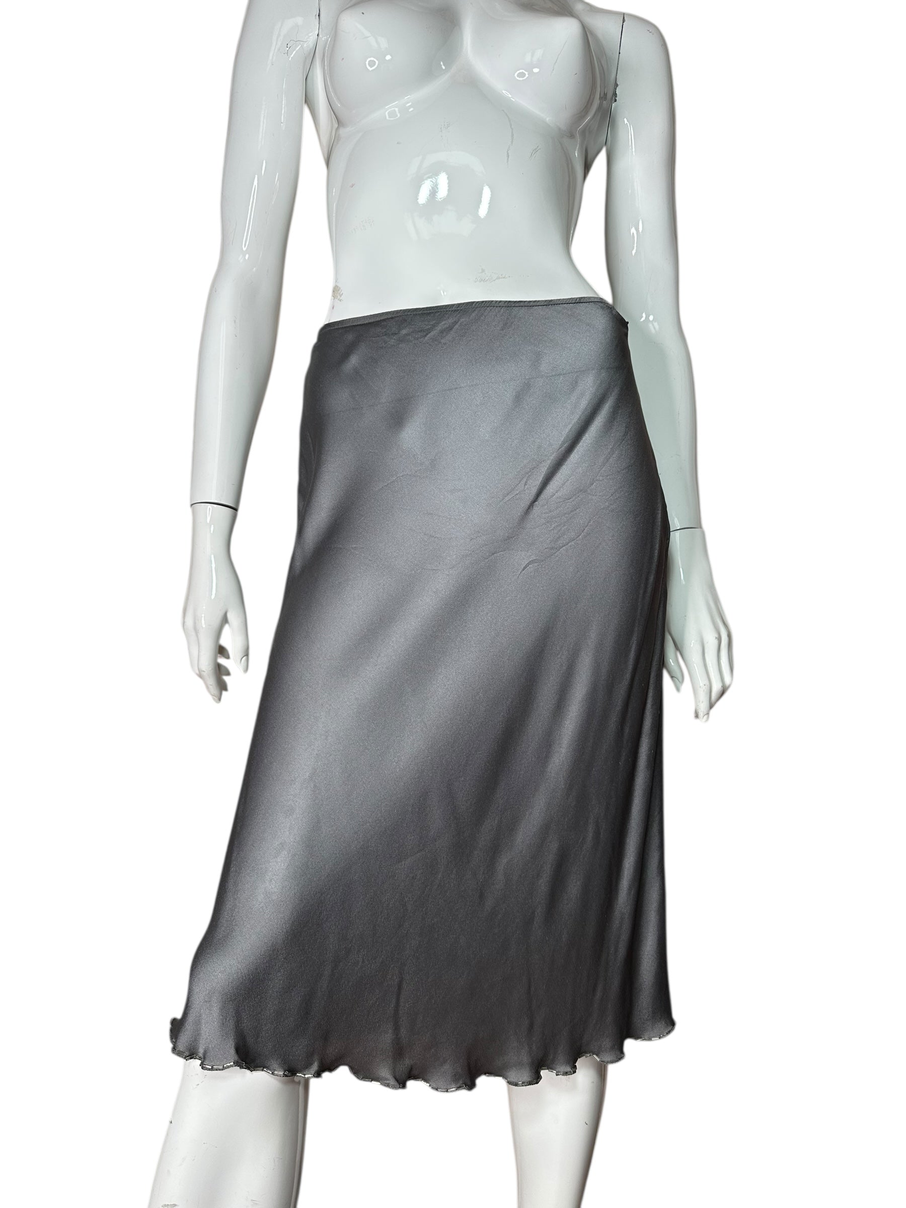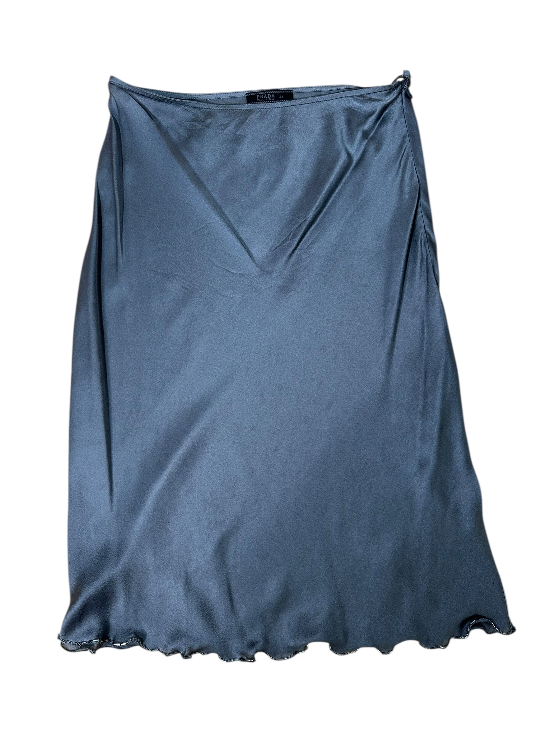 Gonna midi vintage Prada in seta grigio perlato con perline