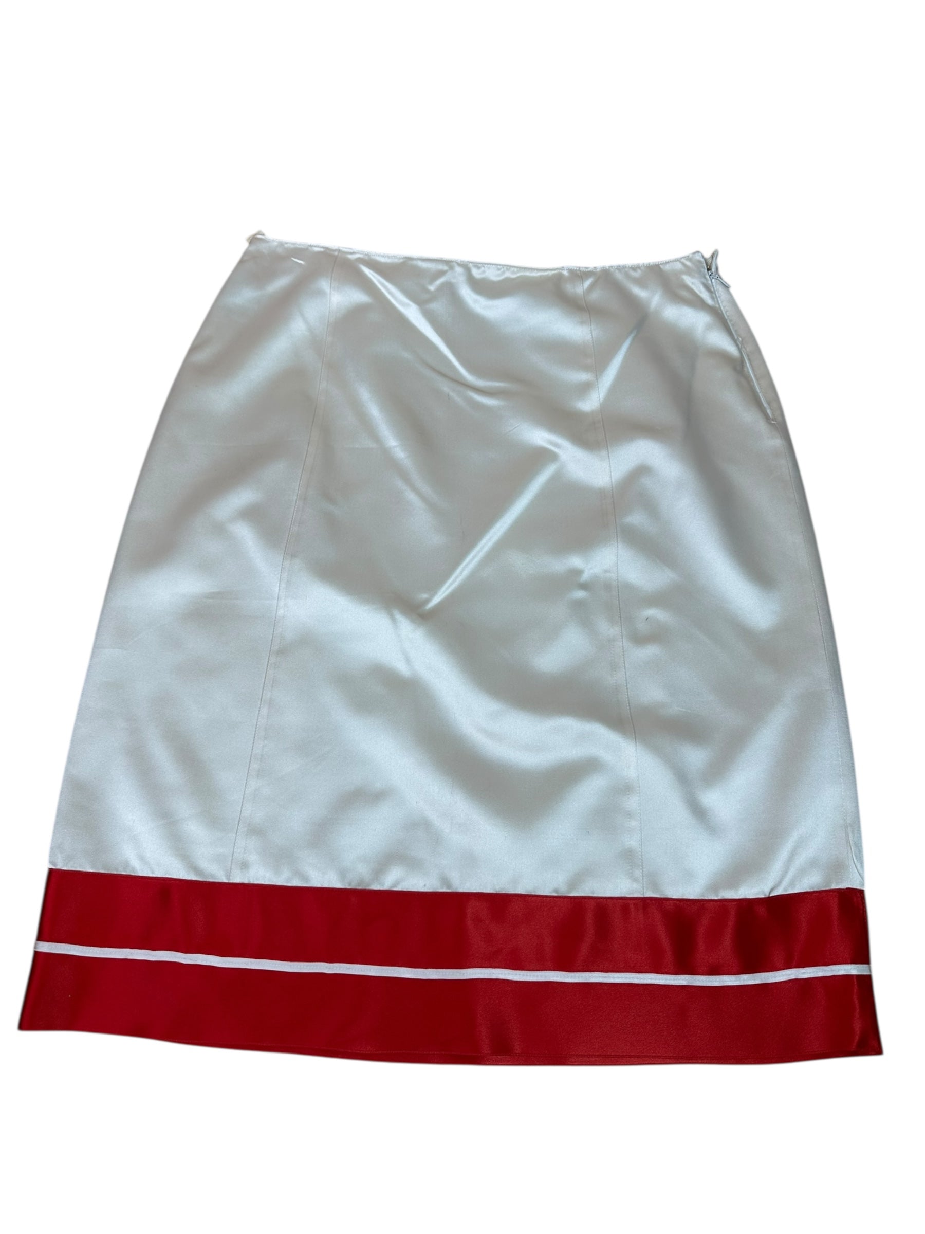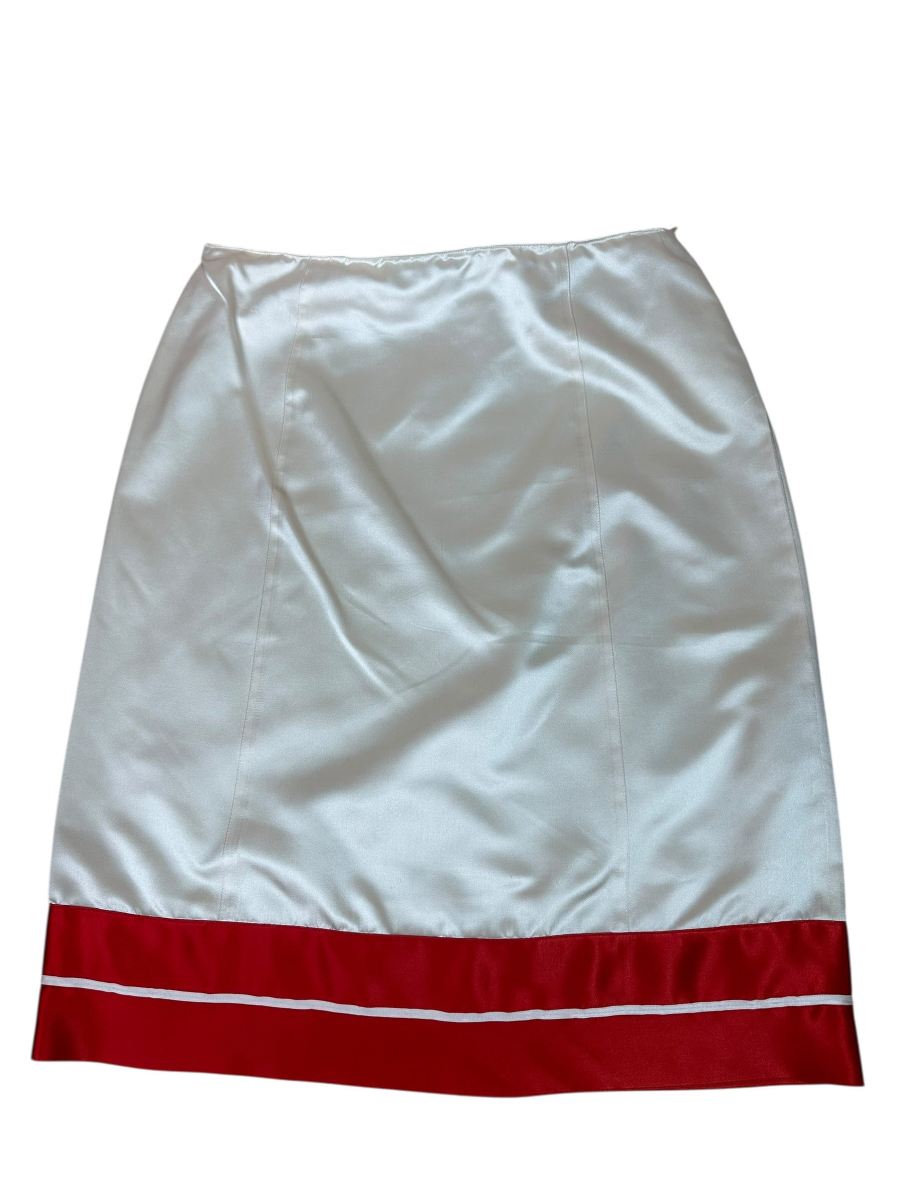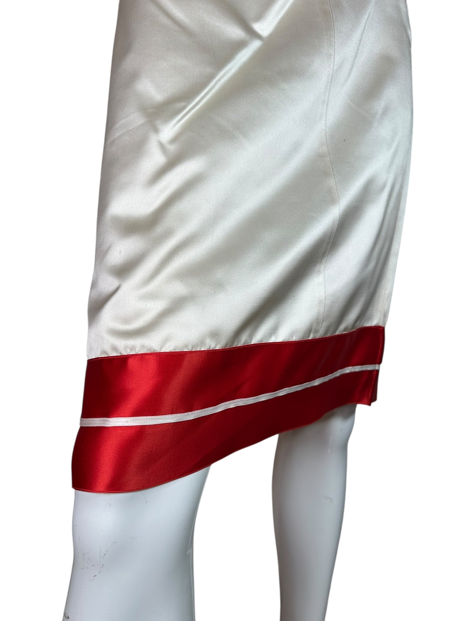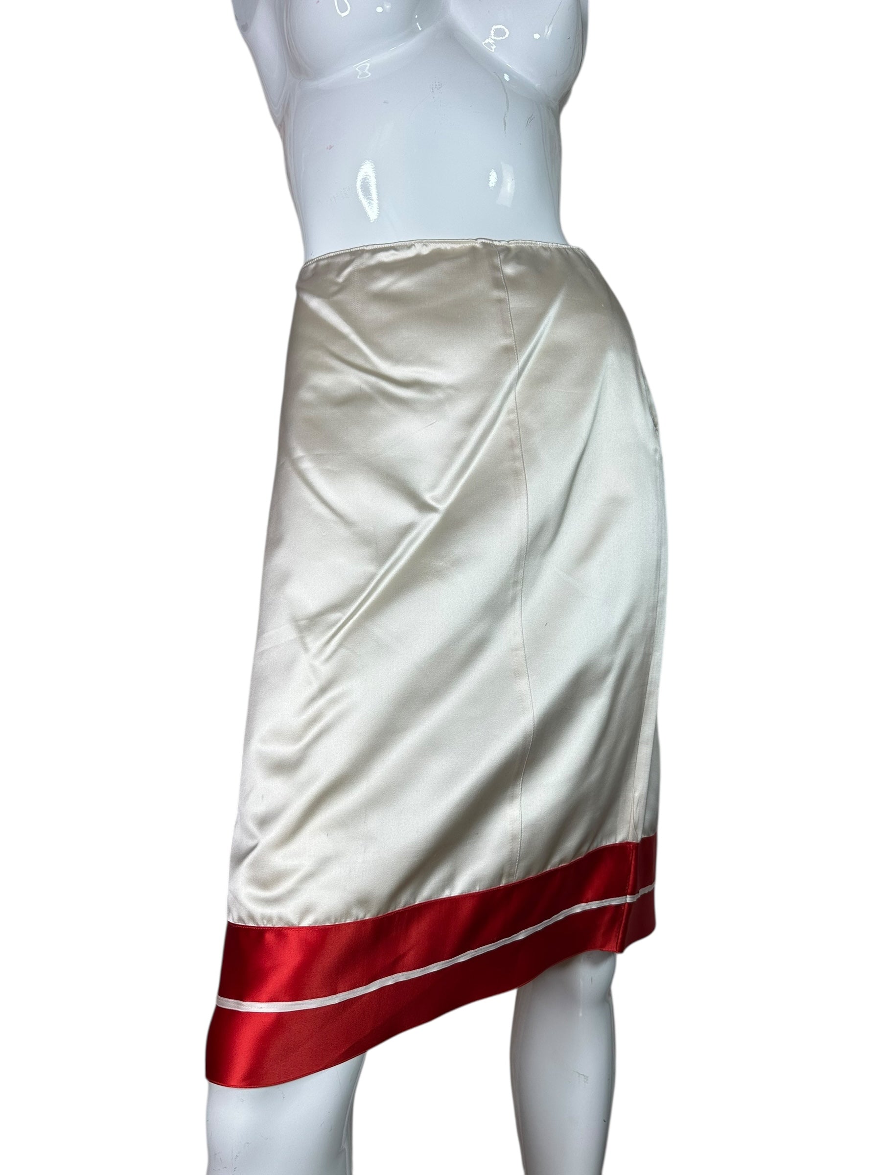 Gonna vintage Prada in seta avorio con fascia rossa a contrasto