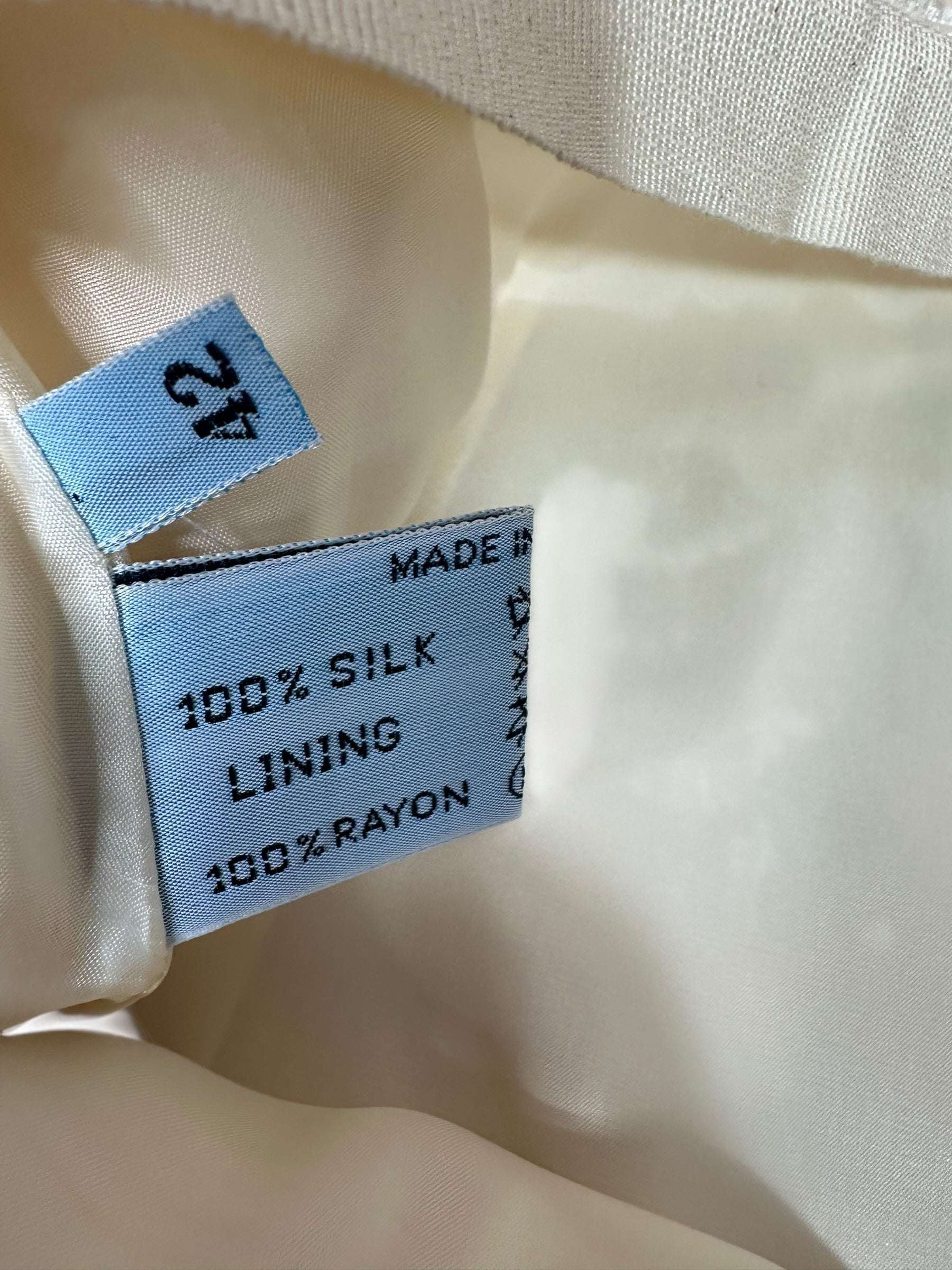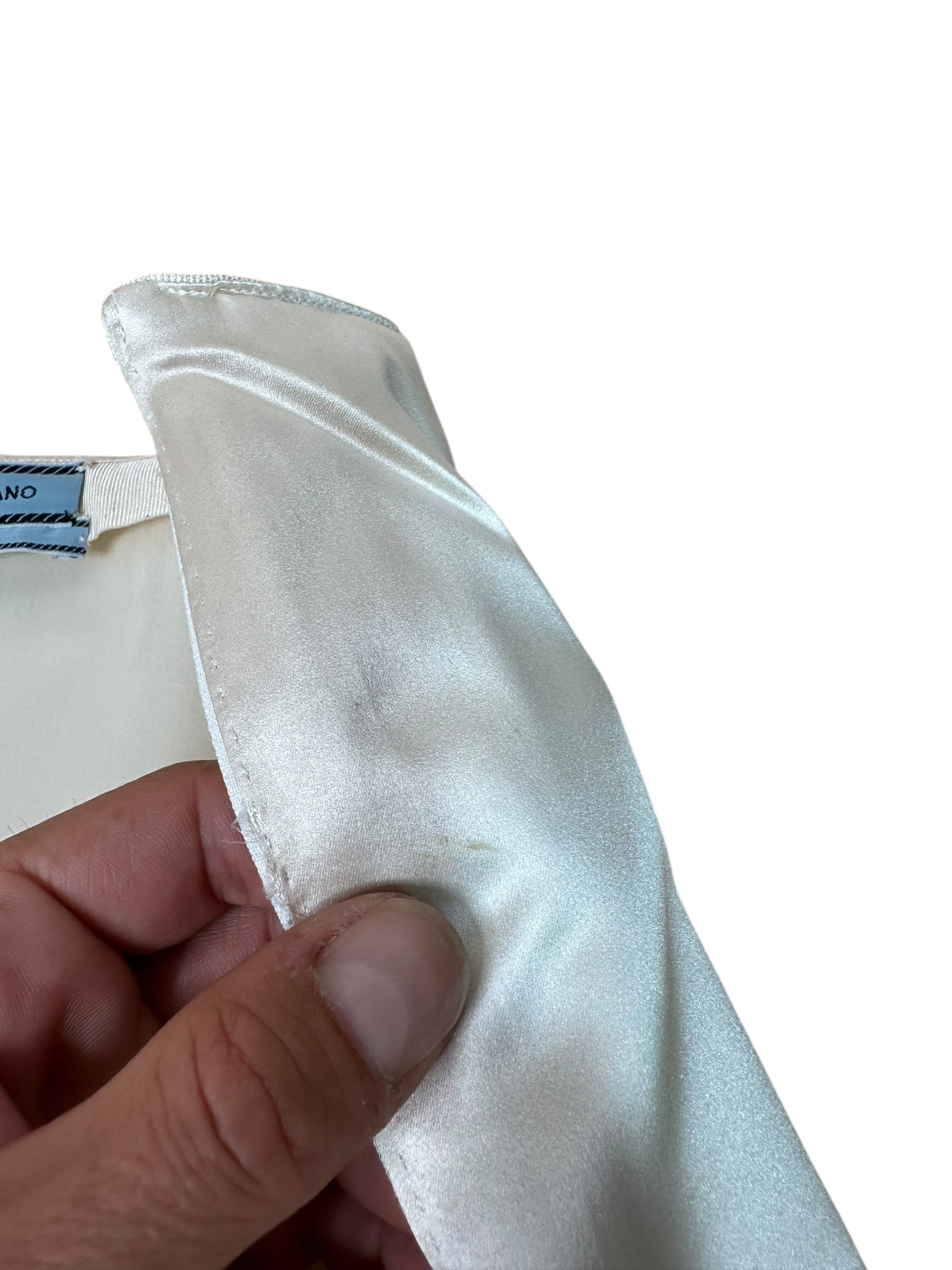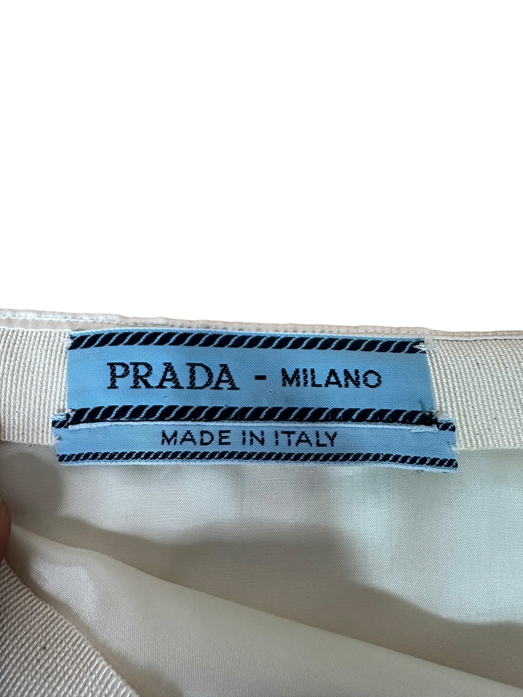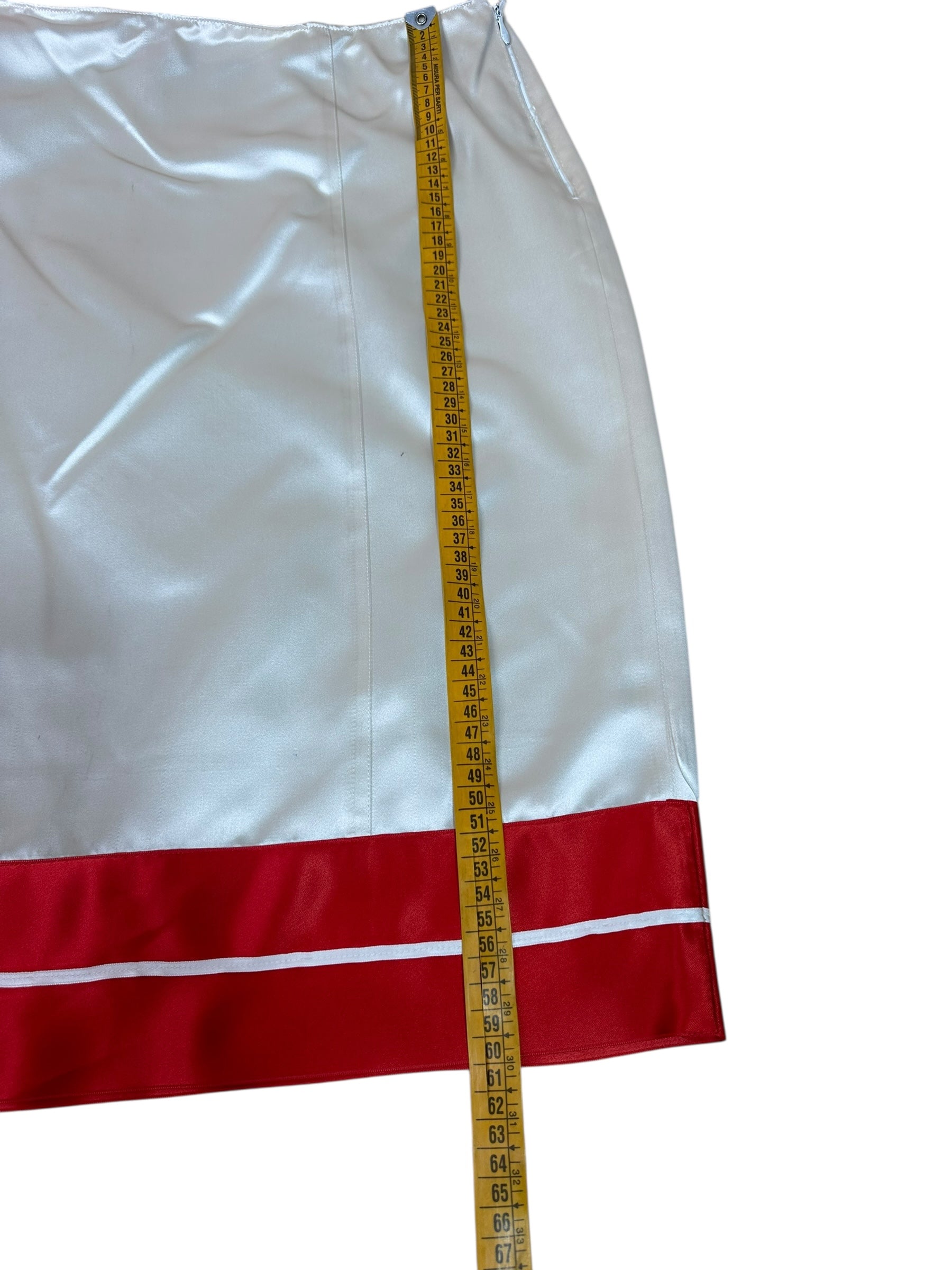 Gonna vintage Prada in seta avorio con fascia rossa a contrasto