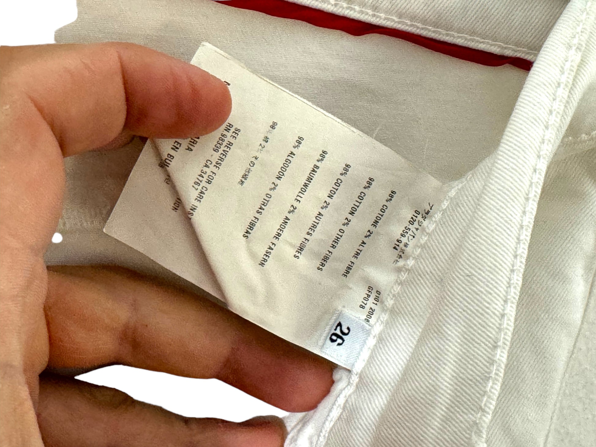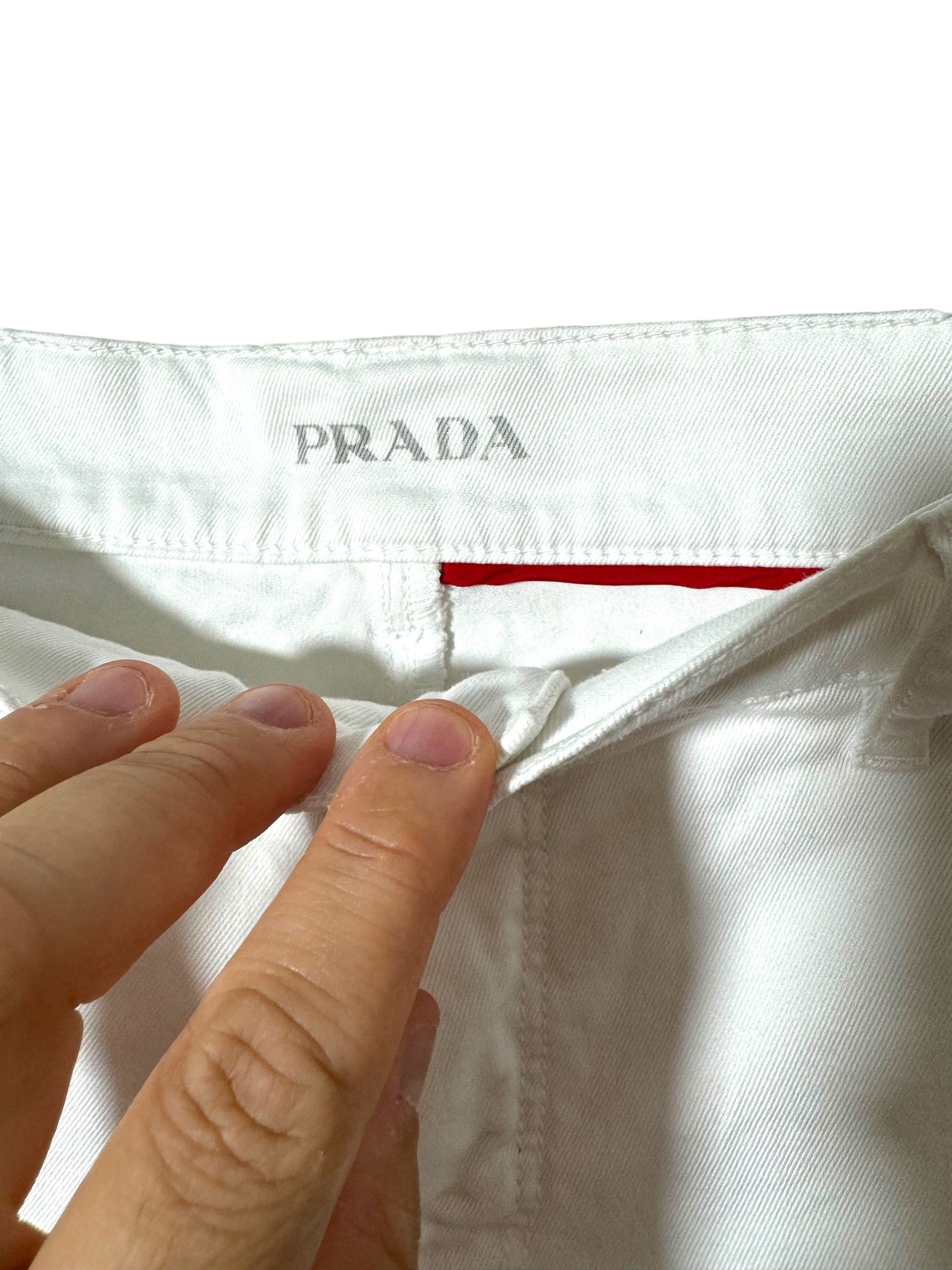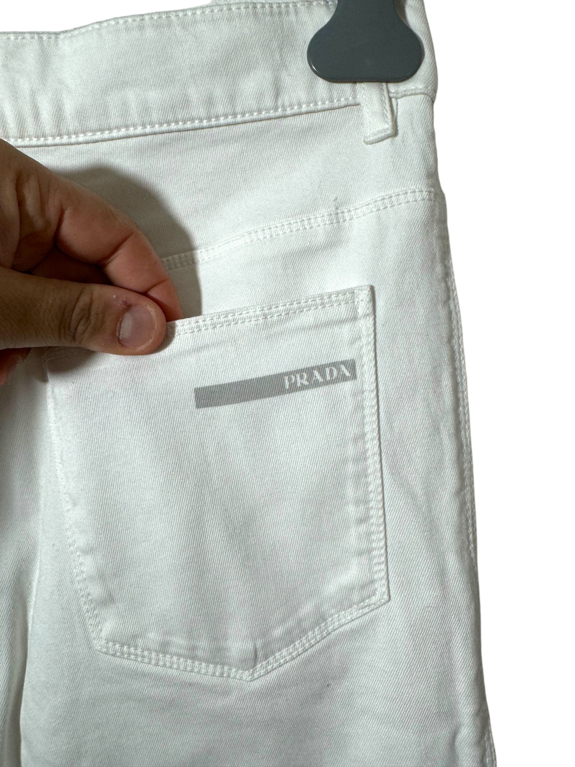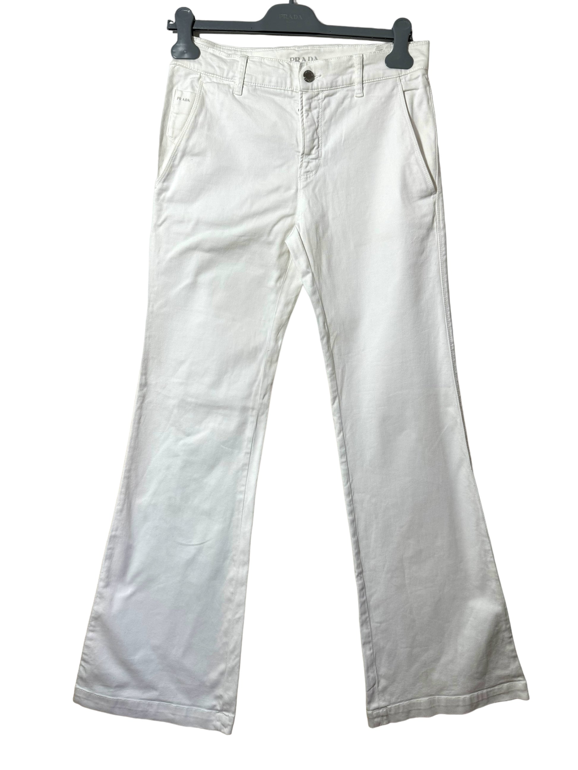 Prada pantaloni a zampa in jeans bianco, taglia 26, misura in vita 40 cm. Vedi foto.