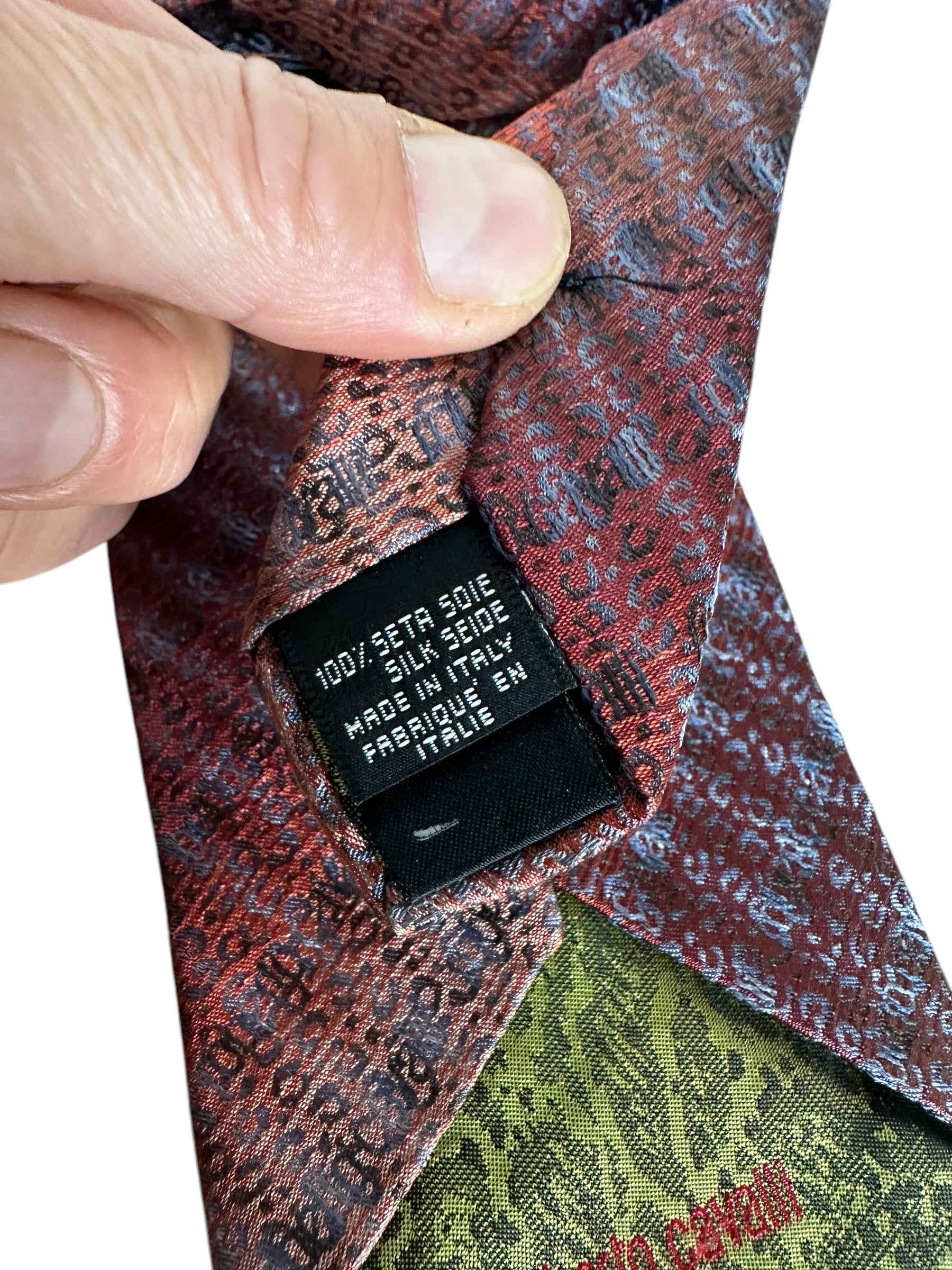 Etichetta: Roberto Cavalli su sfondo nero con scritta rossa