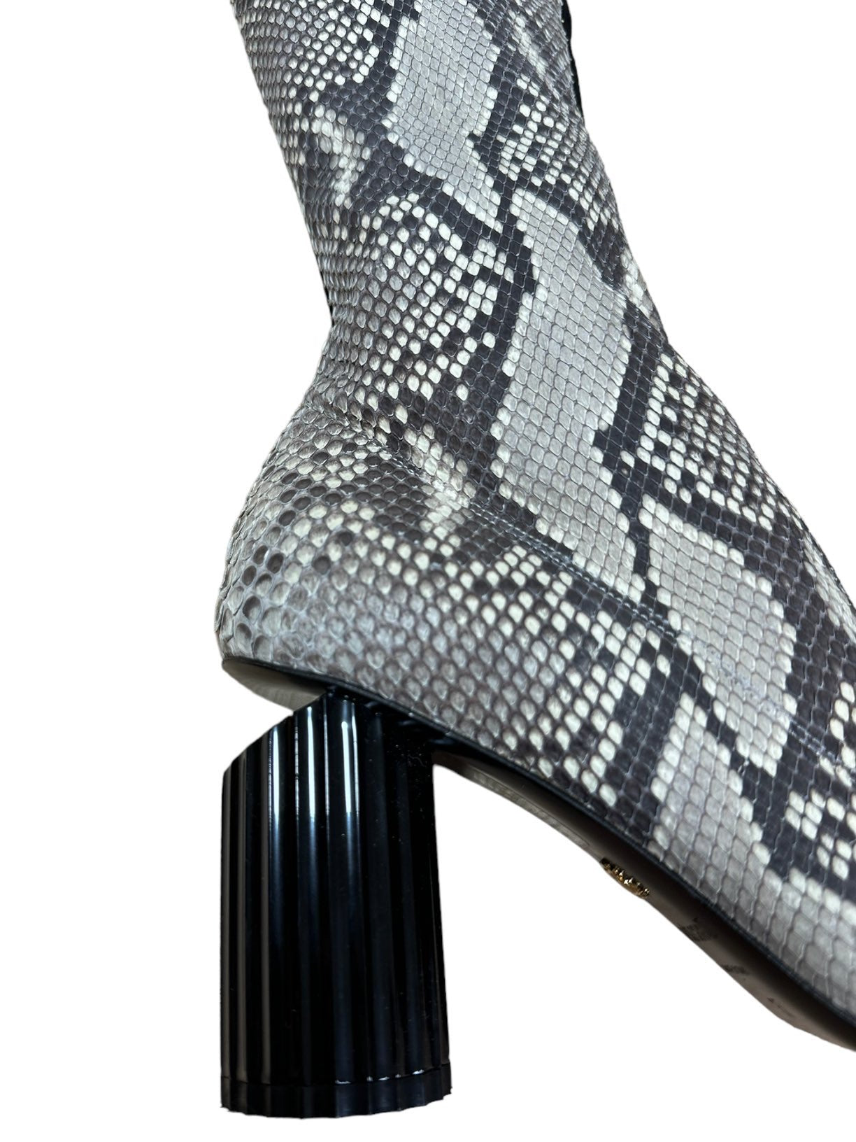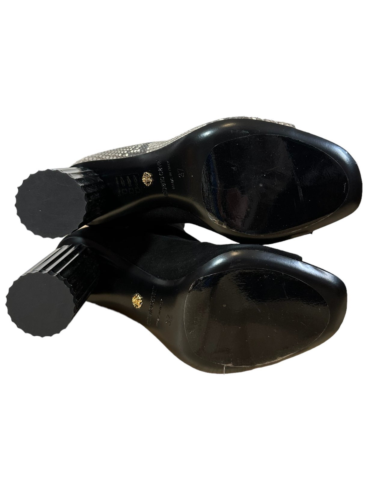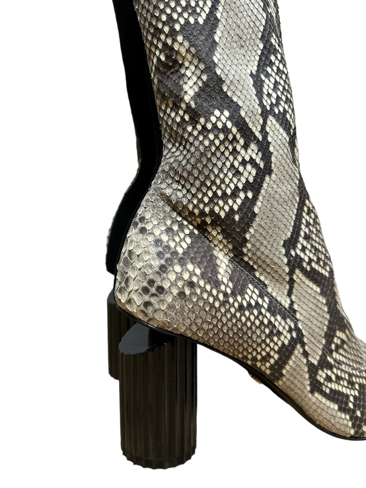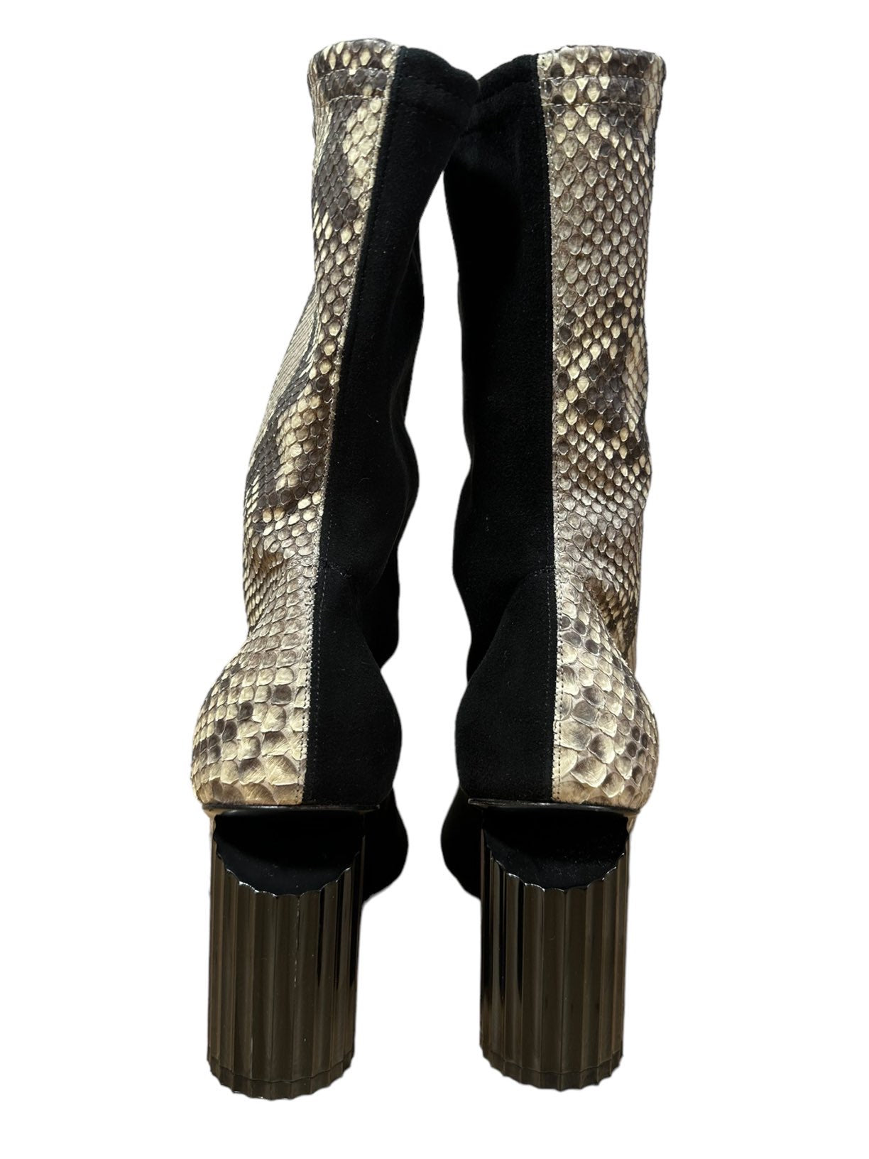 Roberto Cavalli stivali in camoscio e rettile elasticizzato con punta scoperta e tacco cilindrico lavorato. N.37 Articolo di seconda mano, non vengono spediti con scatola.
