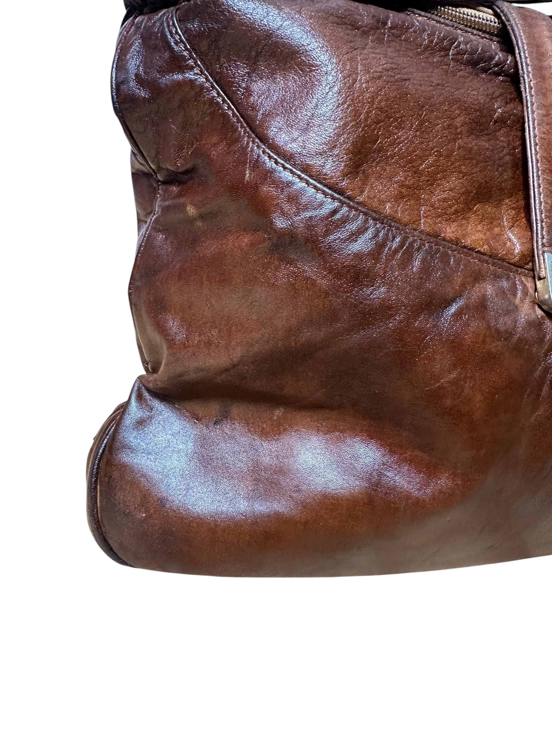 Condizioni d’uso: la pelle mostra segni di usura diffusi e un effetto vissuto che ne sottolinea il carattere vintage. Sono presenti due segni più evidenti, visibili in foto, che non compromettono la portabilità. Le metallerie presentano una naturale ossidazione.