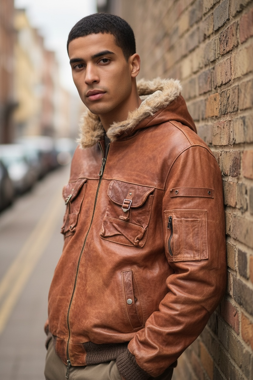 Giacca pelle vera con cappuccio e pelliccia - Made in Italy