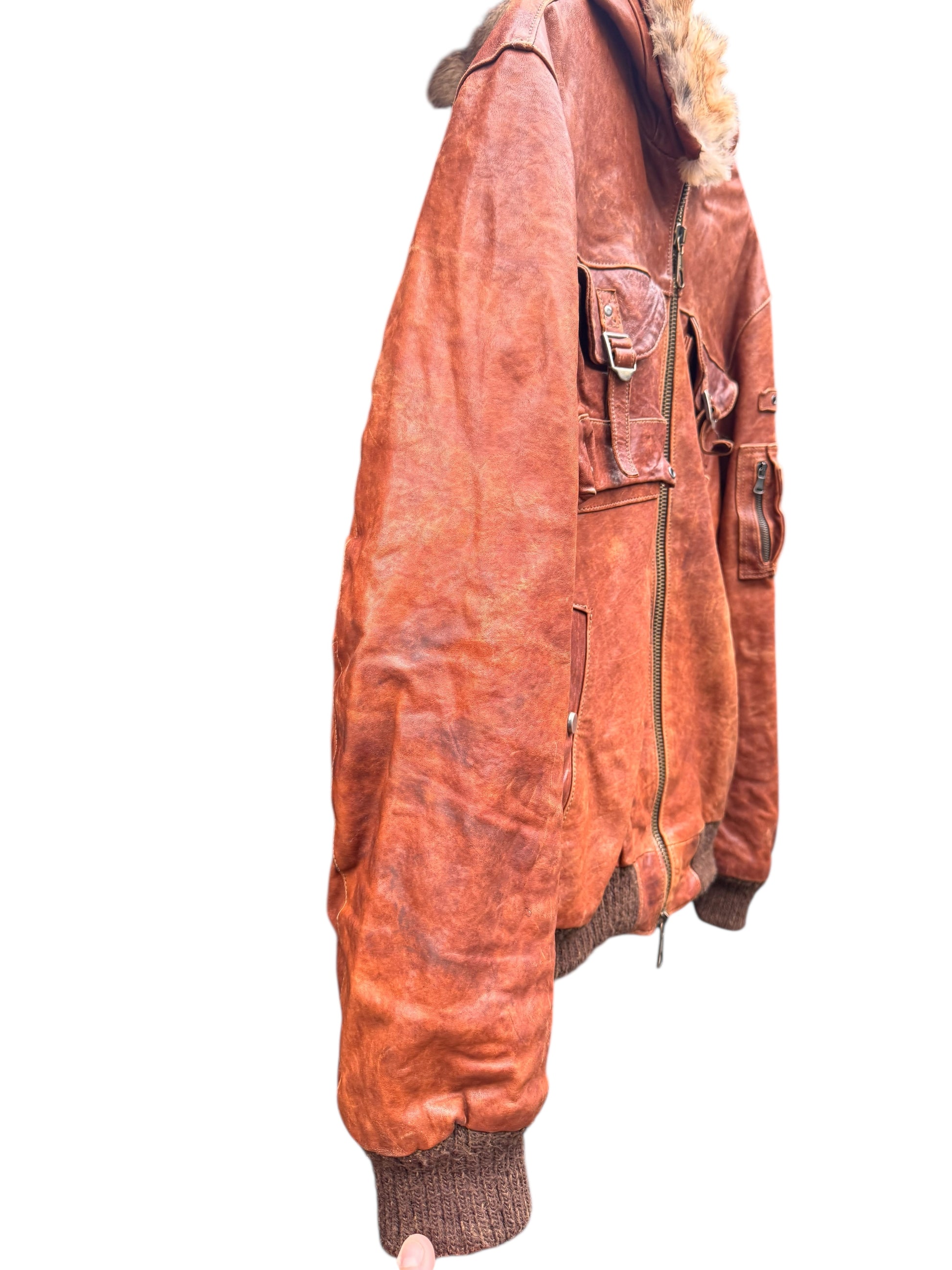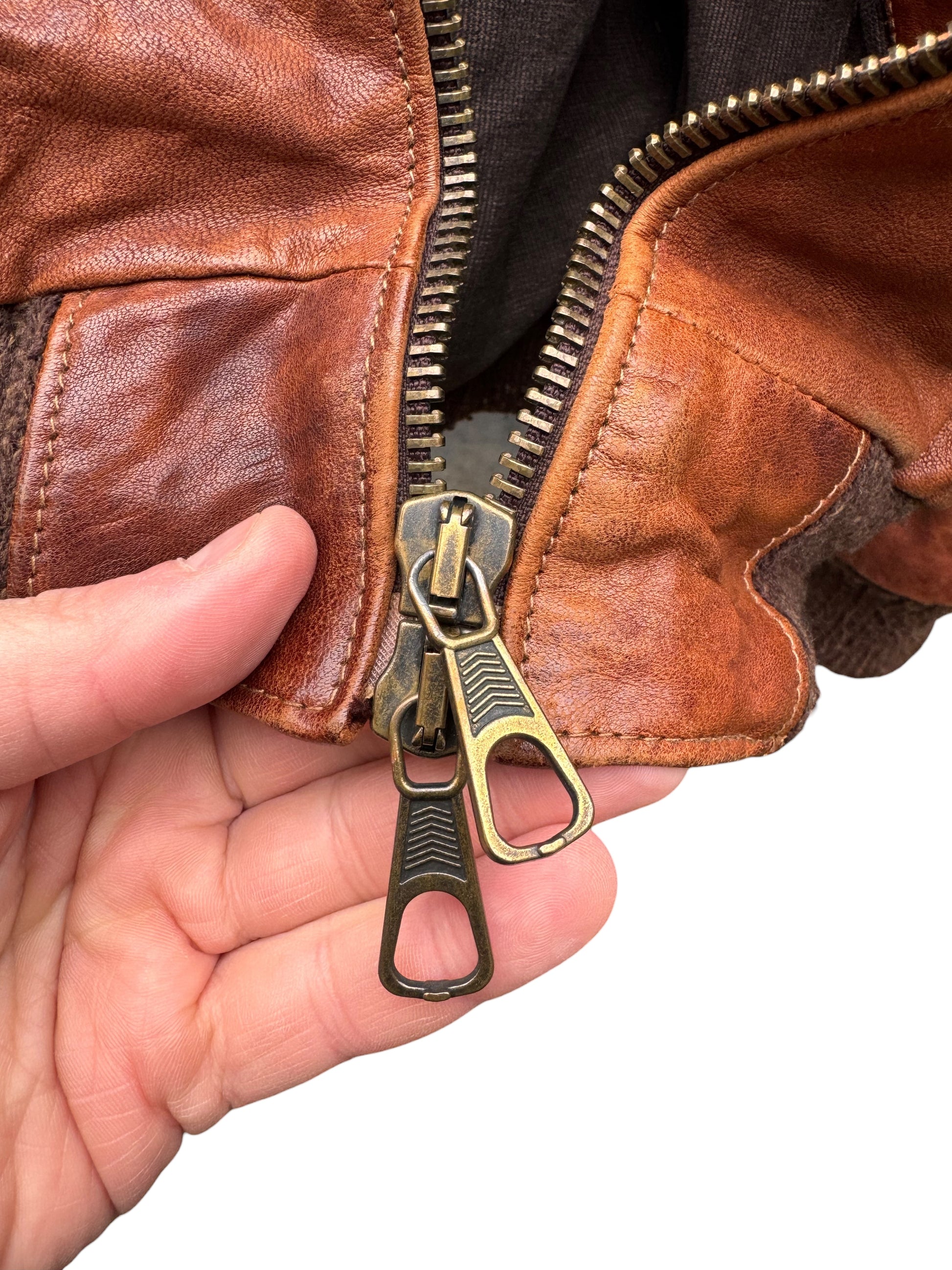 Capo vintage, caratterizzato da una pelle con naturale patina e finitura vissuta, coerente con l’età e l’utilizzo.