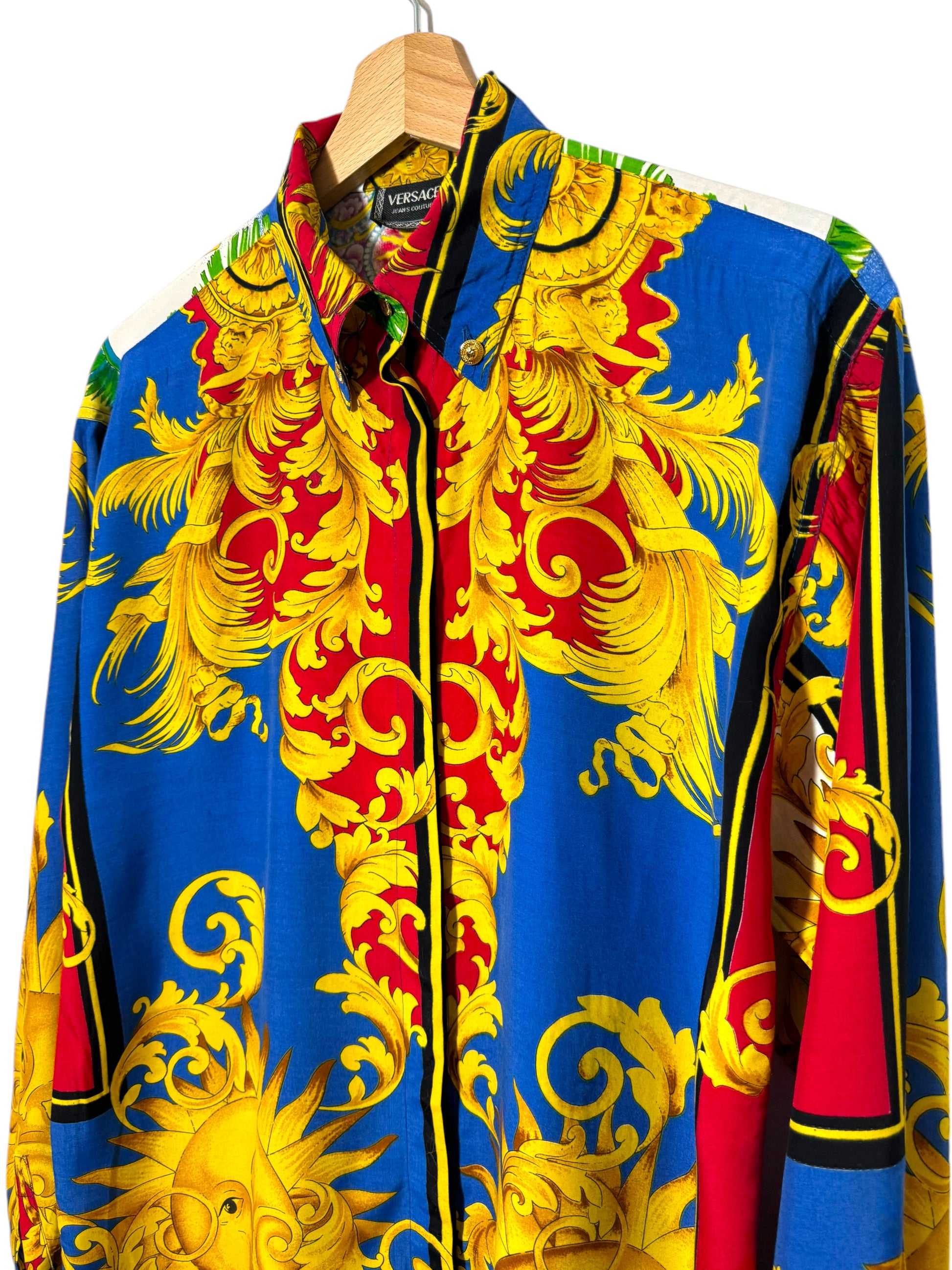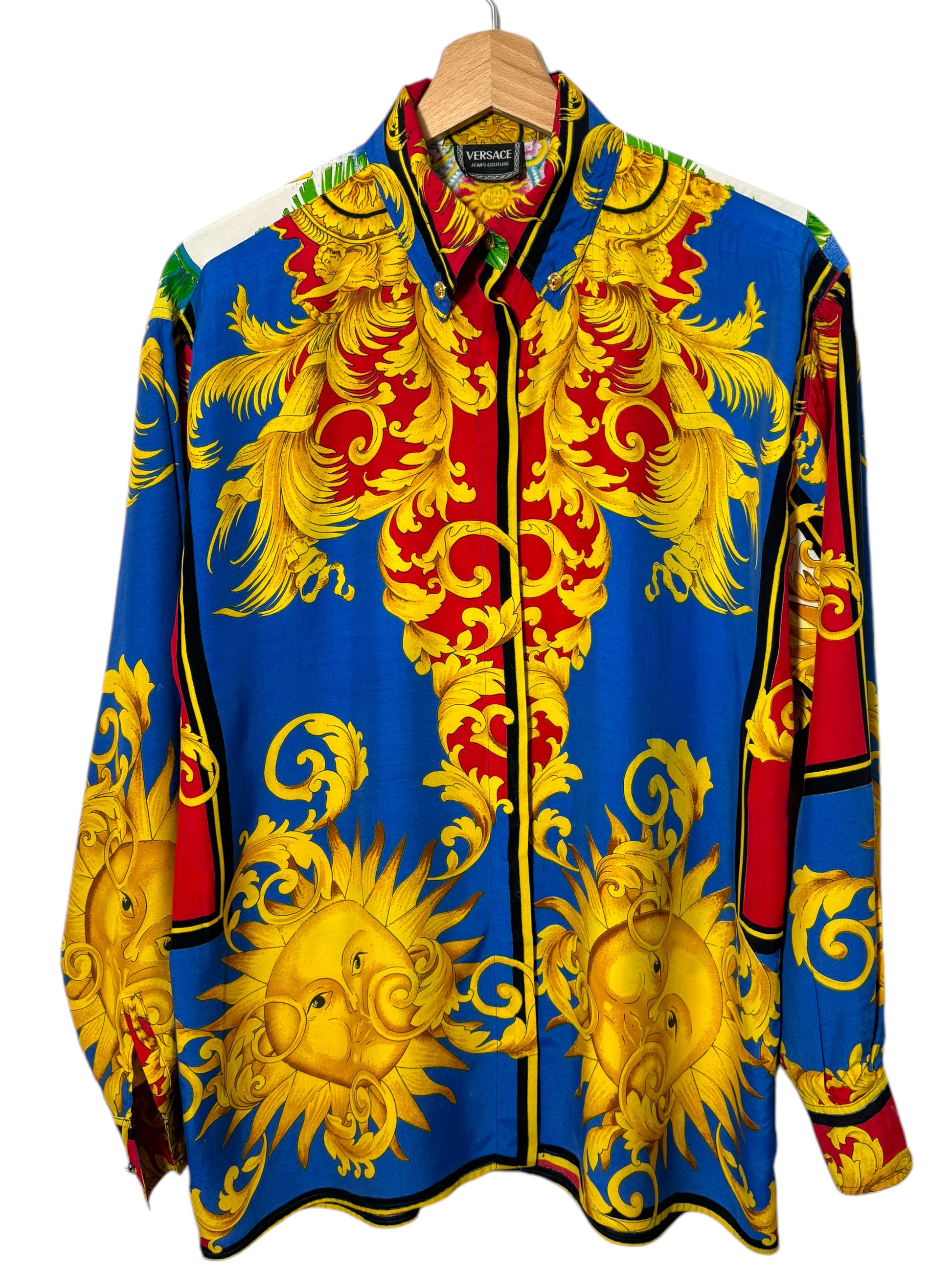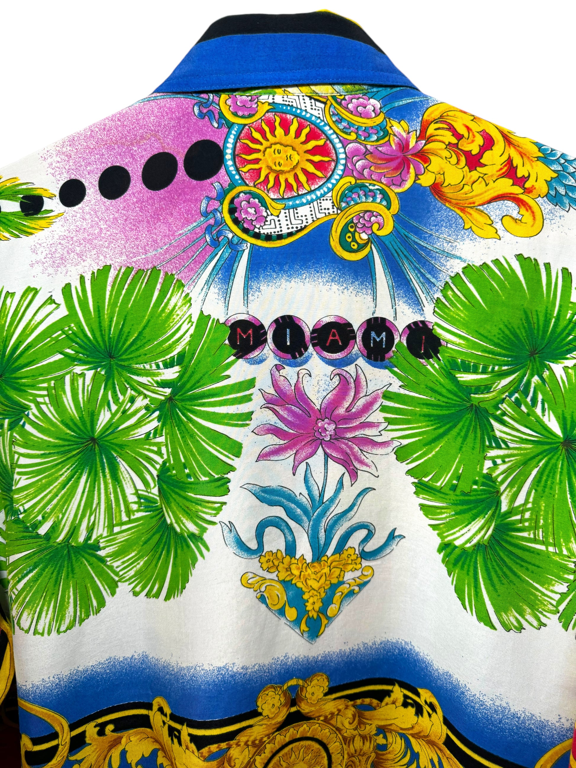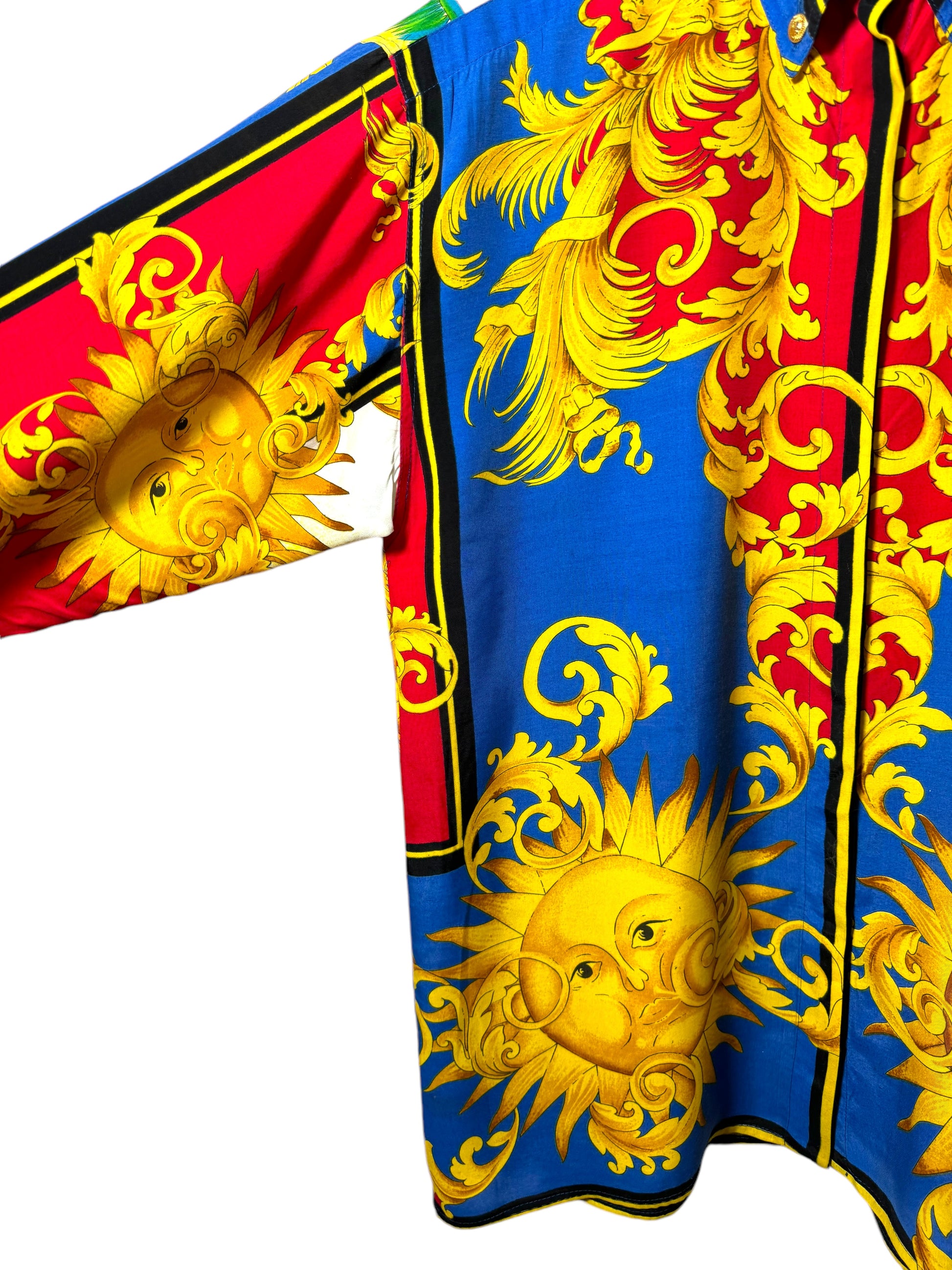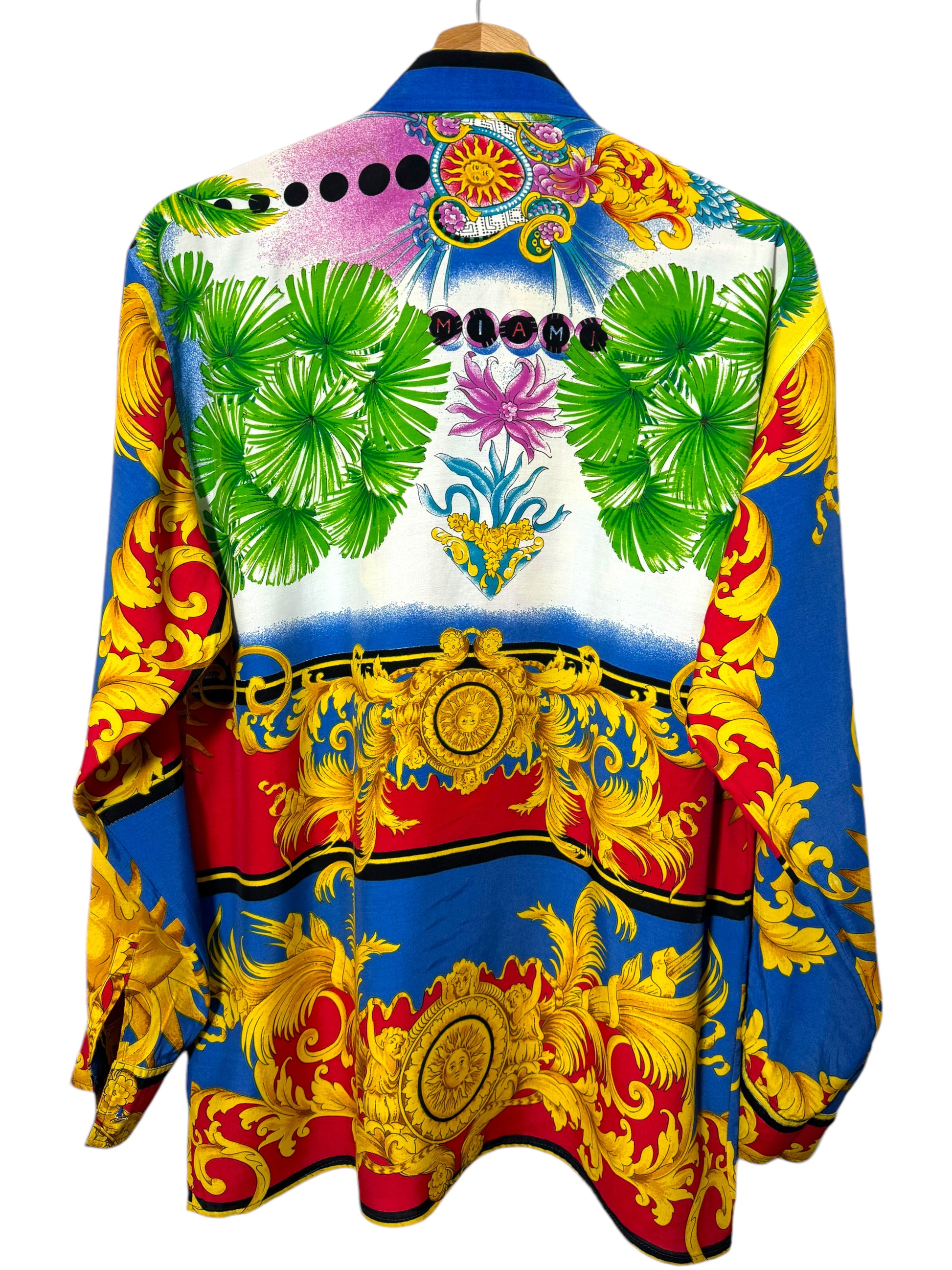 Versace camicia vintage, stampa Sole, Miami. Taglia S, vestbilità ampia. Ottimo stato.