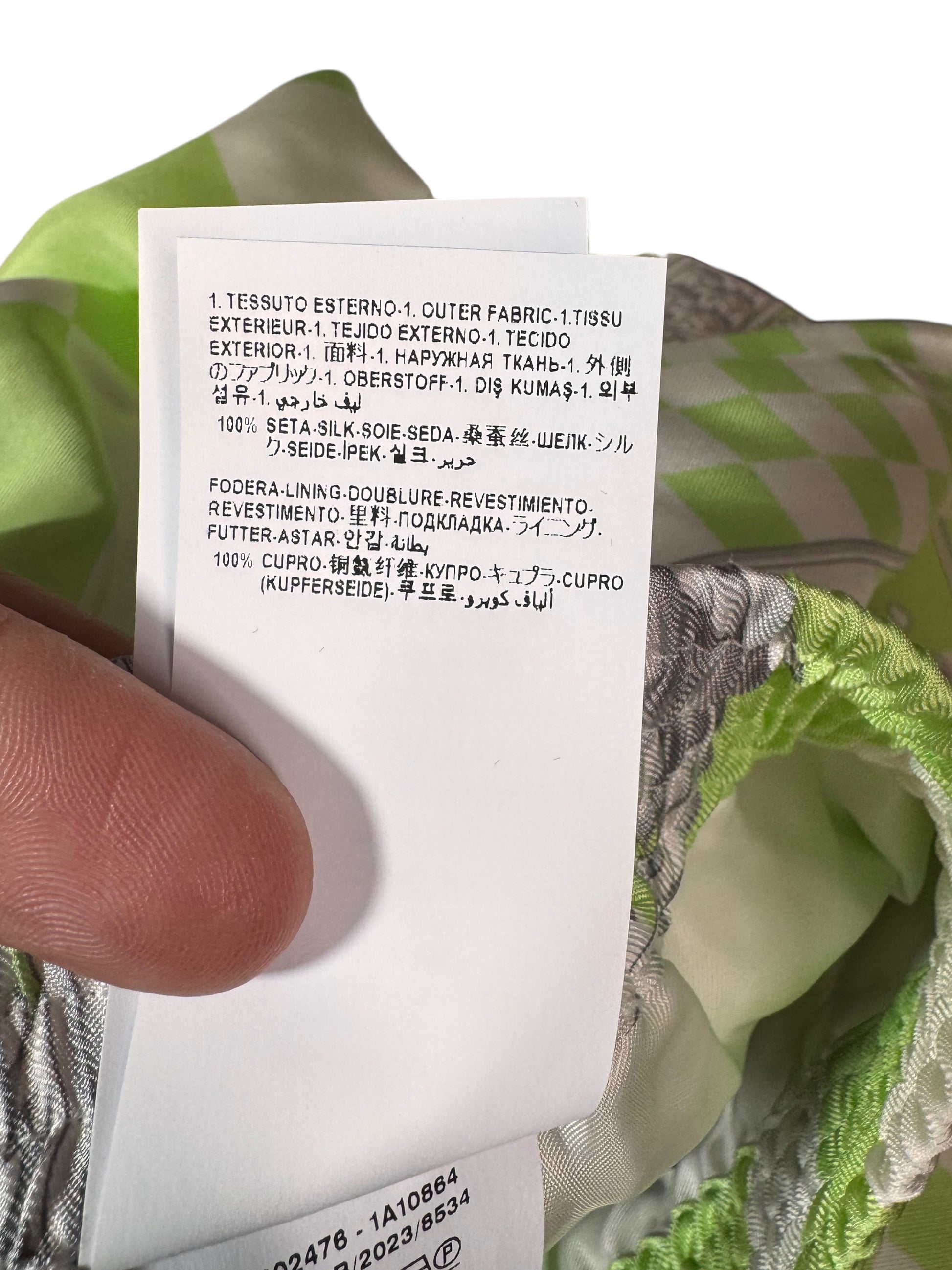 Capo nuovo, mai indossato, completo di cartellini originali Versace e tag NFC Medusa per la verifica dell’autenticità.