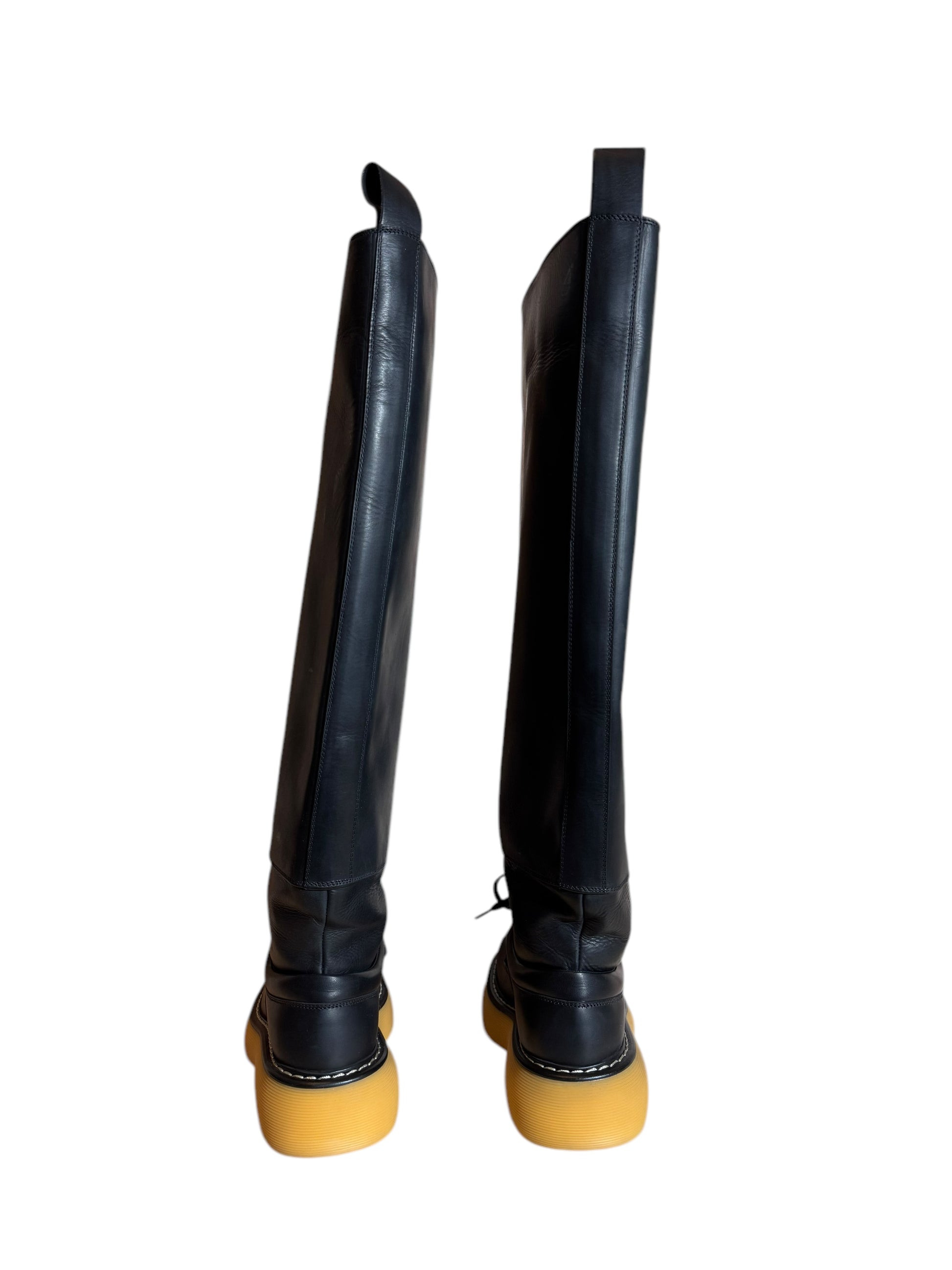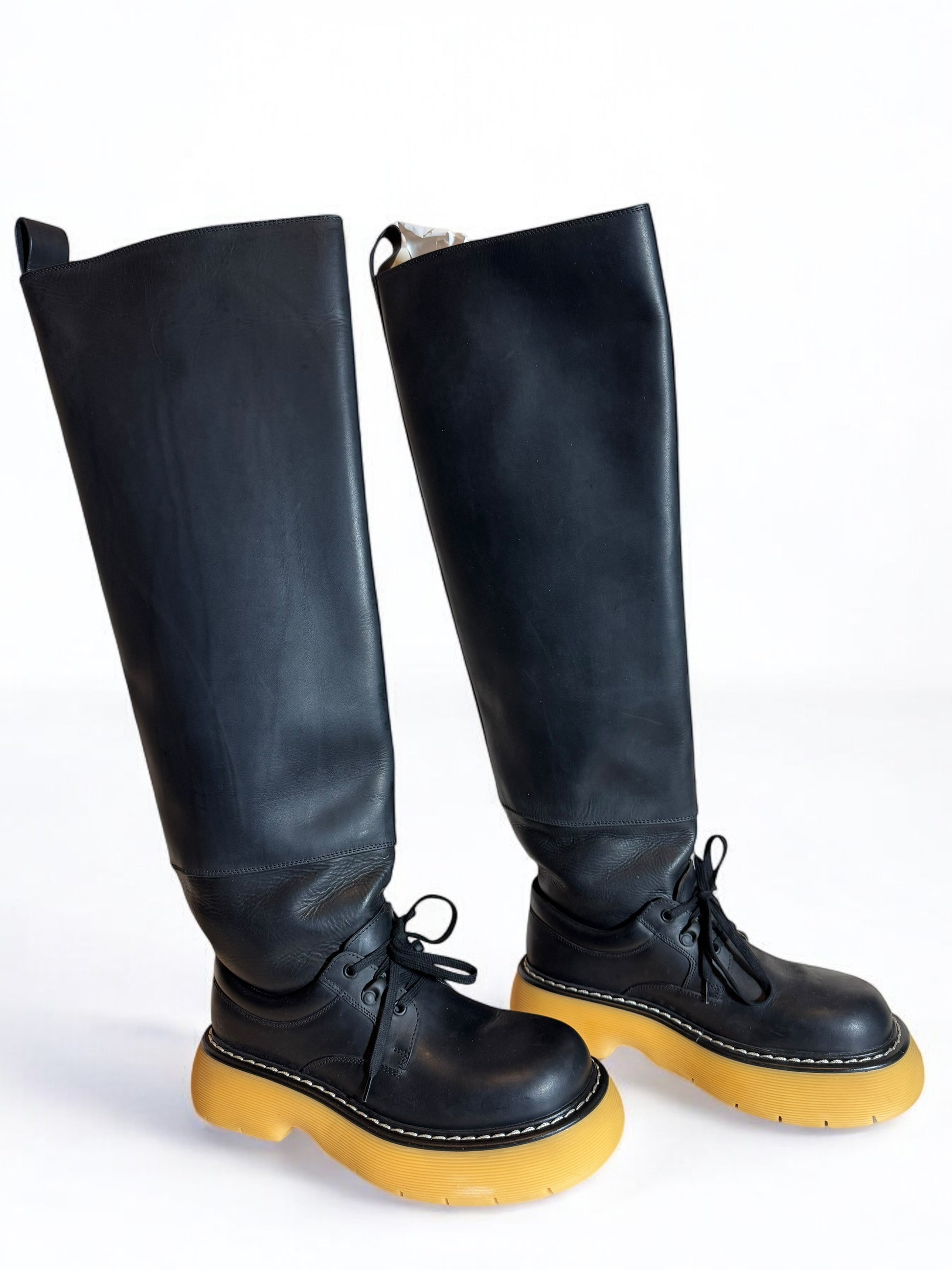Stivali Bottega Veneta in Pelle Nera con Suola Gialla – Taglia 39