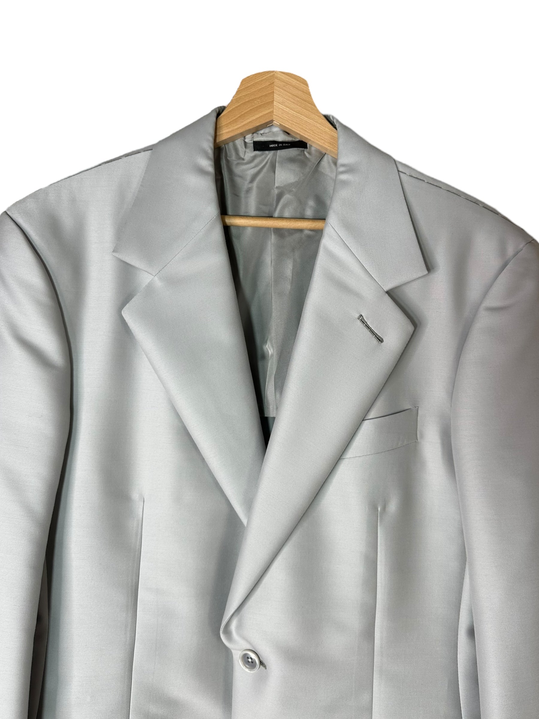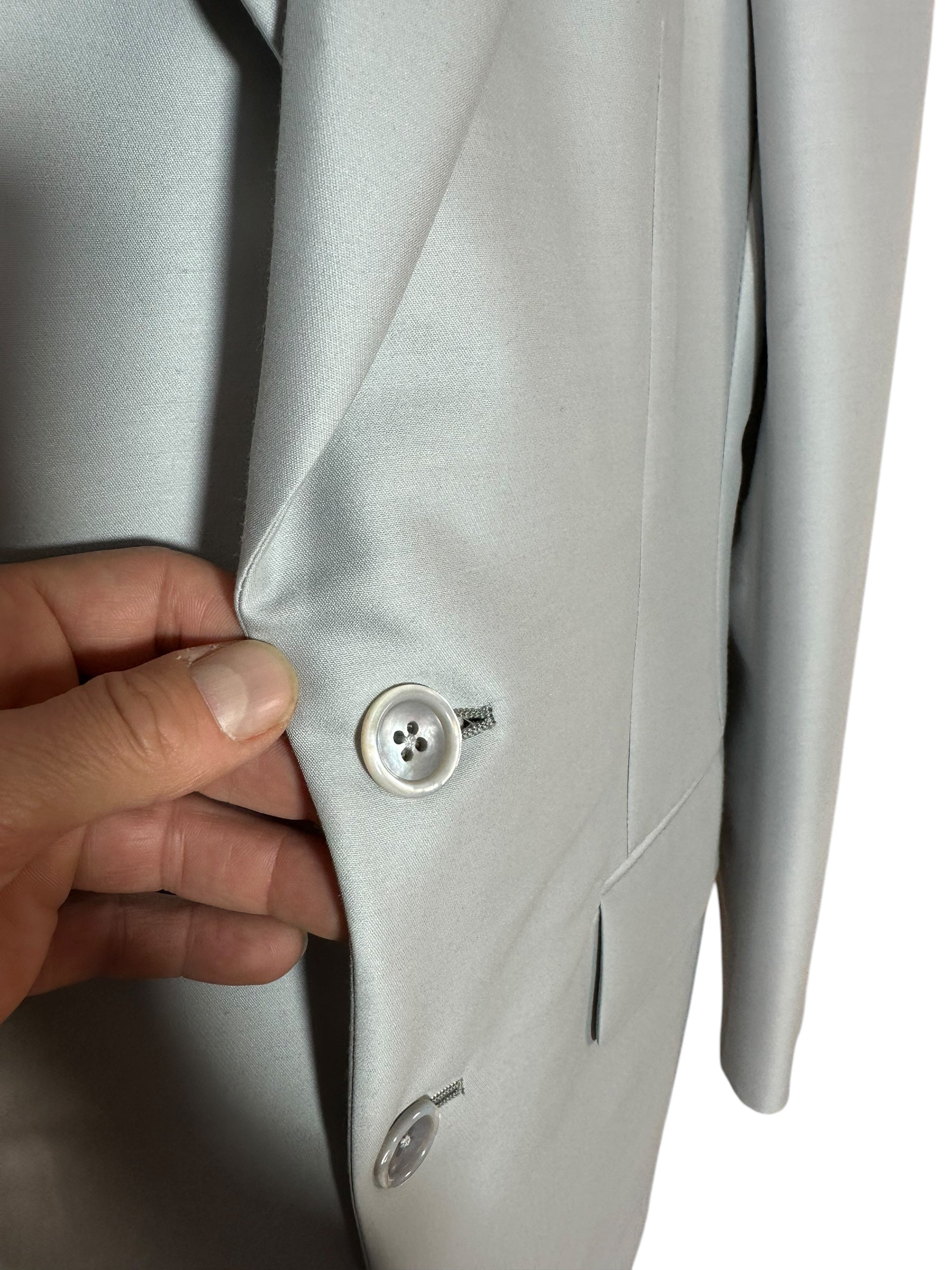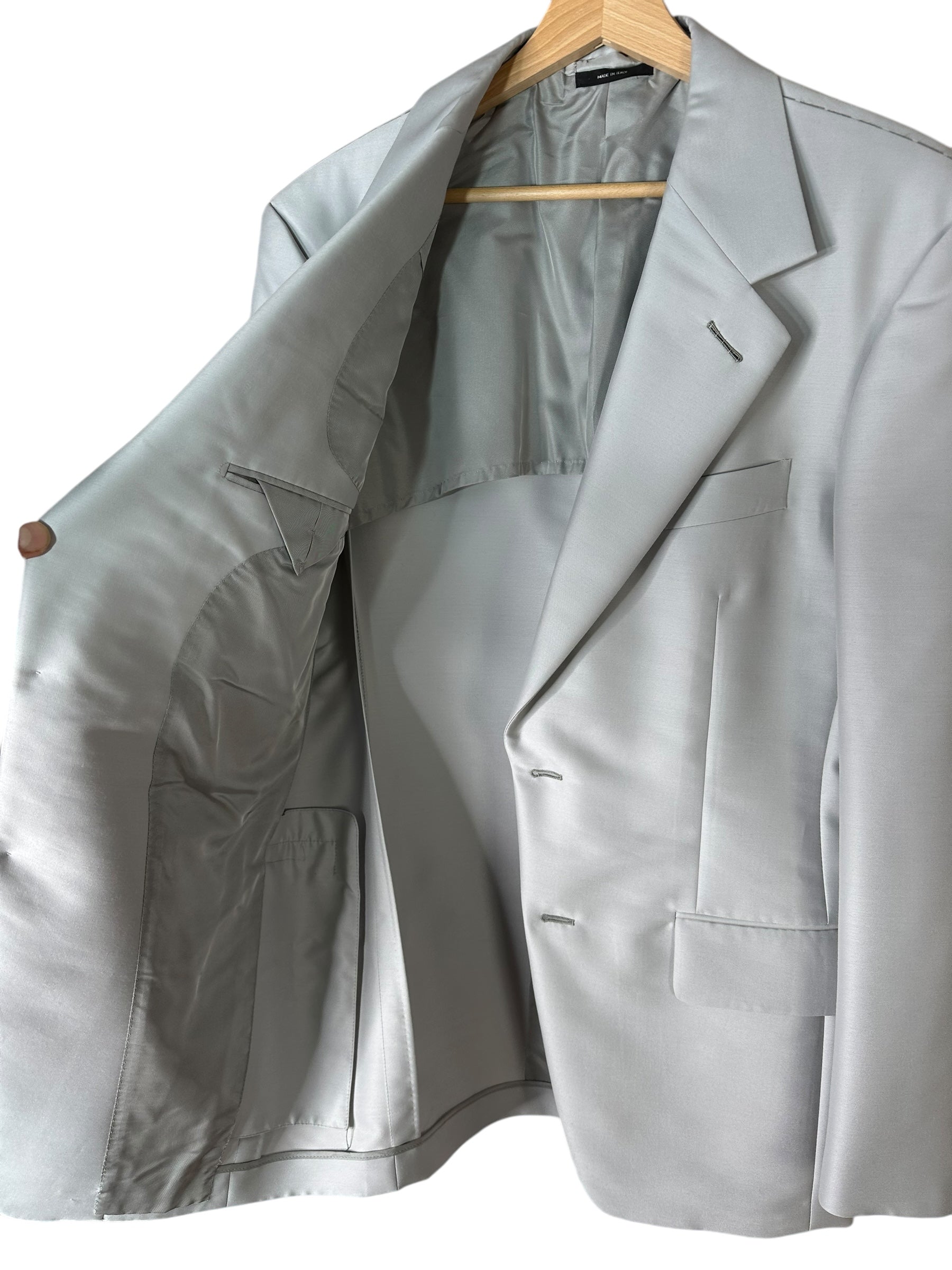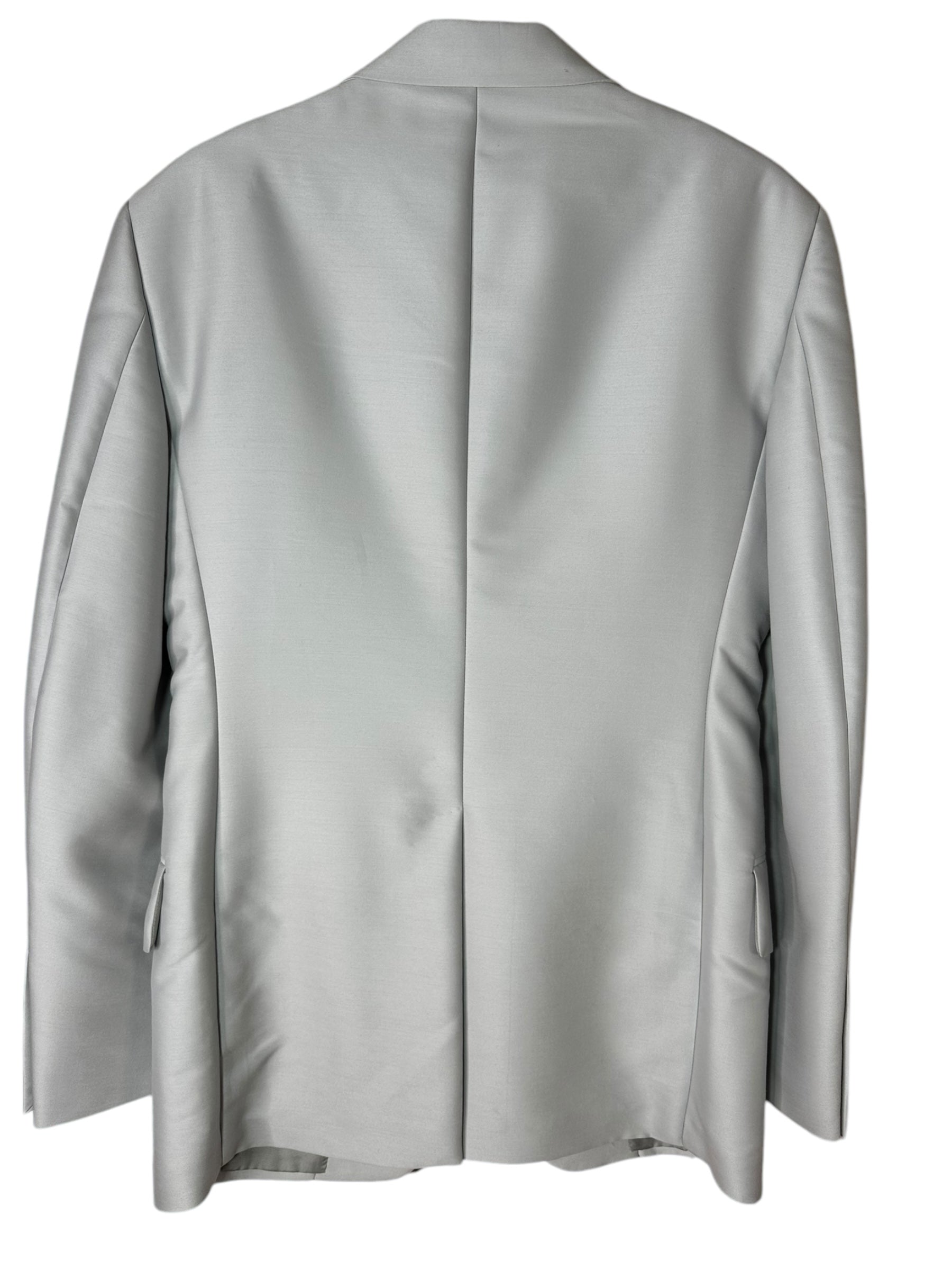 Blazer Tom Ford, modello Cooper, realizzato in un raffinato tessuto misto che unisce la morbidezza della lana alla lucentezza della seta. Un capo iconico che incarna il lusso sartoriale del brand, con dettagli strutturati e una silhouette impeccabile.