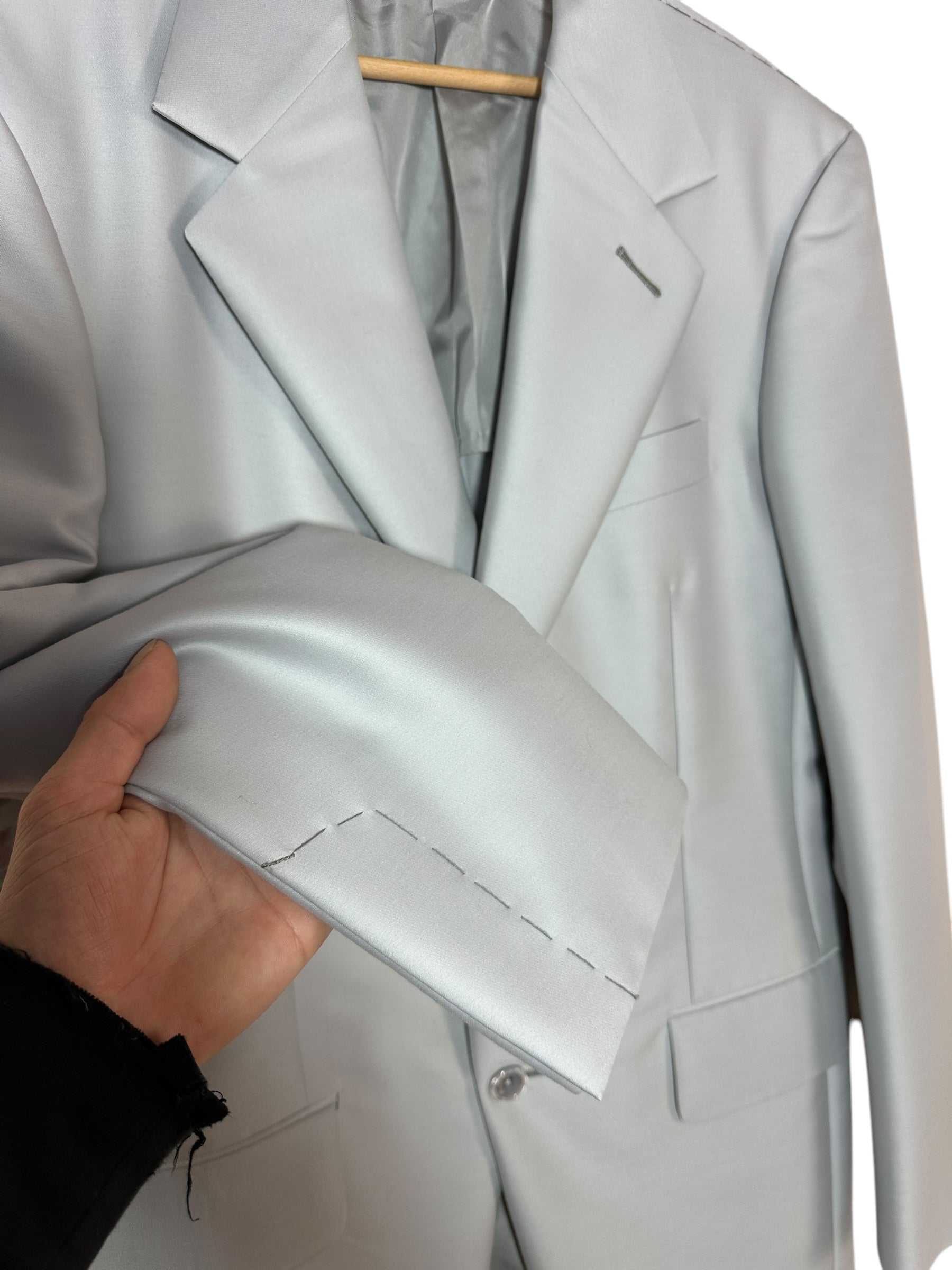 • Chiusura a due bottoni in madreperla con asola sartoriale