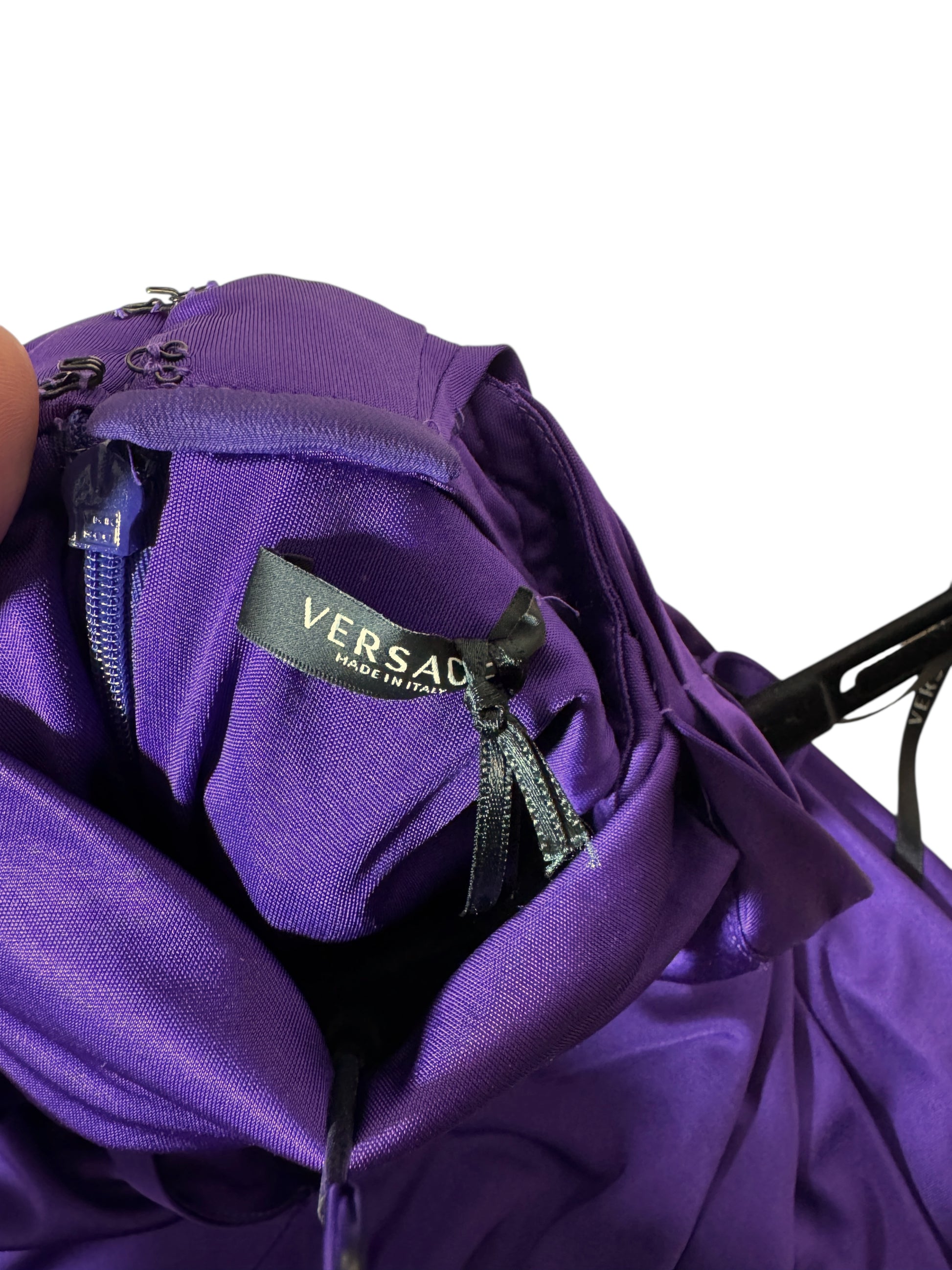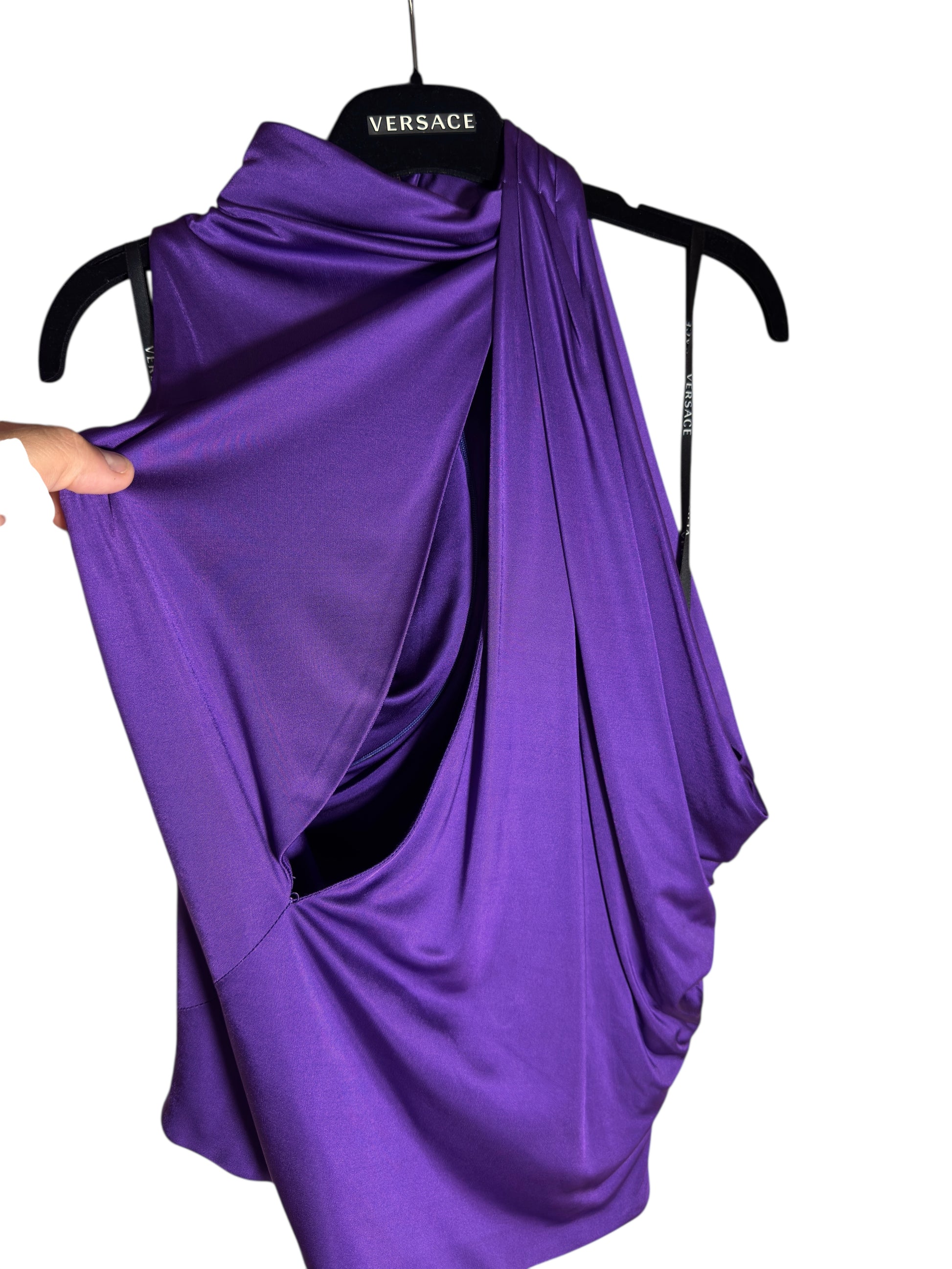 Top VERSACE Viola Drappeggiato con Scollo Profondo – Taglia 38 – Made in Italy