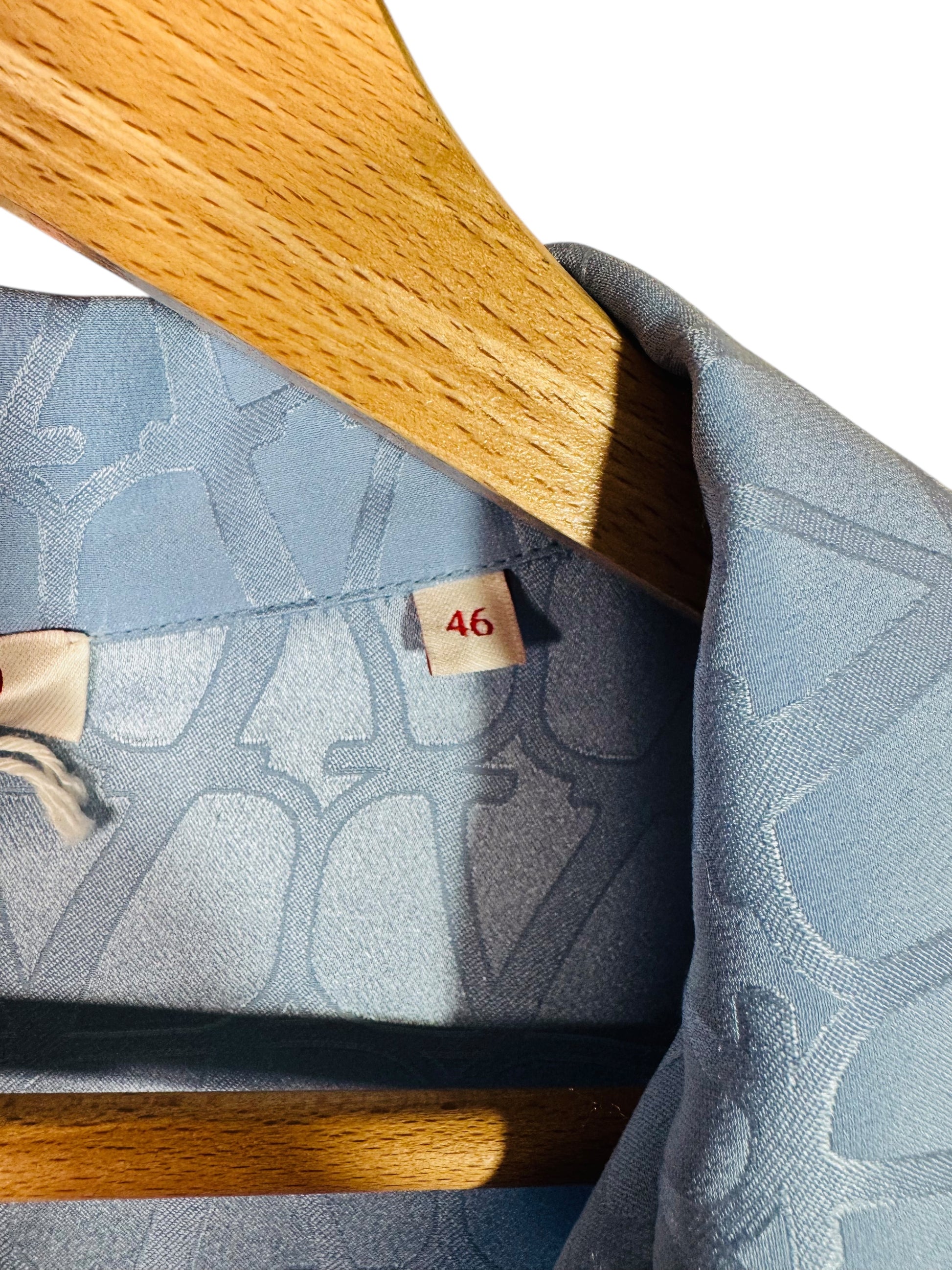Valentino camicia seta azzurra con monogramma V logo tono su tono TG 46