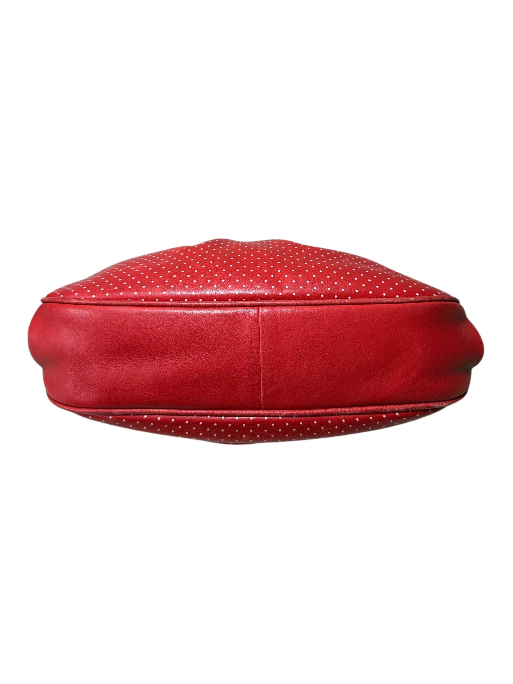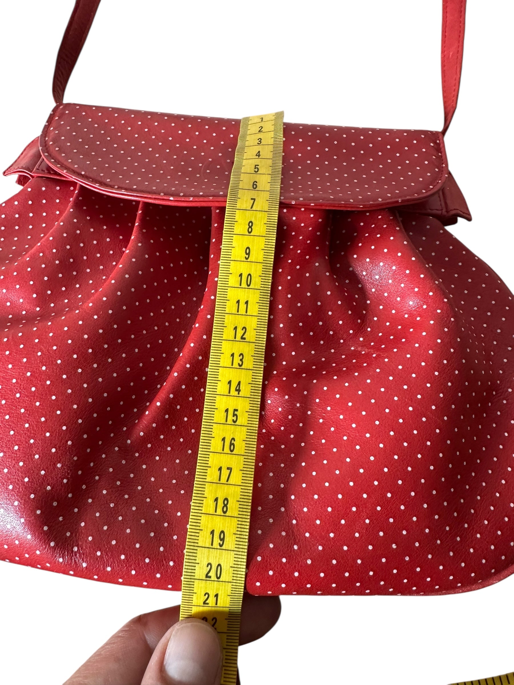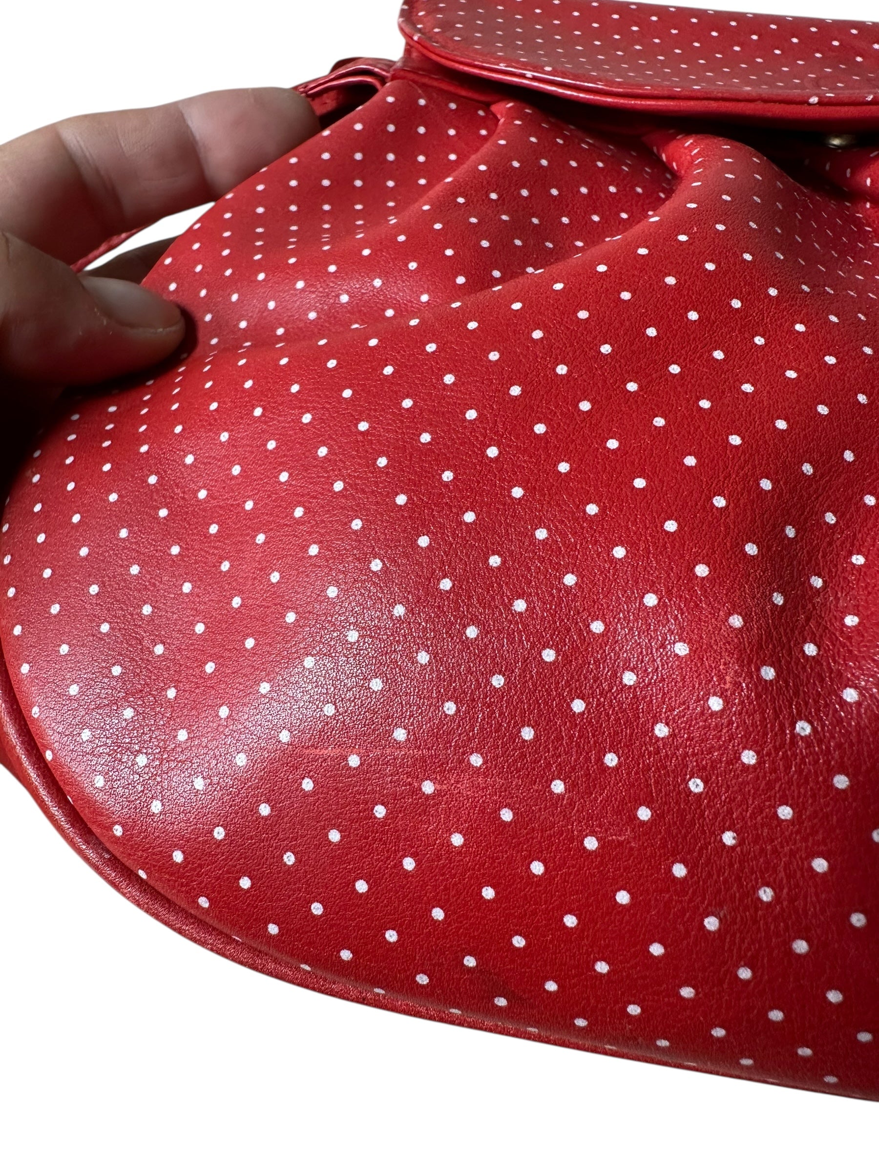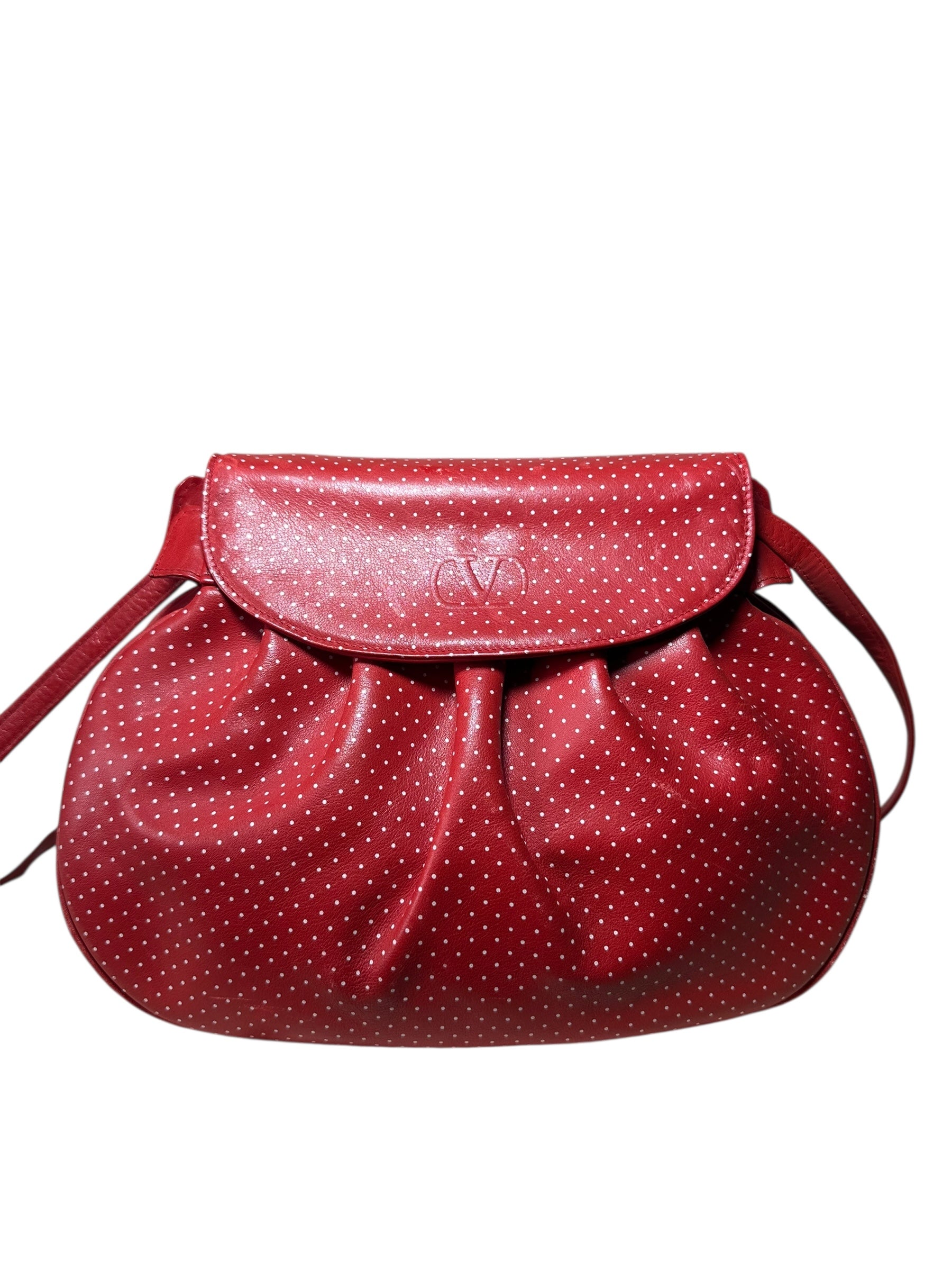 Valentino Garavani – Borsa a spalla vintage in pelle rossa con motivo a pois bianchi