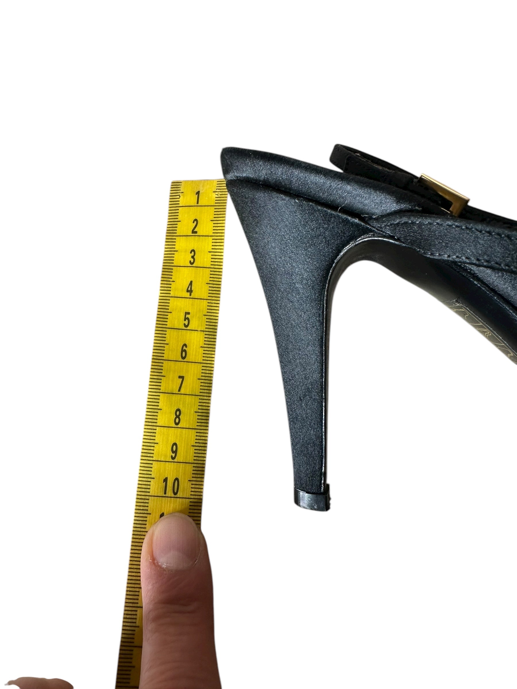 Condizioni d’uso: sandali vintage in buone condizioni generali. Presentano un difetto strutturale: un inserto nella parte anteriore, vicino alla rosa applicata, risulta danneggiato ma può essere riparato con una semplice incollatura. Per il resto, i segni di usura sono limitati alla suola, coerenti con un utilizzo precedente.