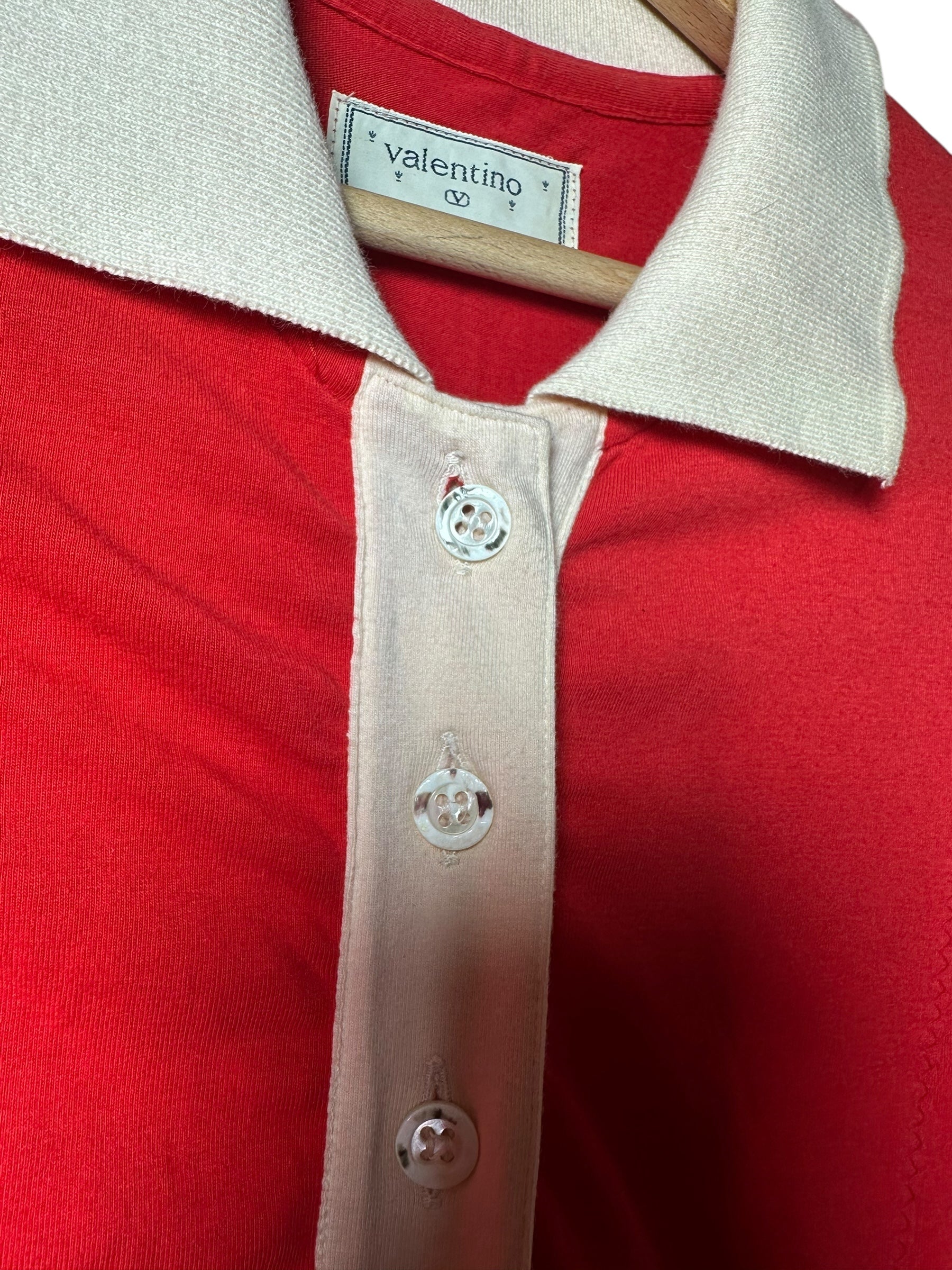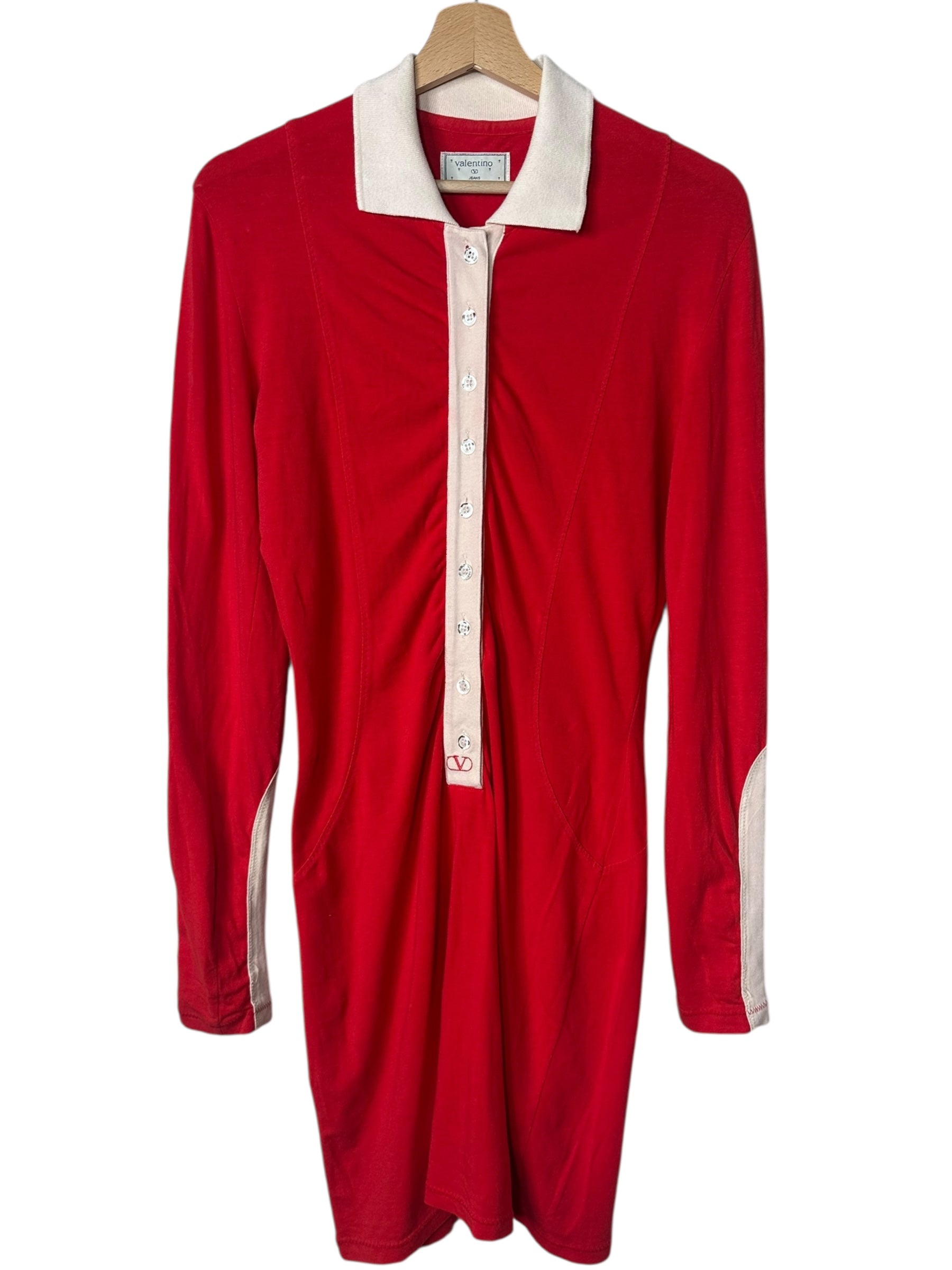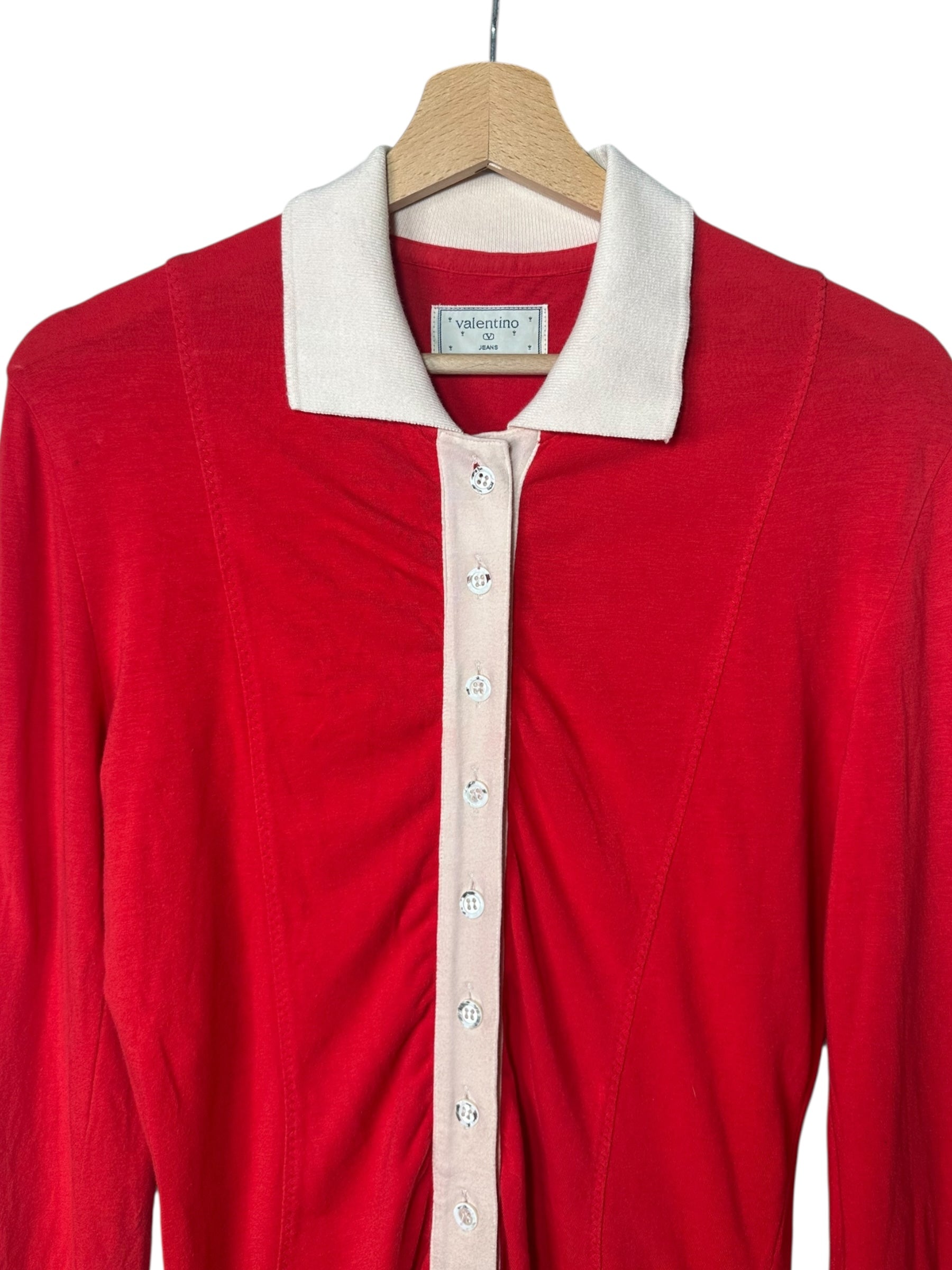 Valentino – Abito chemisier vintage rosso in cotone stretch