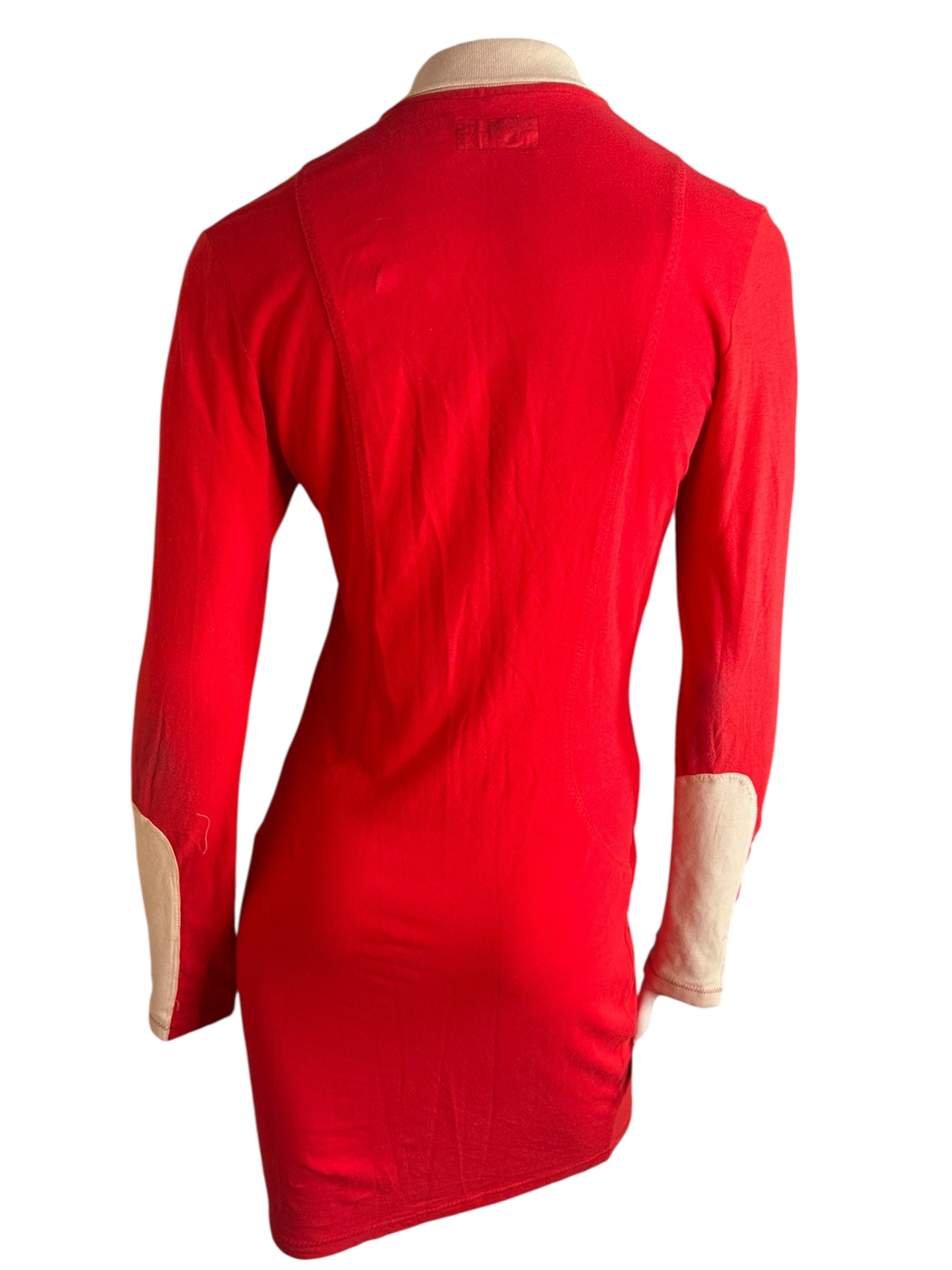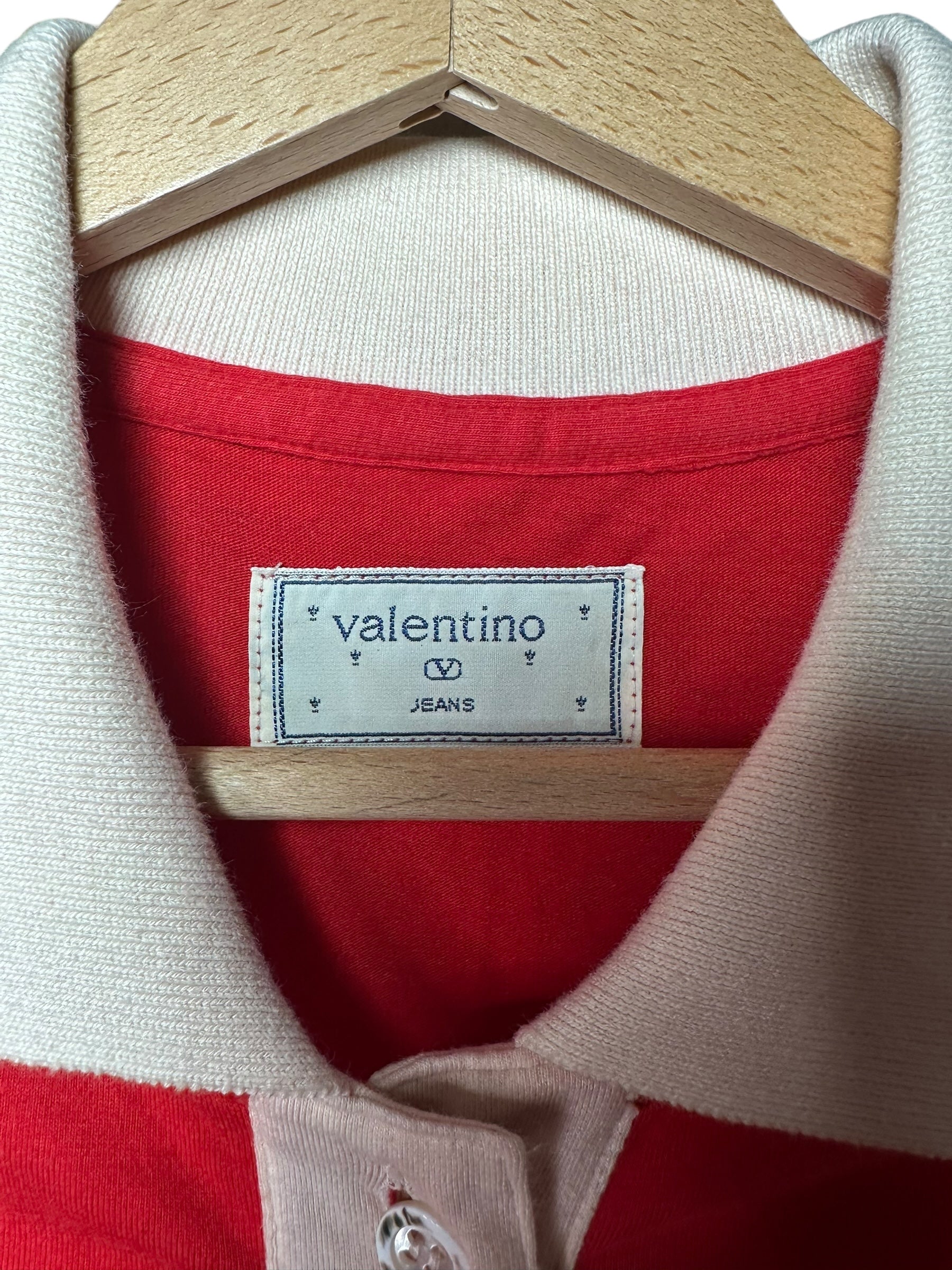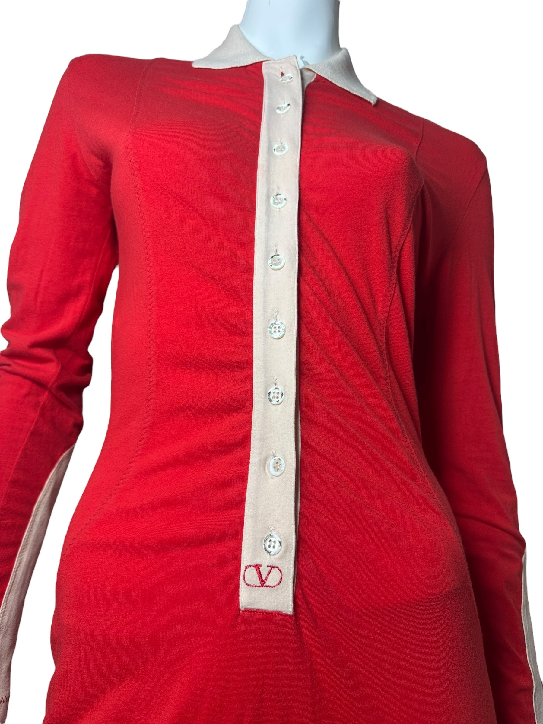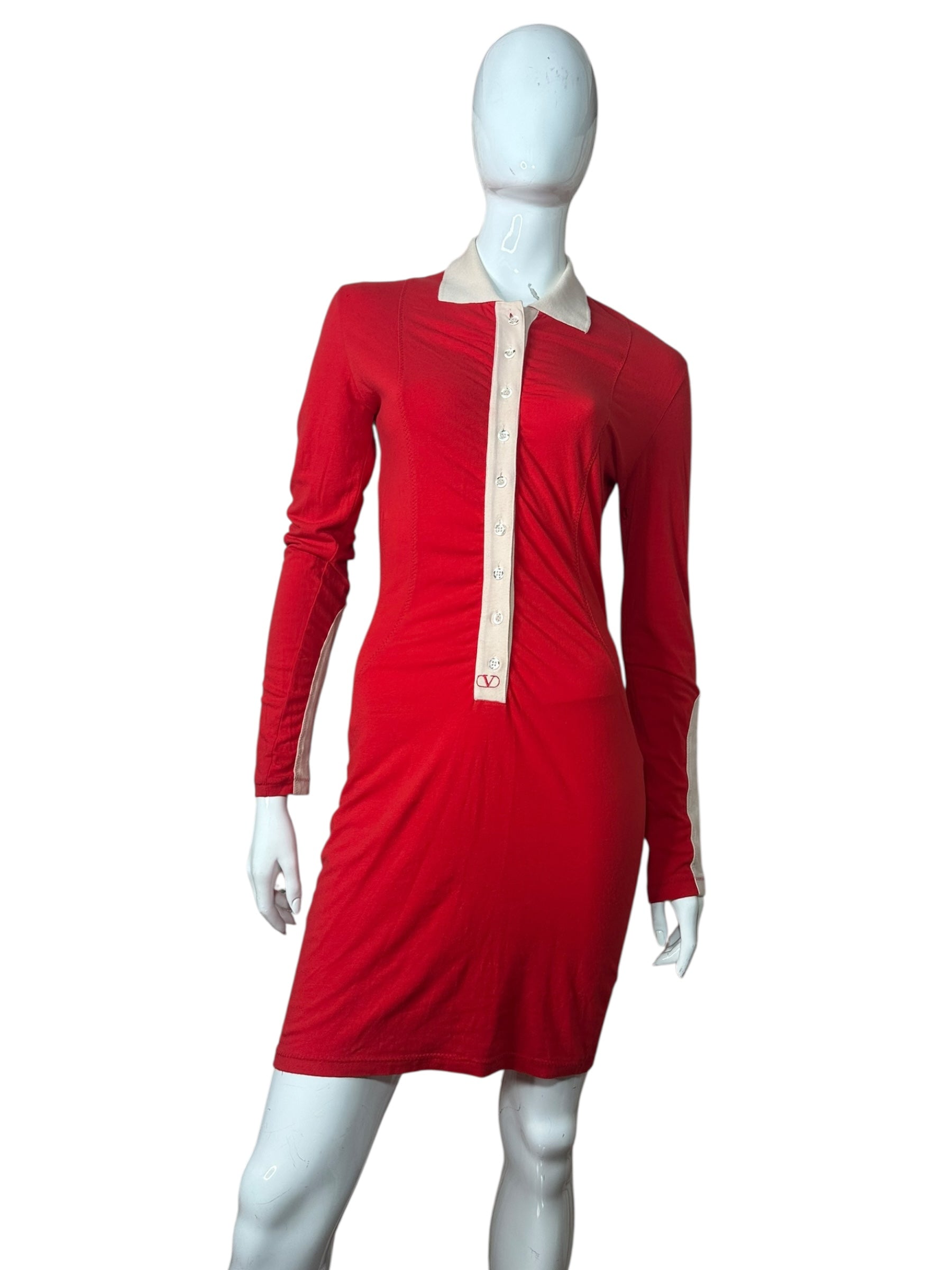 Valentino – Abito chemisier vintage rosso in cotone stretch