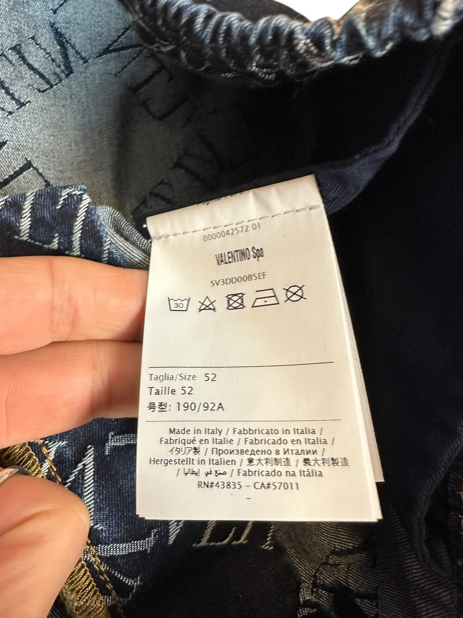 La vita elasticizzata con coulisse regolabile assicura una vestibilità comoda e personalizzabile, mentre gli orli elasticizzati donano un tocco sportivo e contemporaneo. Le cuciture a contrasto arricchiscono il design, conferendo un aspetto ricercato e di alta qualità. Riporta la taglia 52 Italiana.