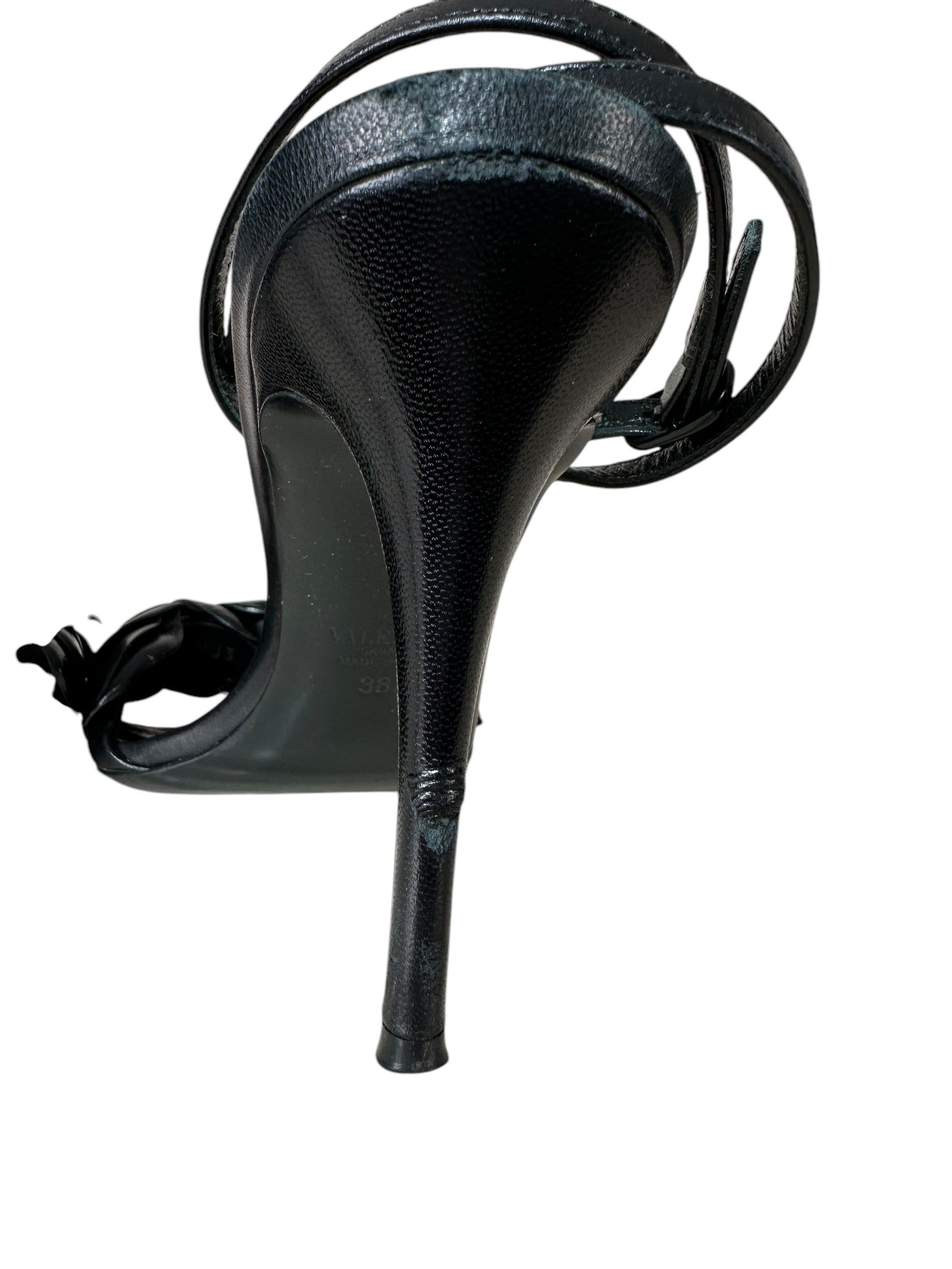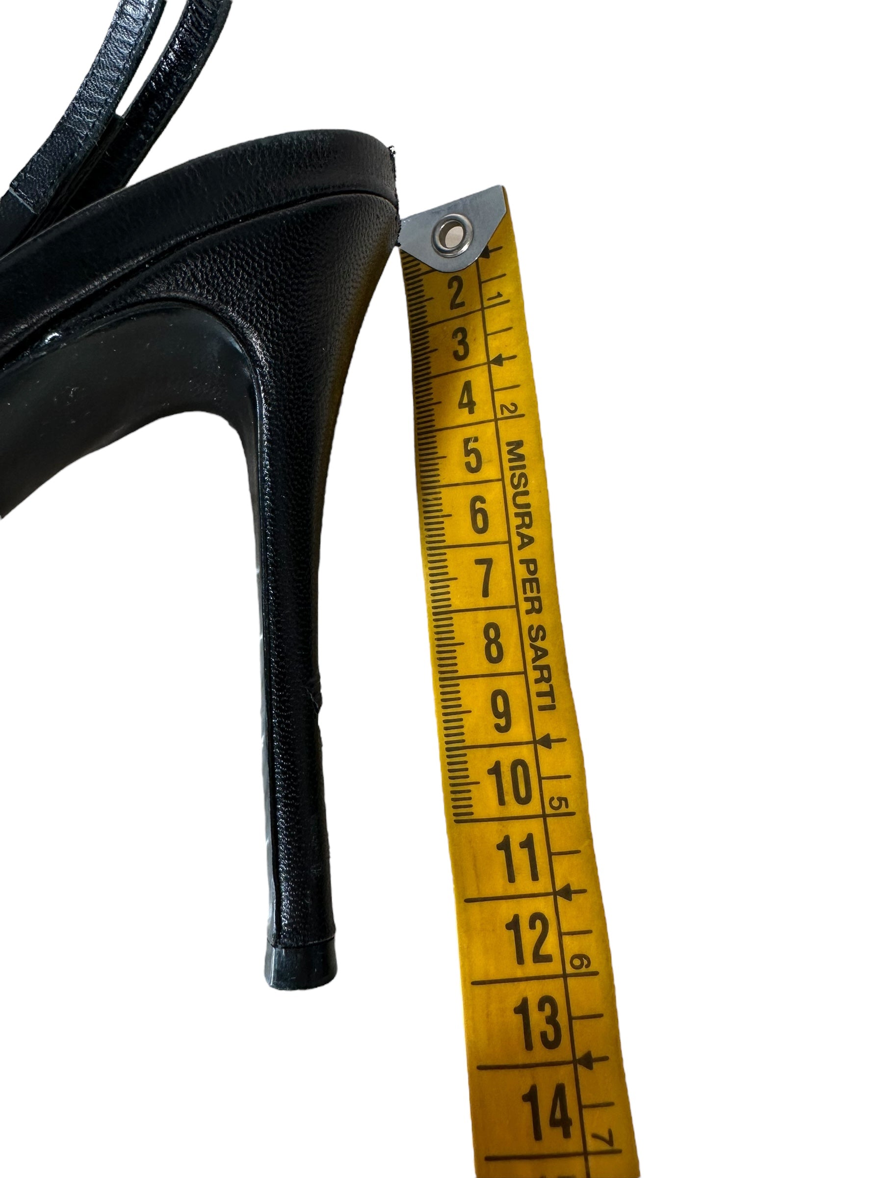 • Tacco: Stiletto rivestito in pelle, alto circa 10,5 cm, slanciato e femminile.