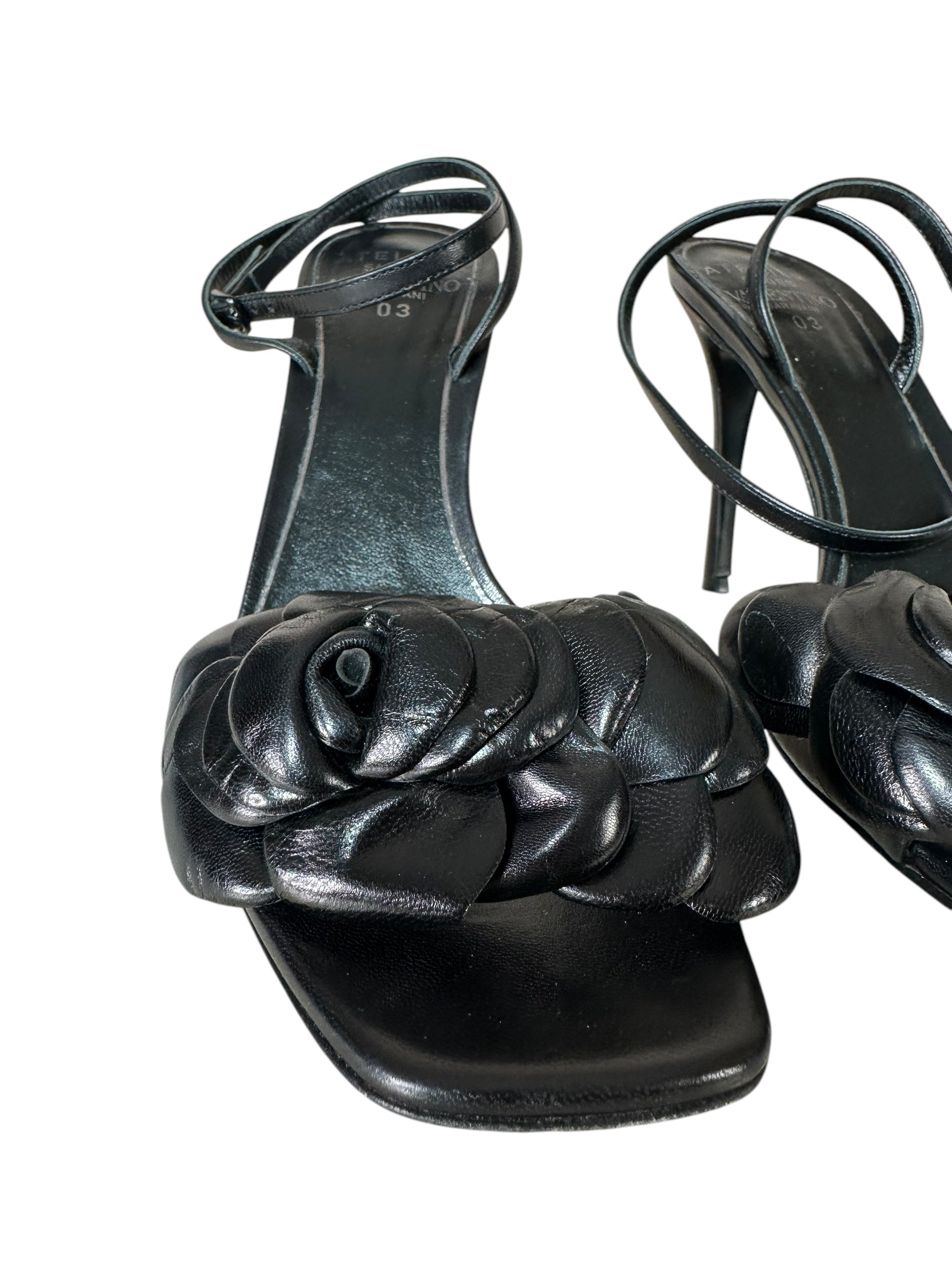 VALENTINO GARAVANI - Sandali Atelier Shoes 03 in Pelle Nera con Fiore