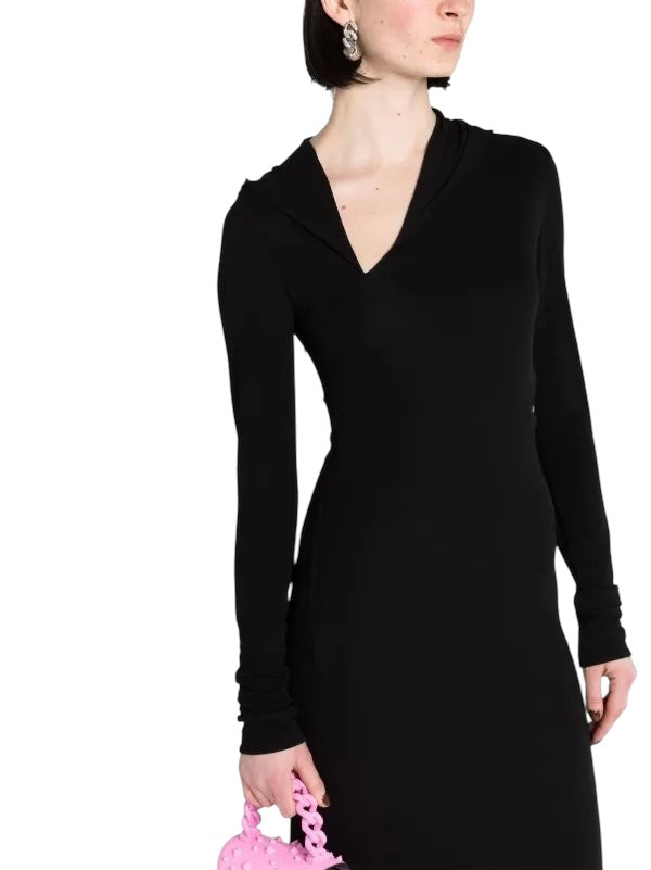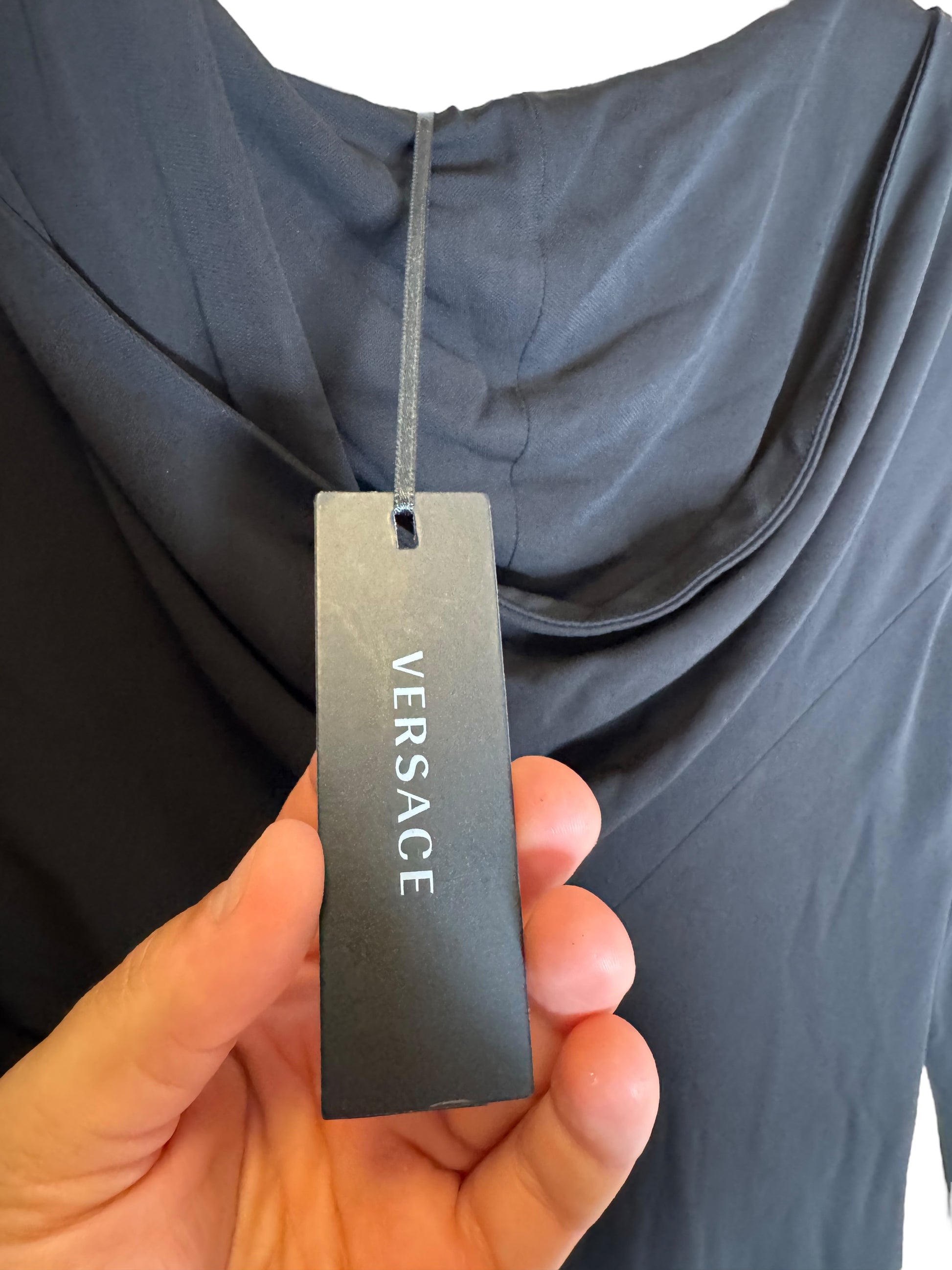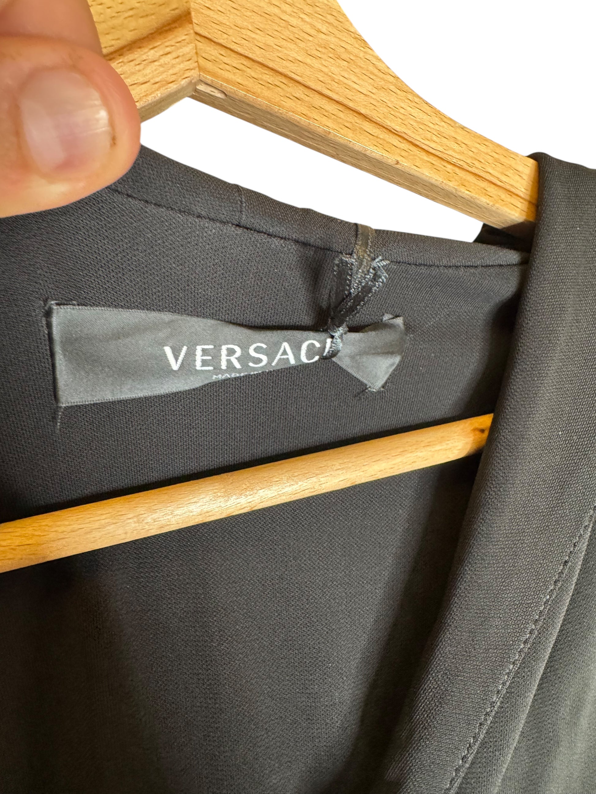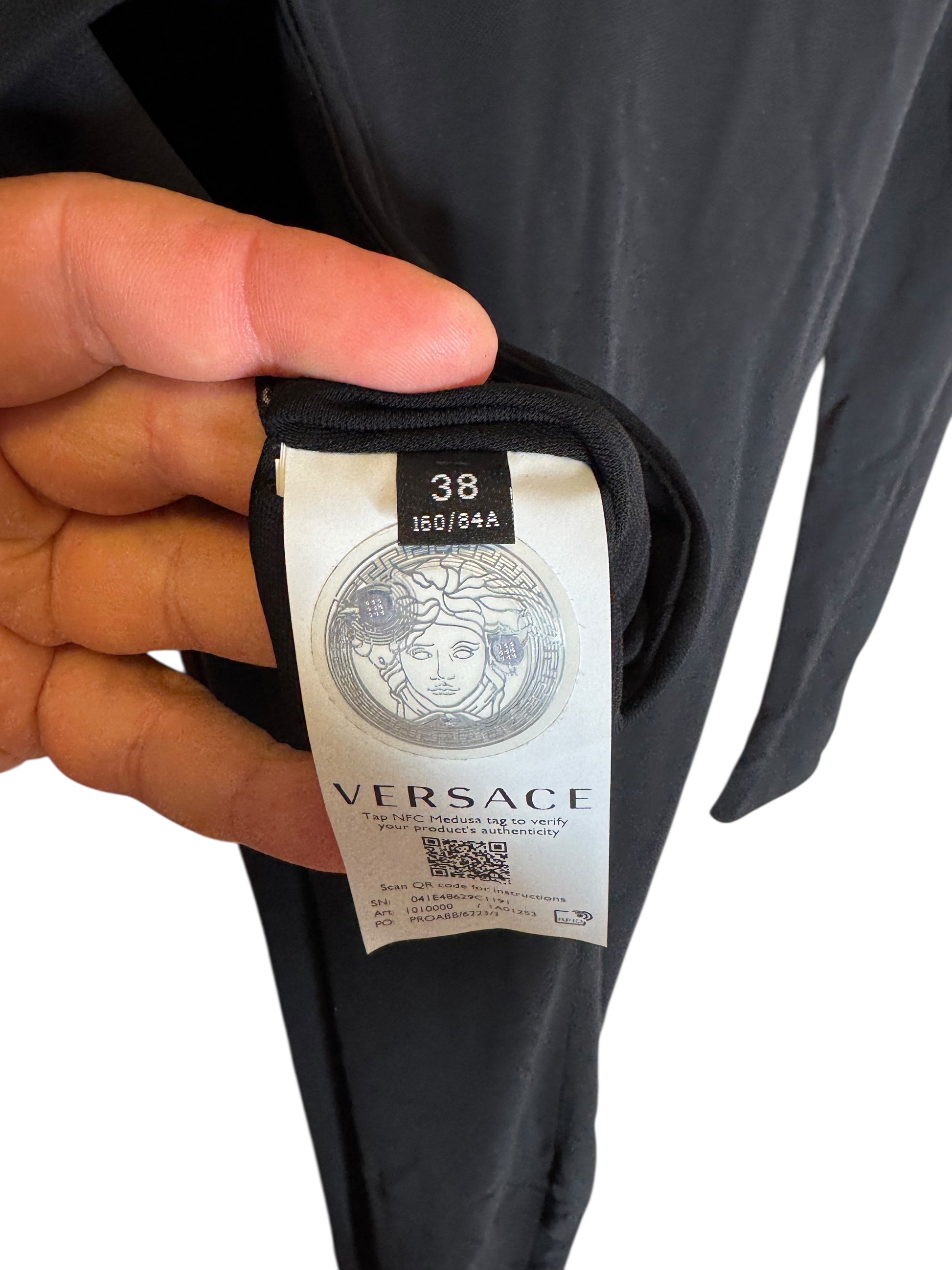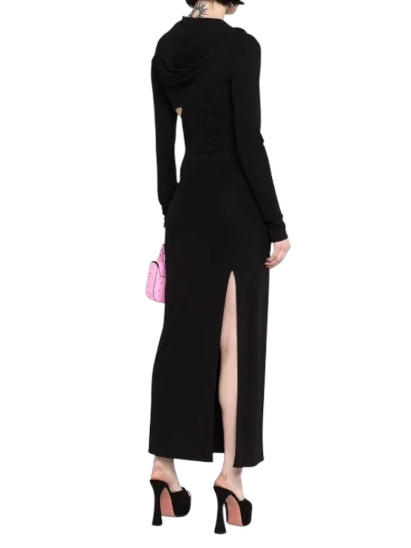 Versace Abito Lungo Nero con Cappuccio e Cut-Out Laterale - Taglia IT 38 - Made in Italy
