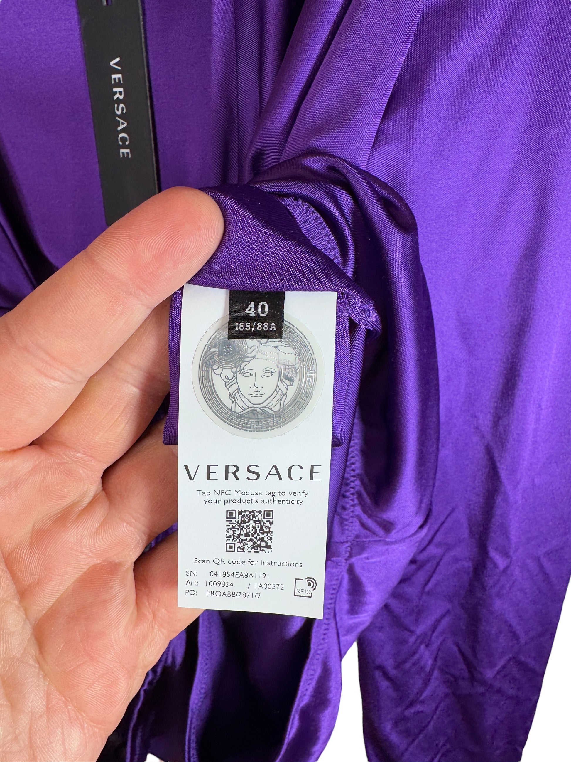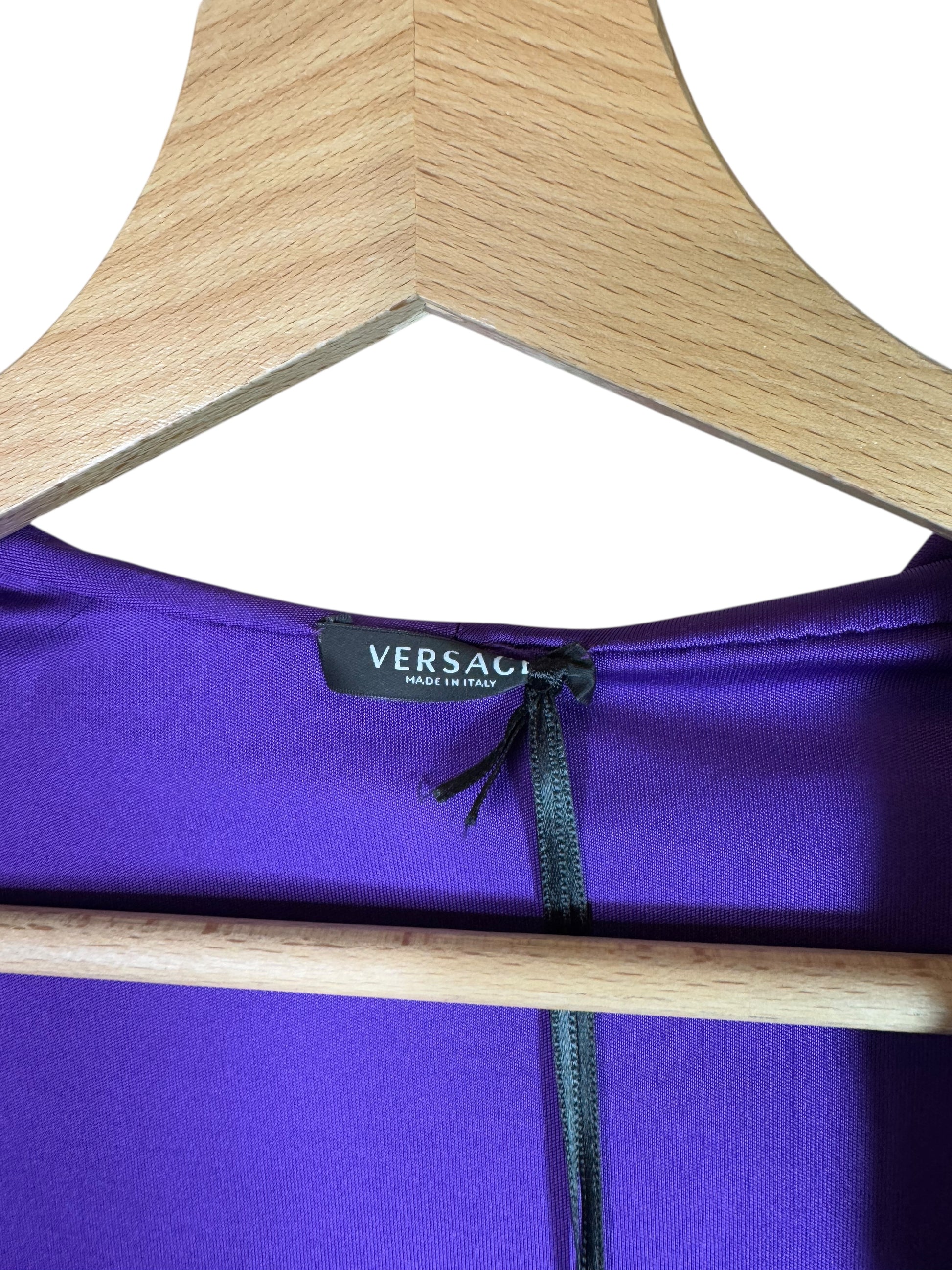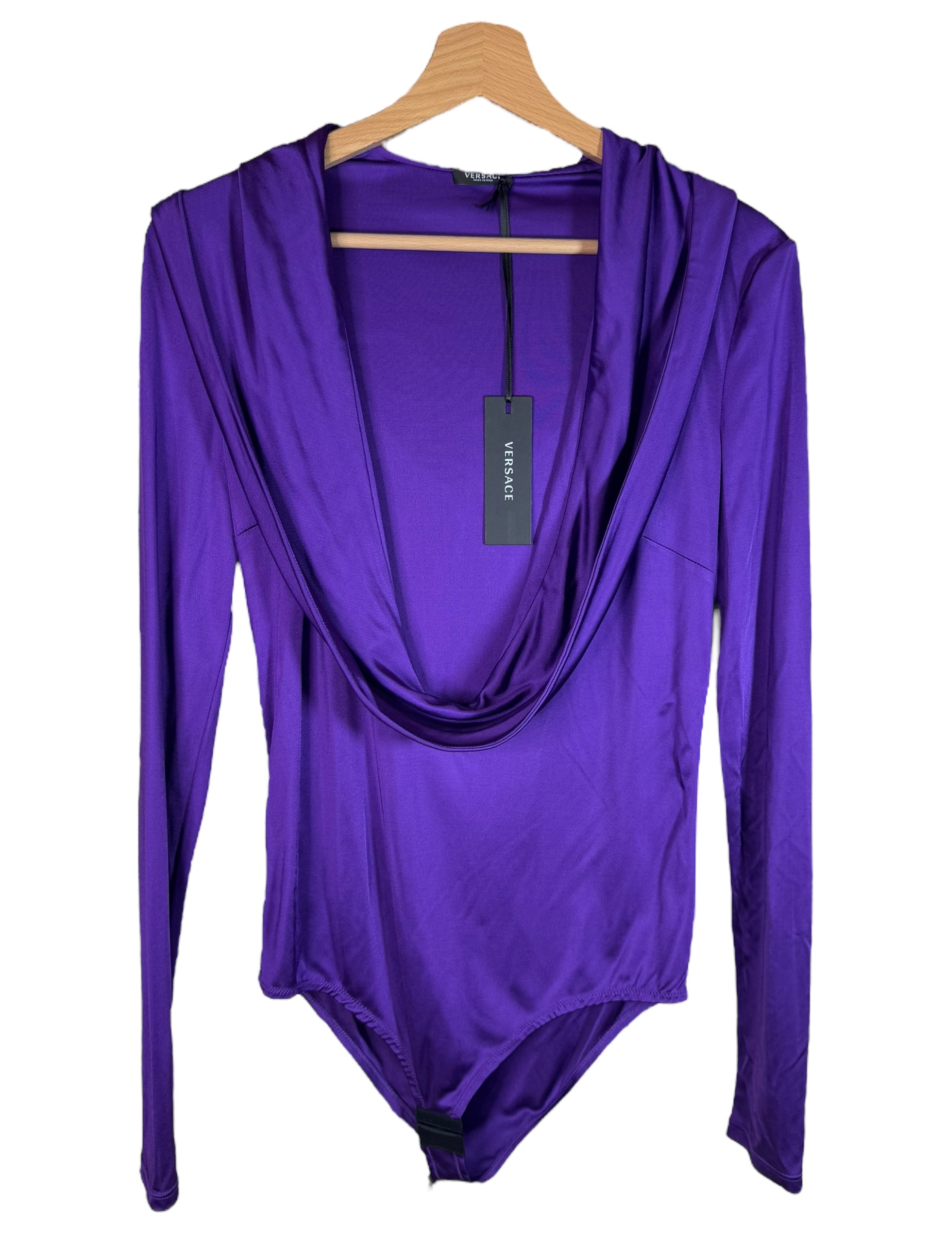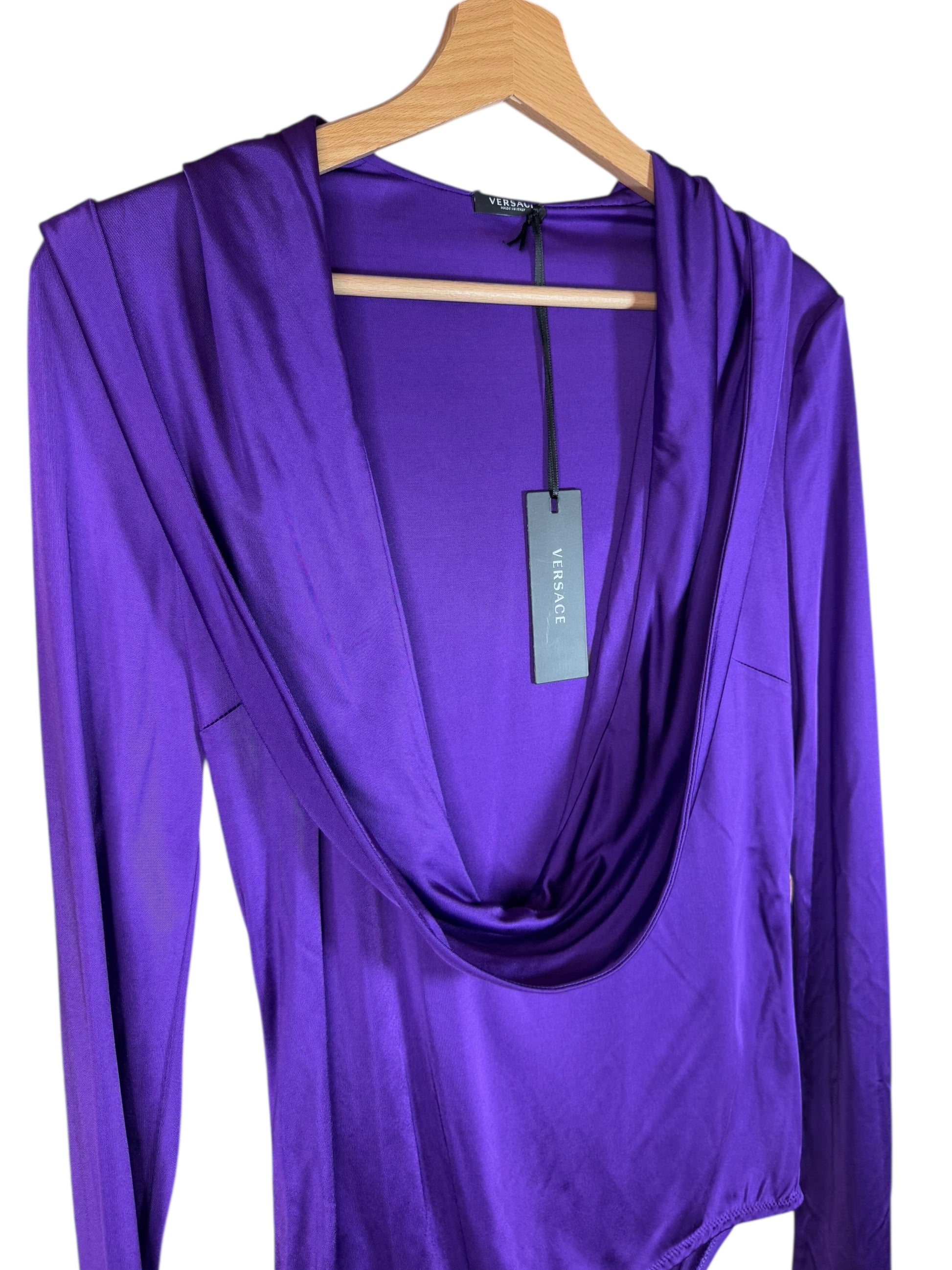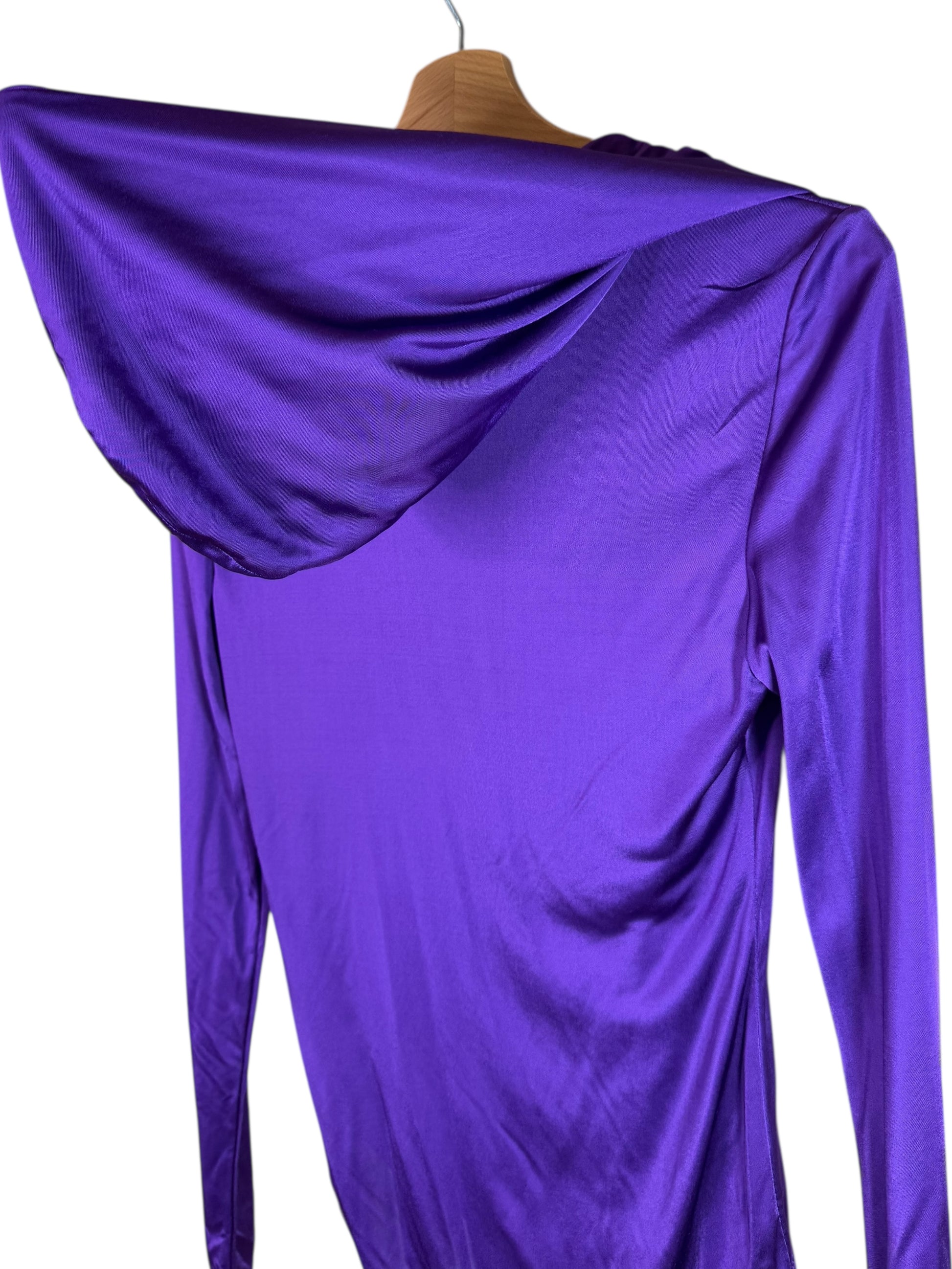 Versace Body Lilla con Cappuccio e Scollo Profondo Drappeggiato - Taglia 40