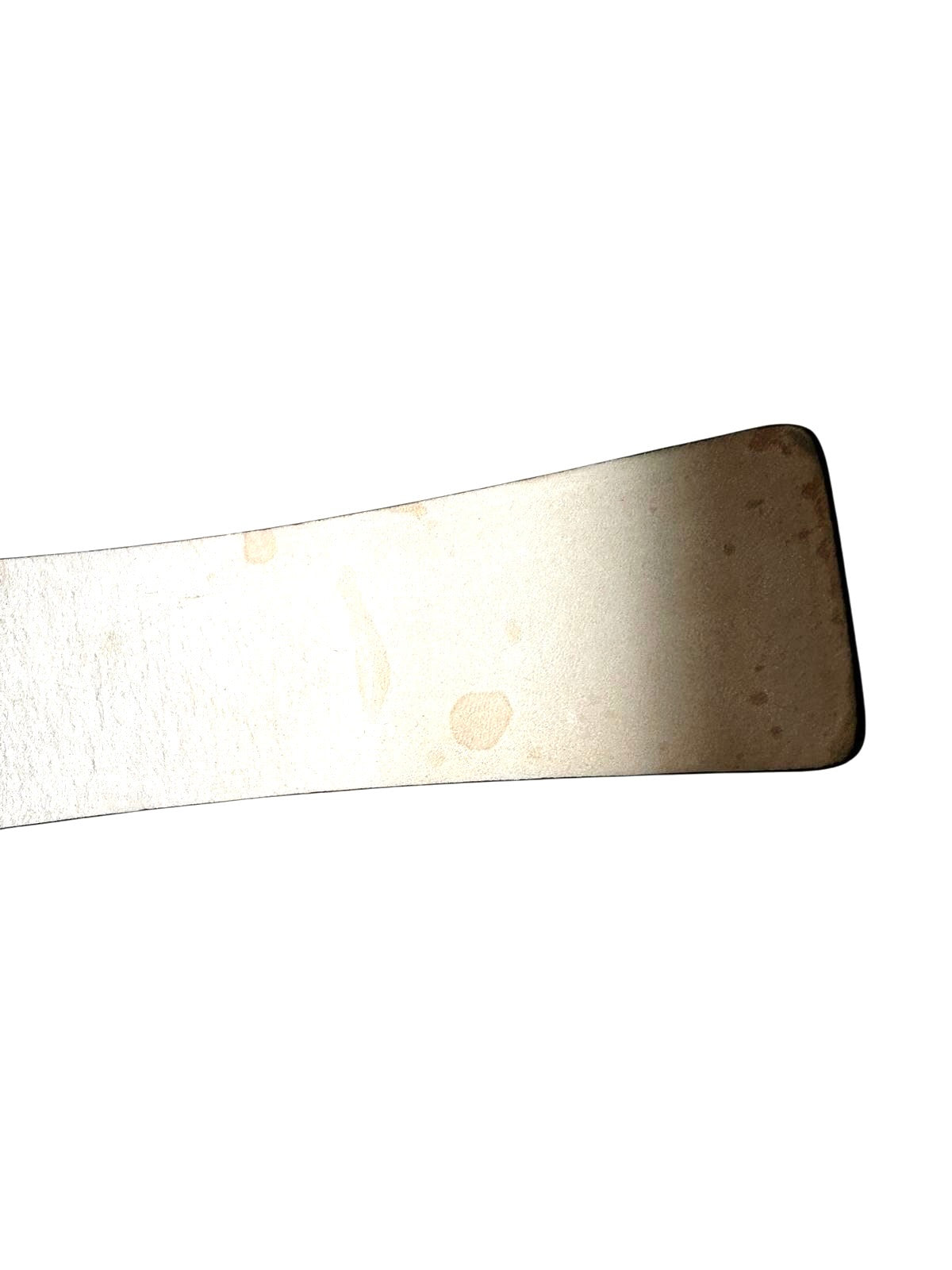 presenta alcune macchie visibili sul lato interno della pelle (vedi foto), ma la parte esterna e la fibbia risultano in ottimo stato.