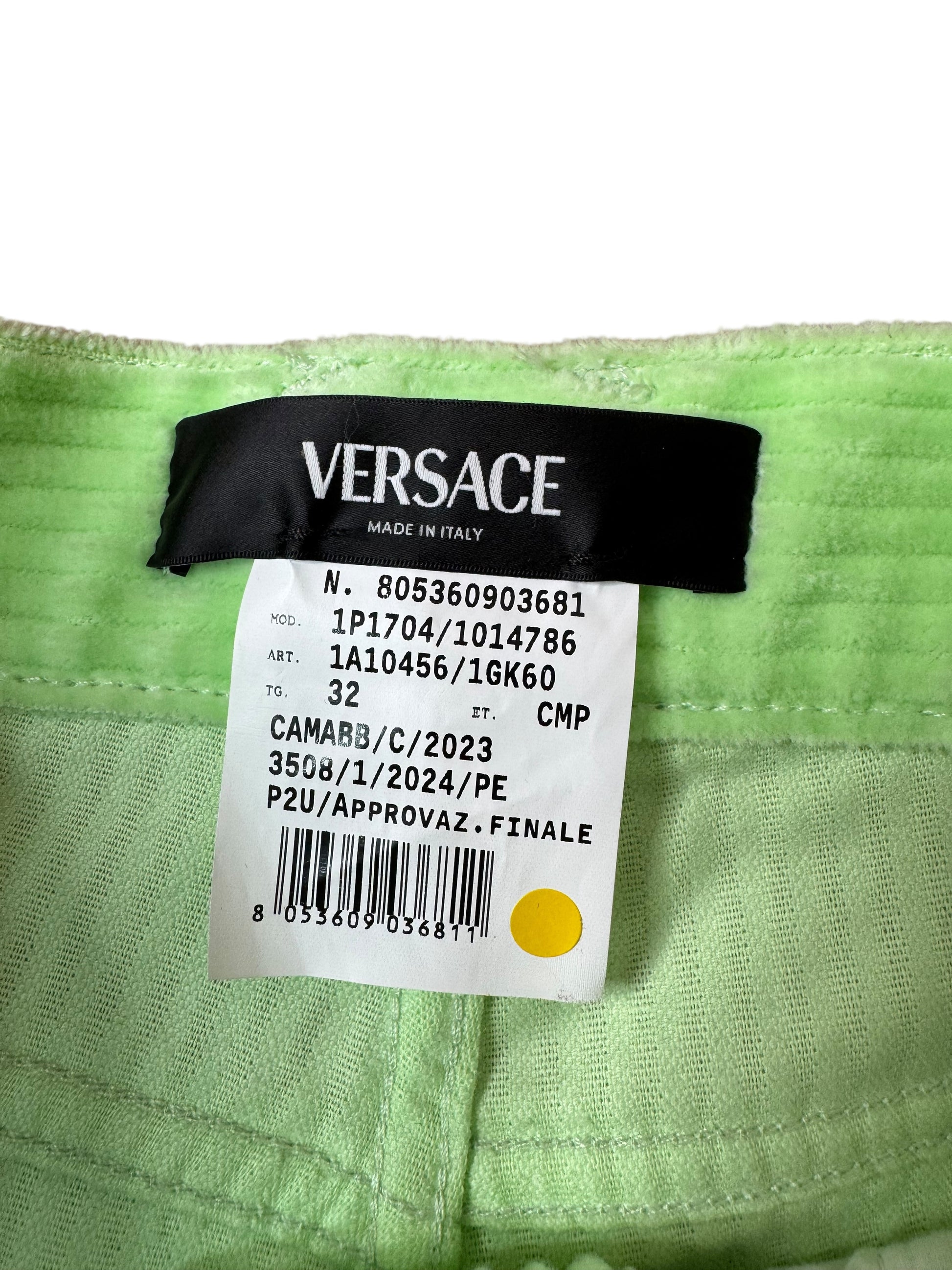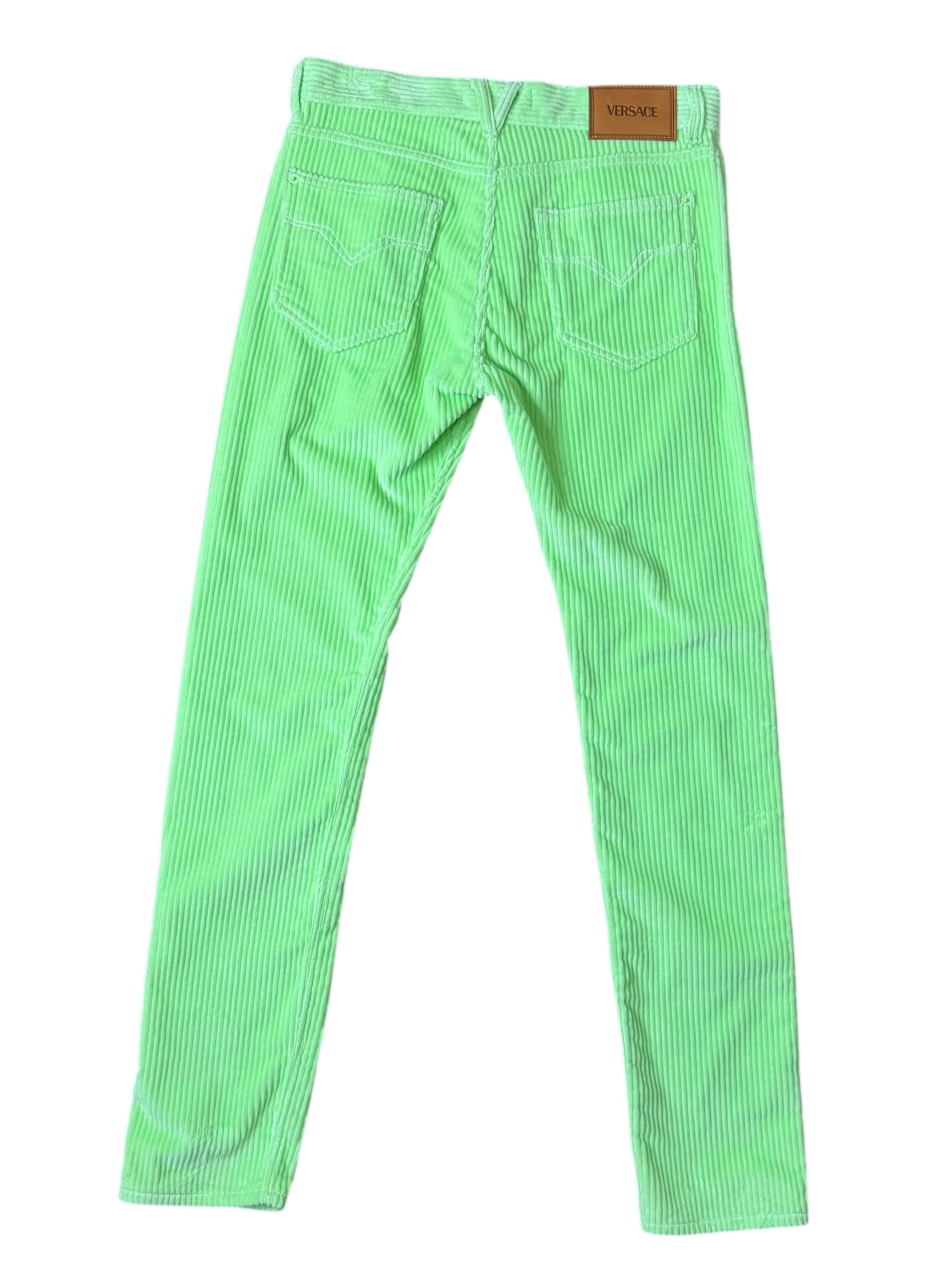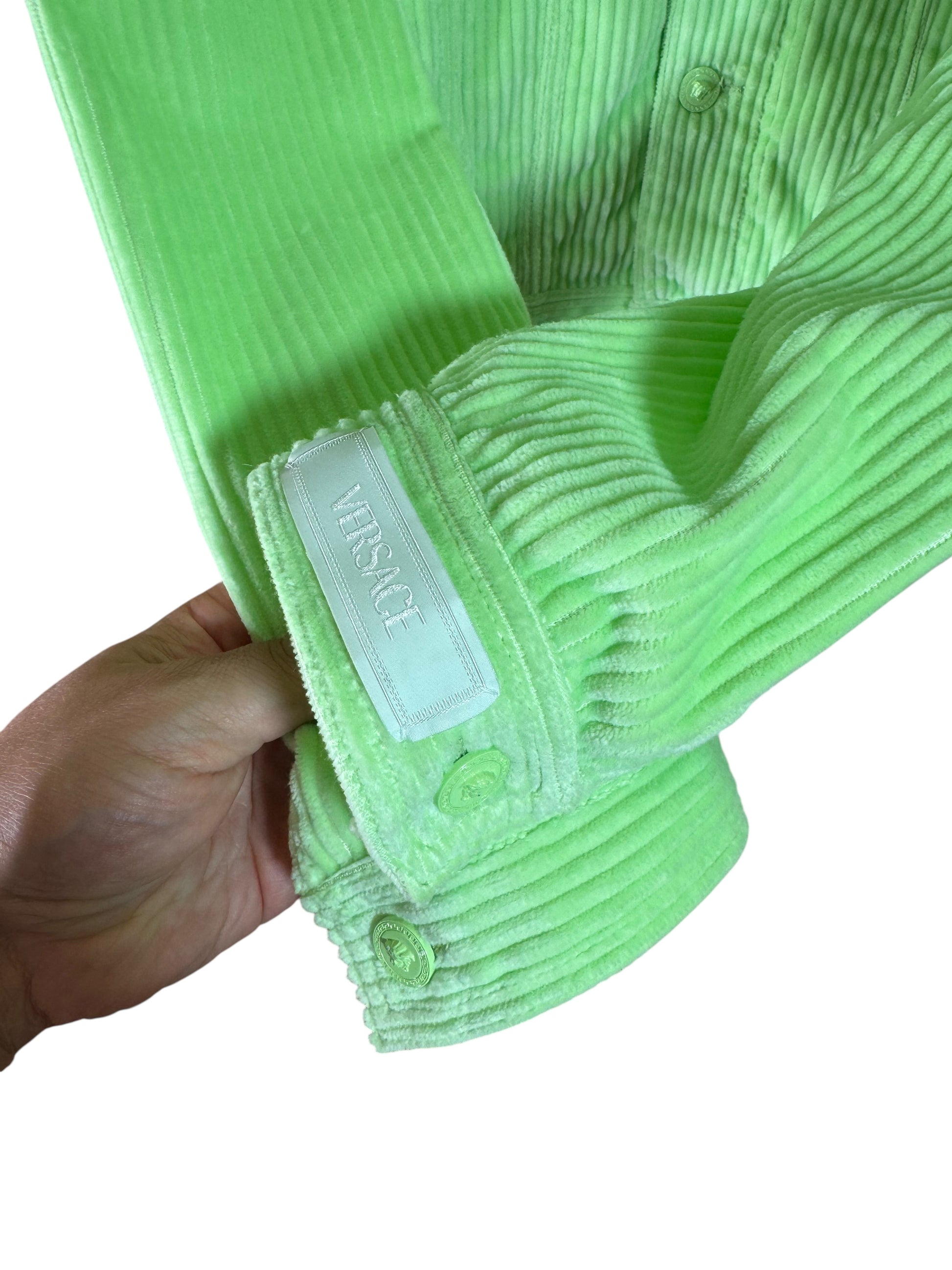 Versace completo giacca e pantaloni in velluto a coste verde lime Made In Italy.