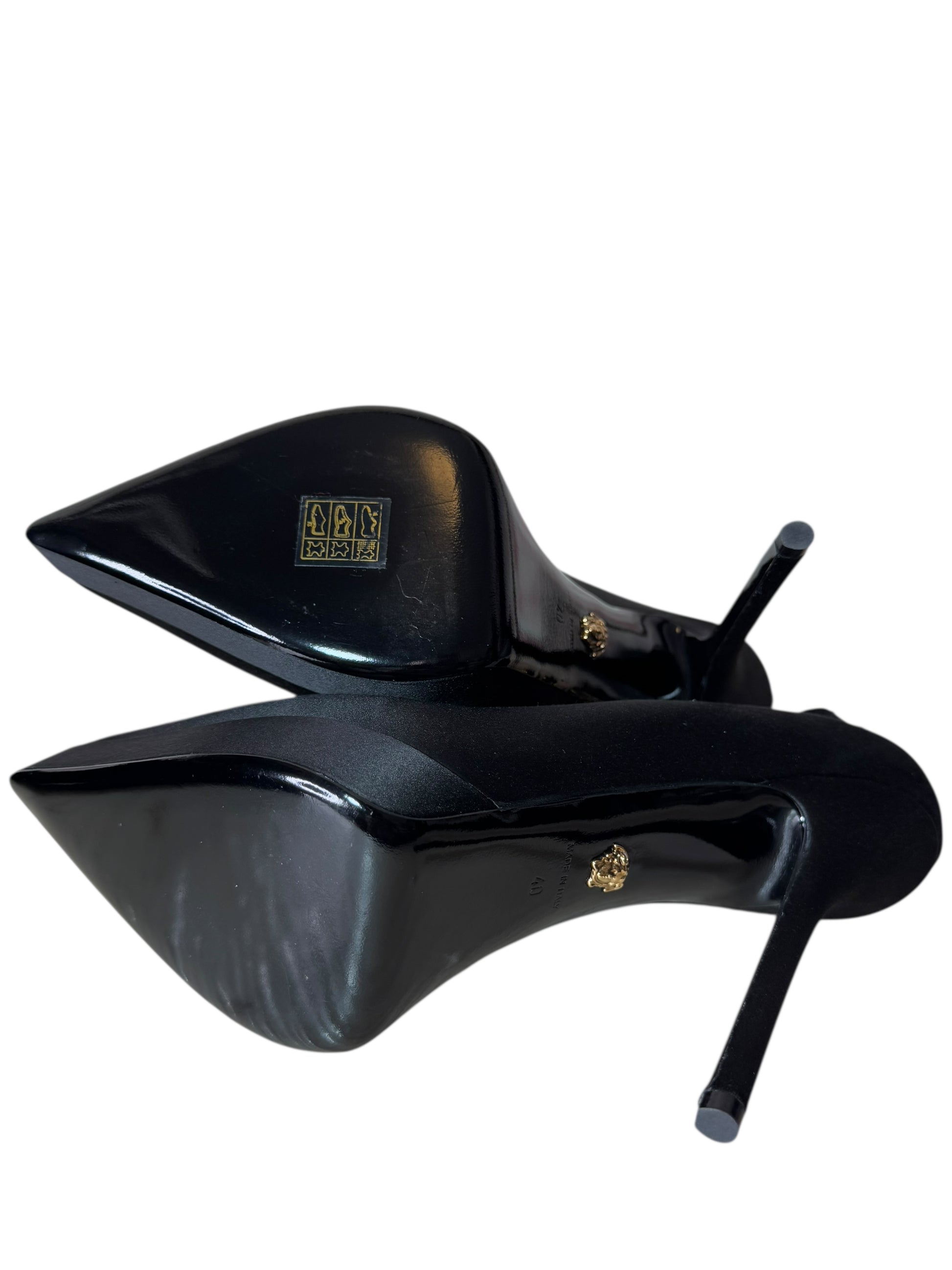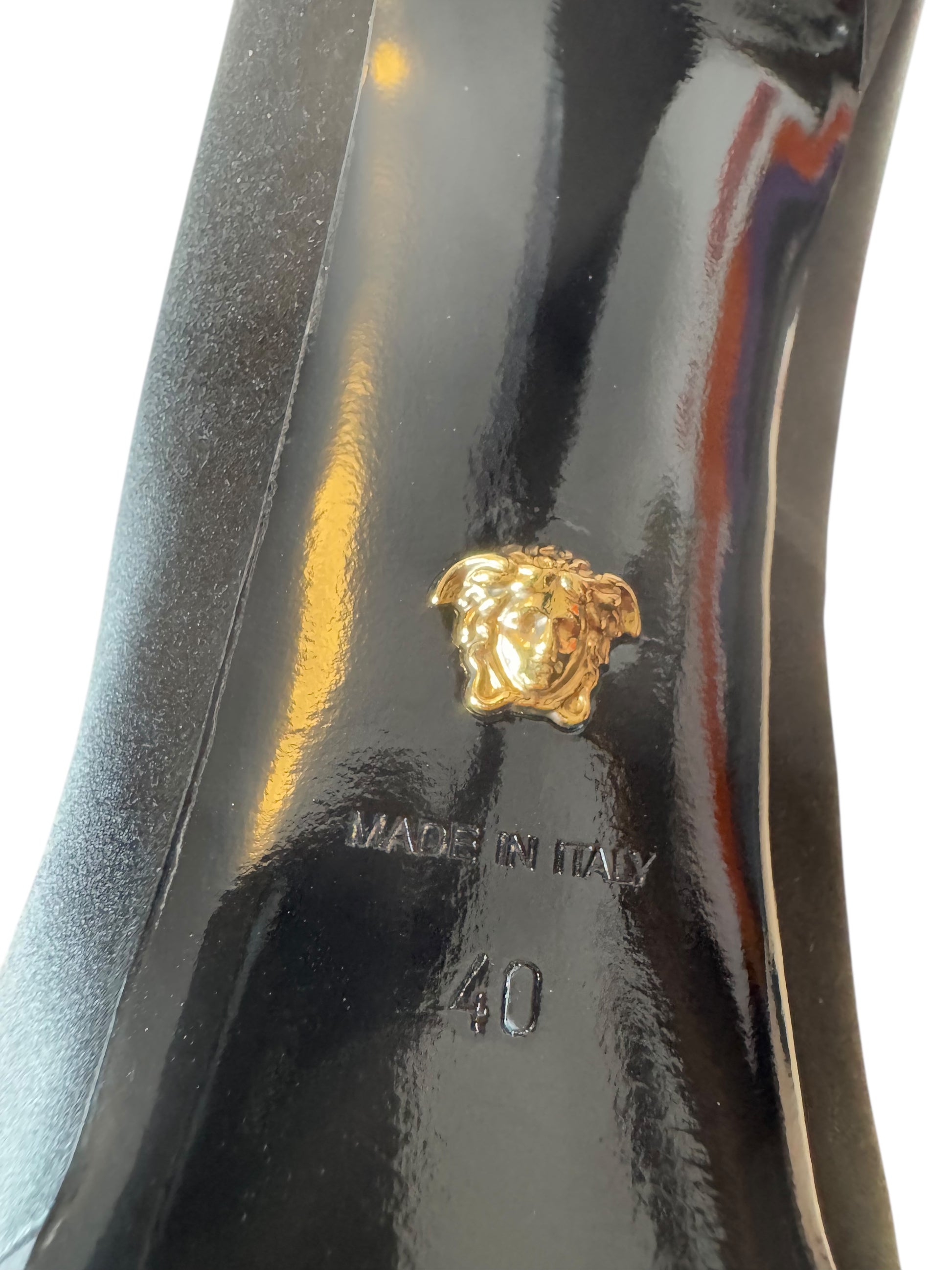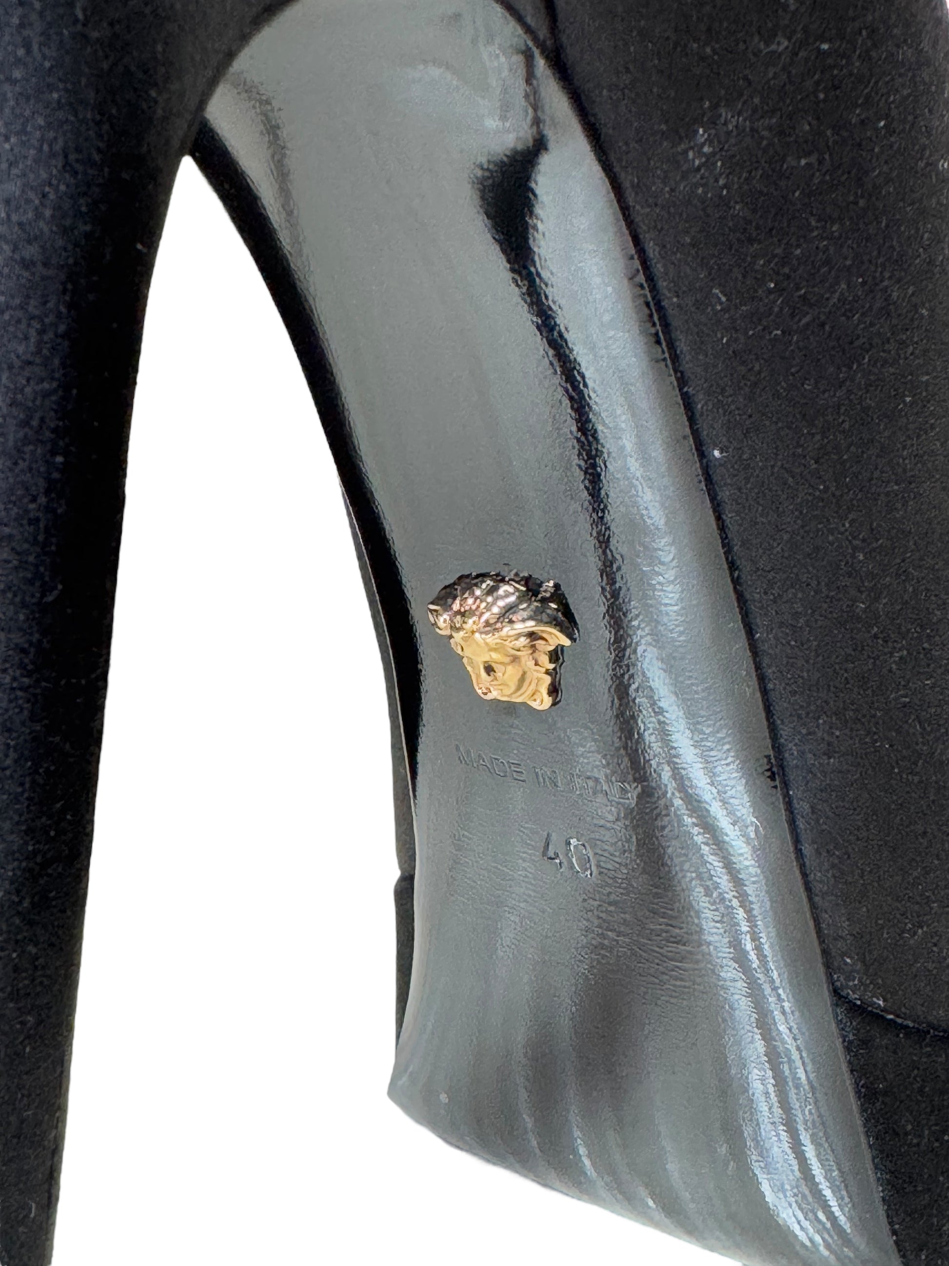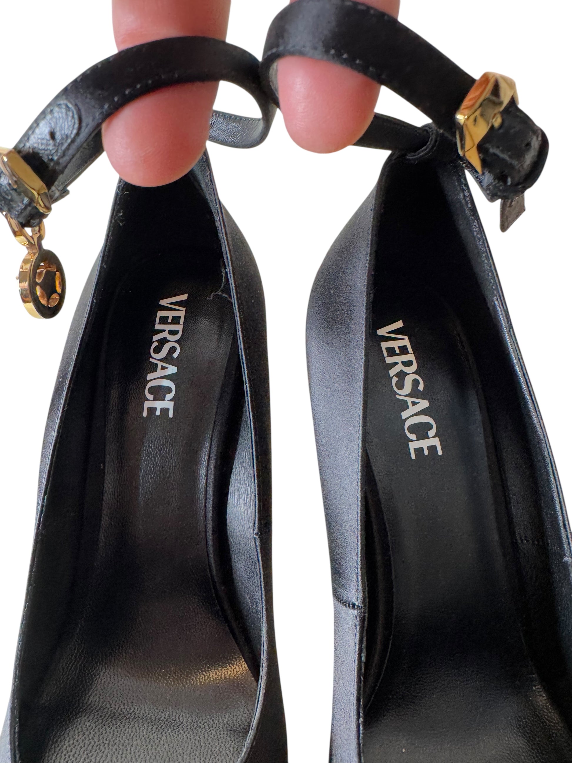 Versace Décolleté in Raso Nero con Plateau e Tacco a Spillo – Medusa Charm