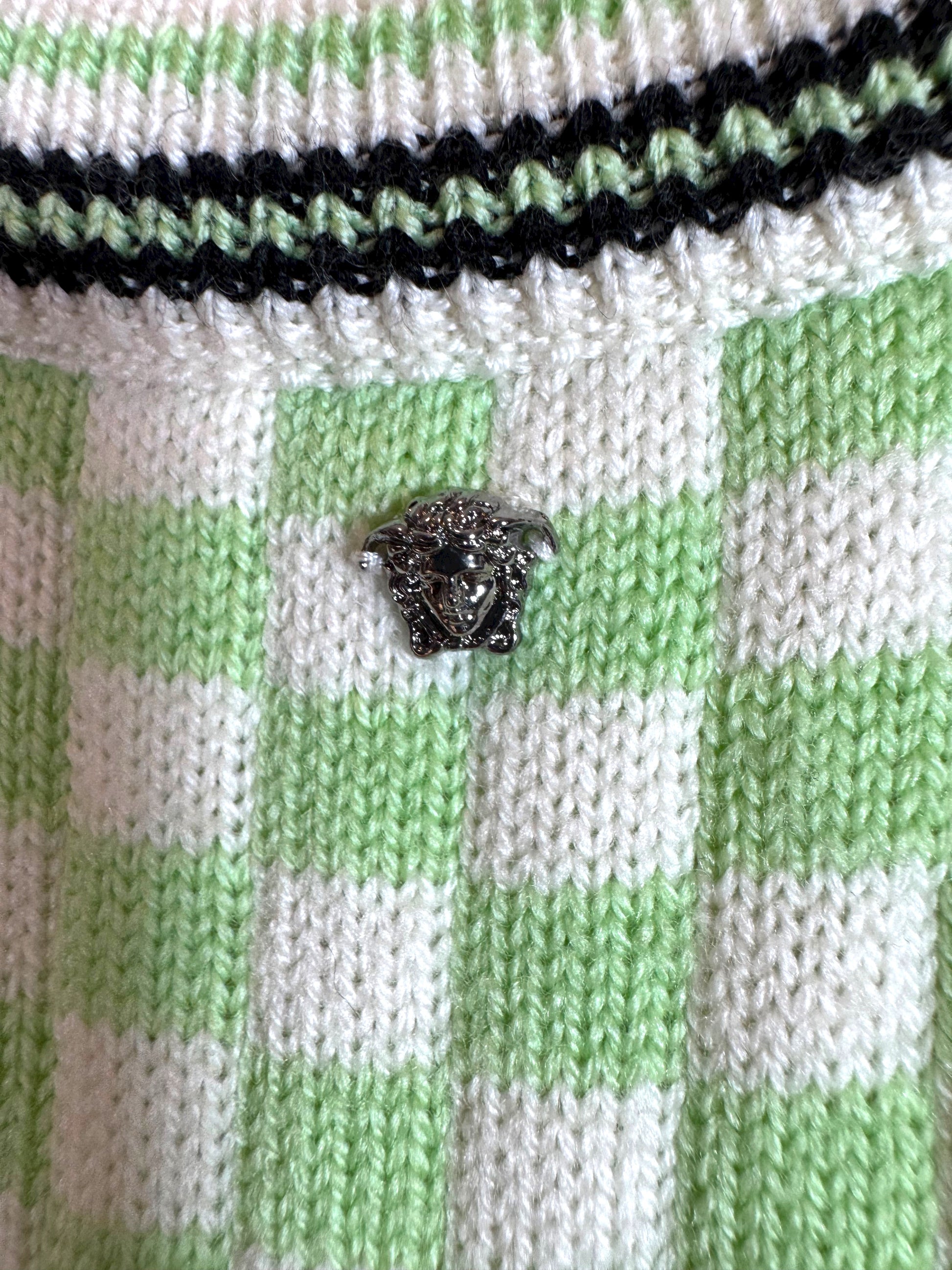 Versace gilet in maglia check verde e bianco con logo Medusa – Taglia 48 (M)