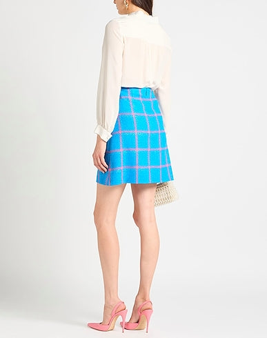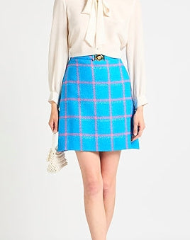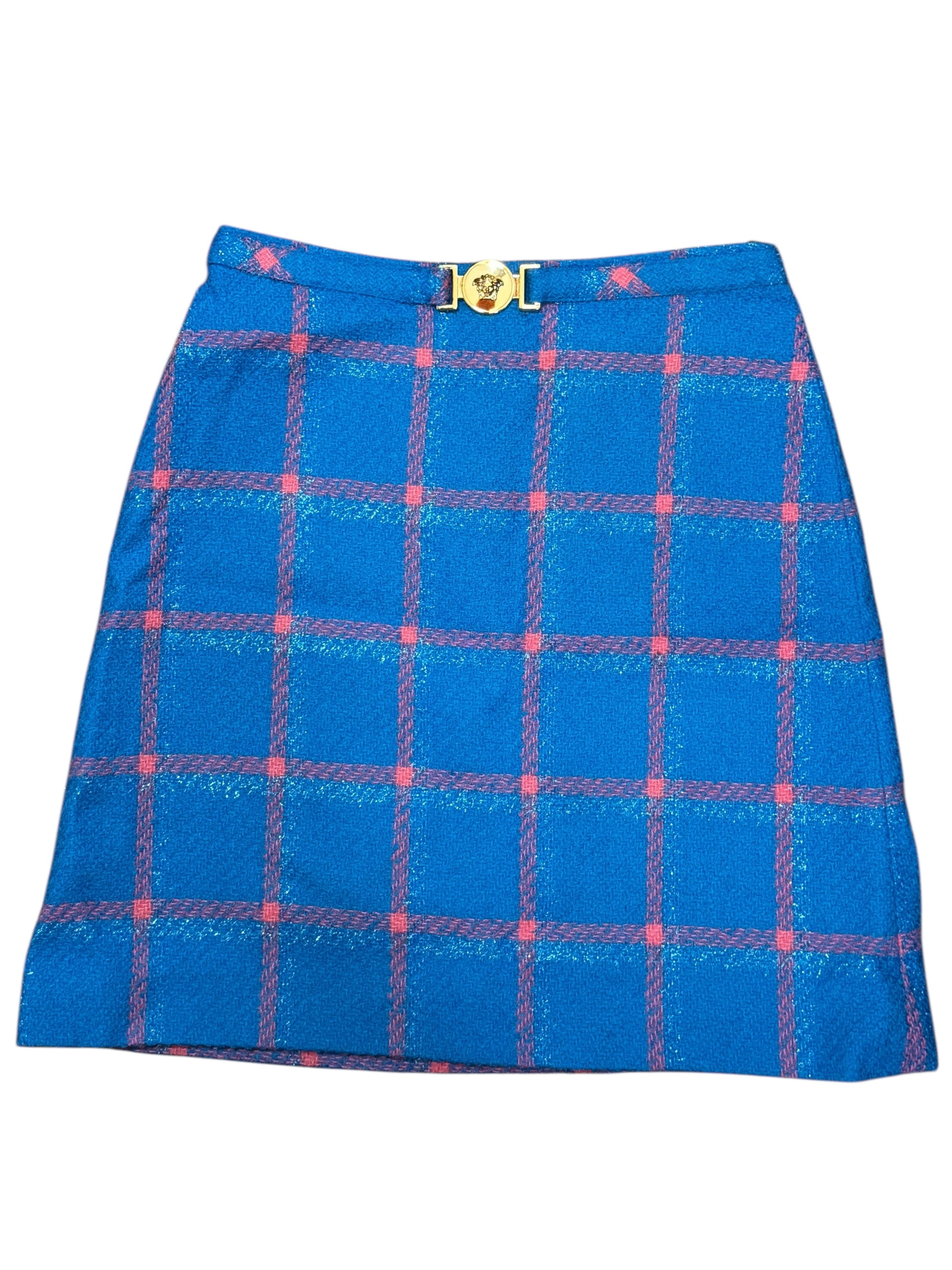 Versace Gonna in Lana Vergine Check Blu con fibbia Medusa Oro