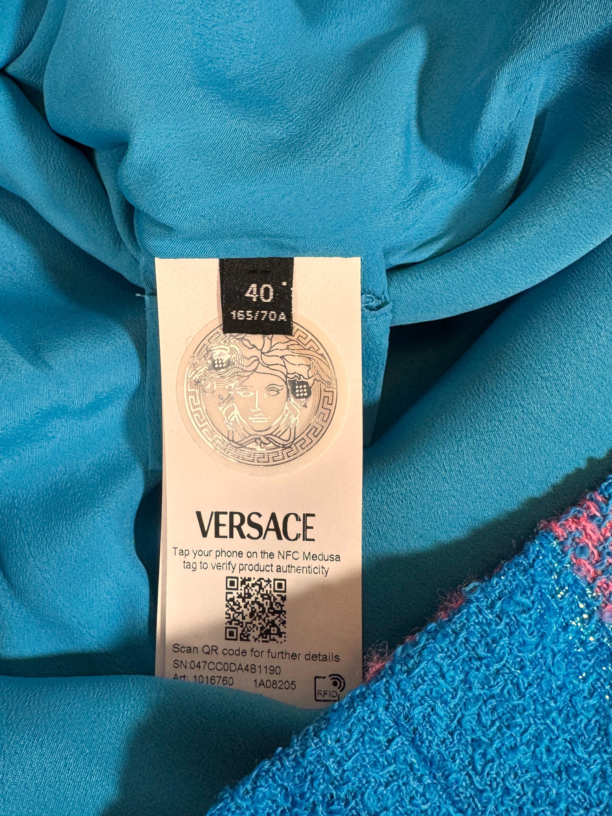 Capo nuovo con cartellini originali e tag NFC Medusa per la verifica dell’autenticità.