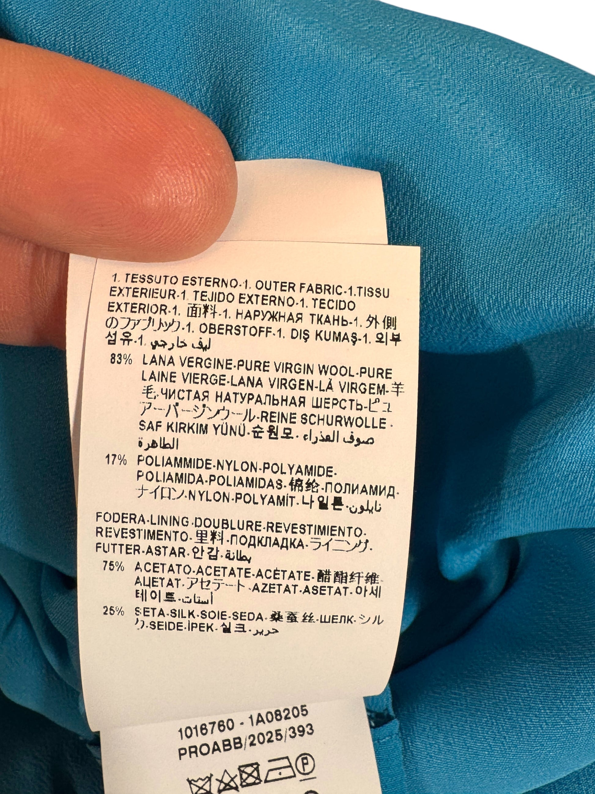 - Fodera: 75% acetato, 25% seta