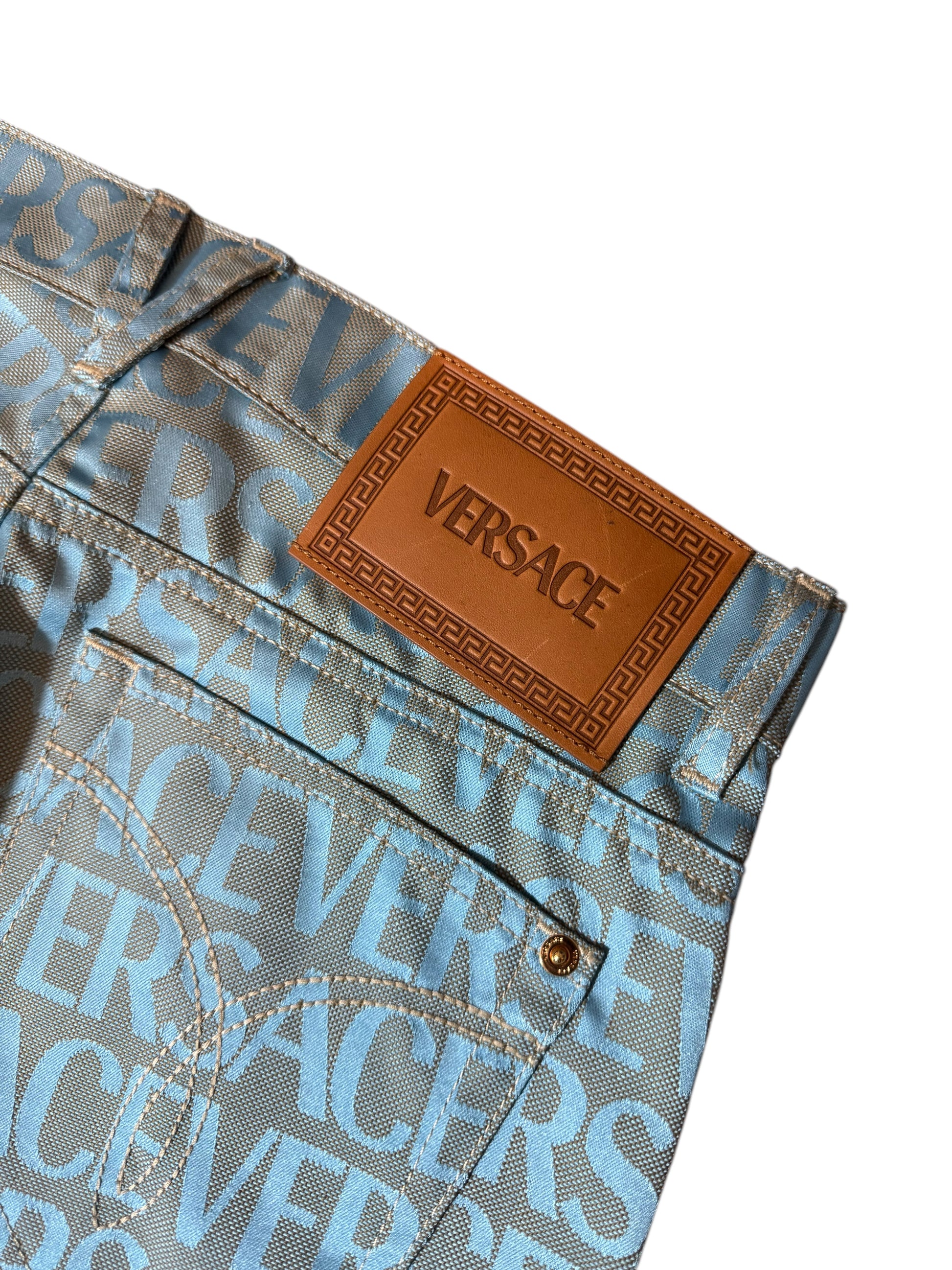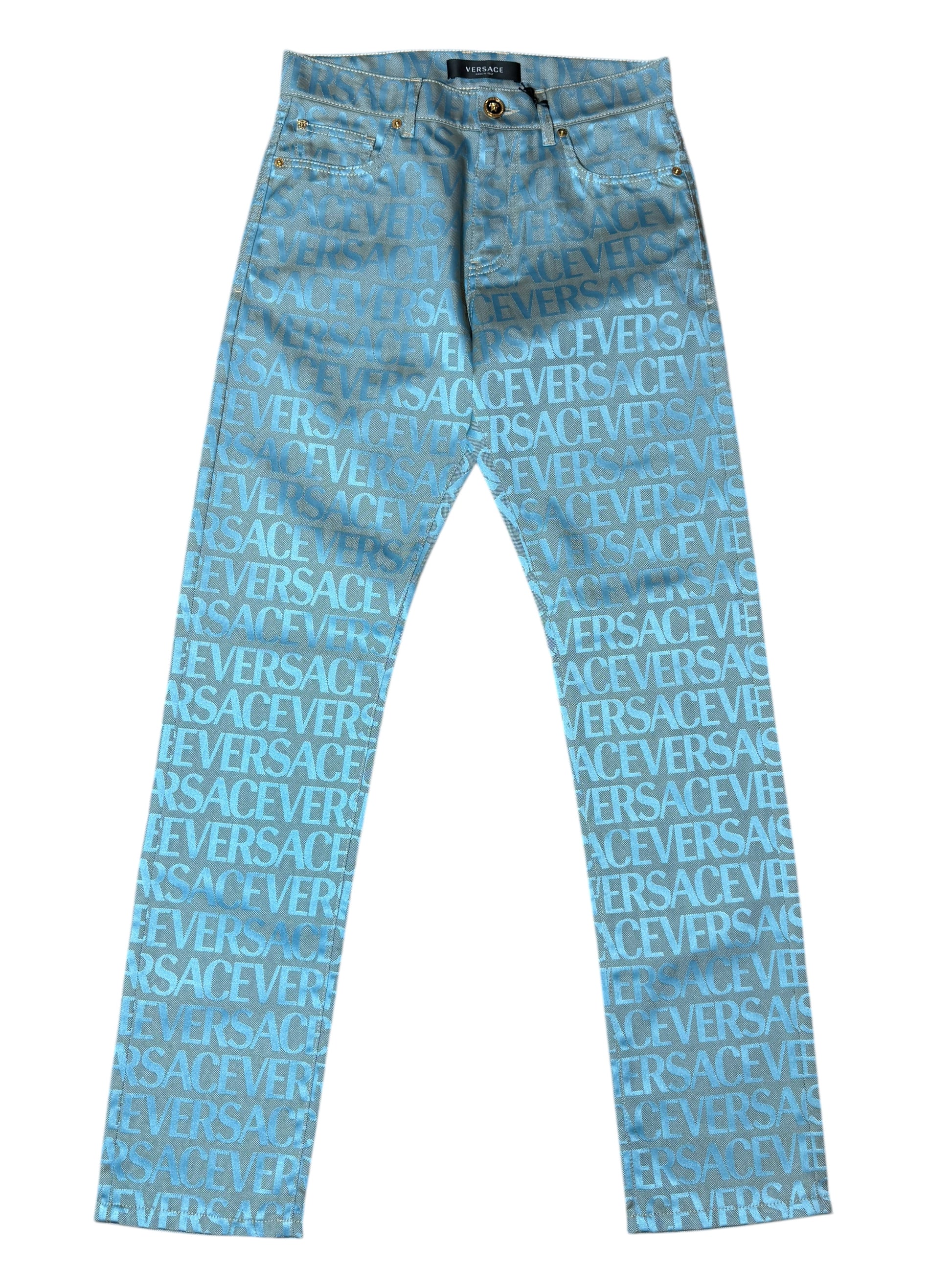 Jeans Versace caratterizzati da un vibrante colore azzurro con stampa logo Versace all-over. Realizzati con materiali di alta qualità e cura dei dettagli, incarnano l’eleganza e lo stile distintivo del brand italiano.
